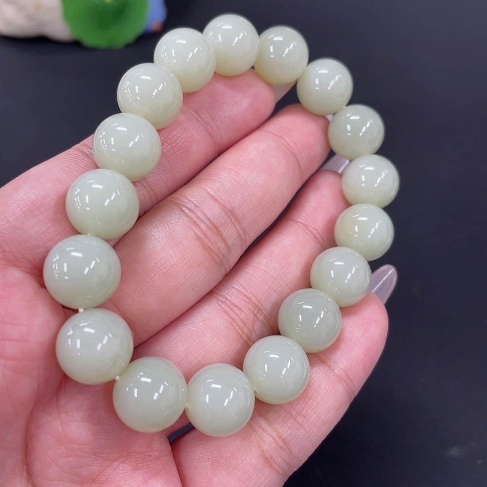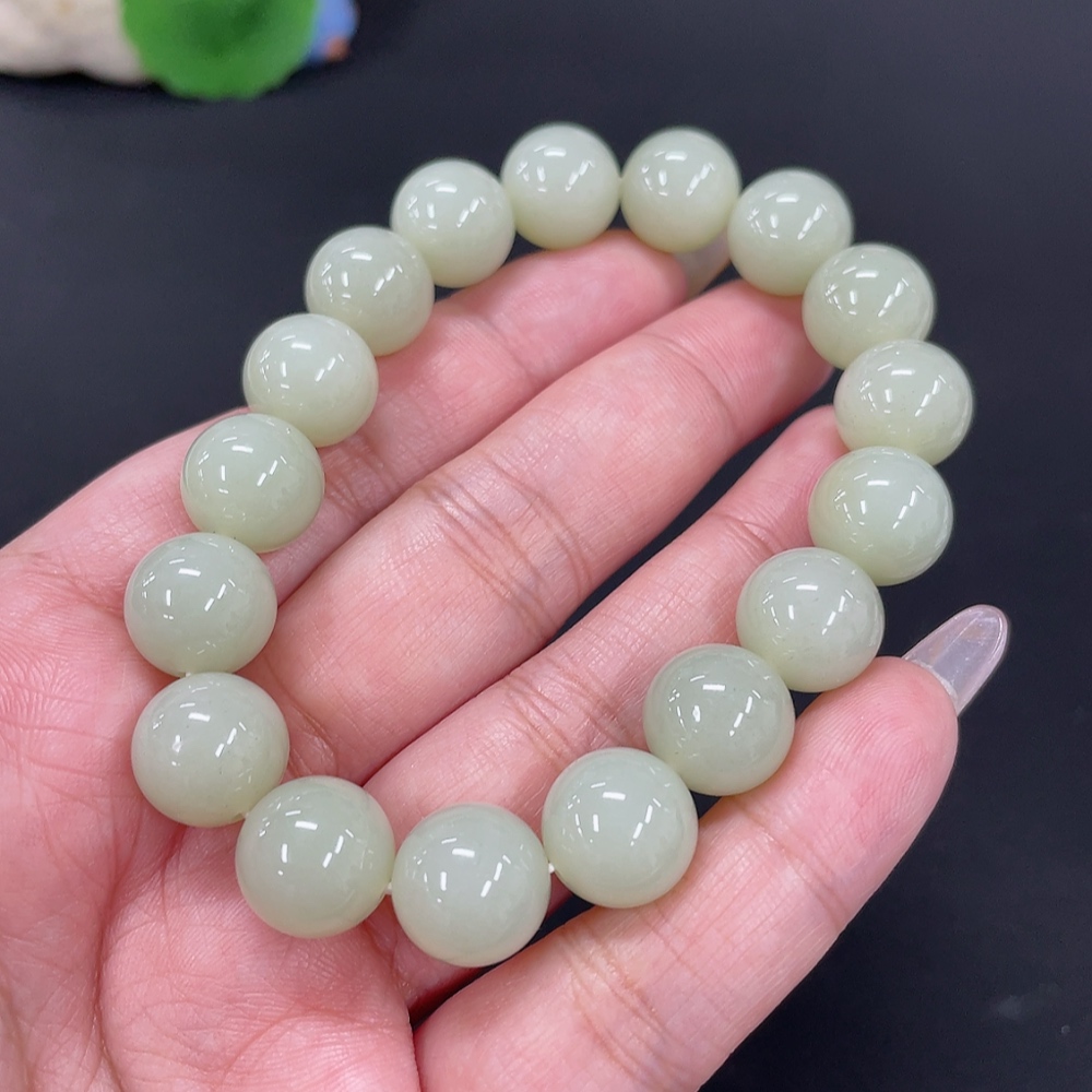 Hetian Jade Bracelet, approx. 12mm beads, total weight approx. 46.2g