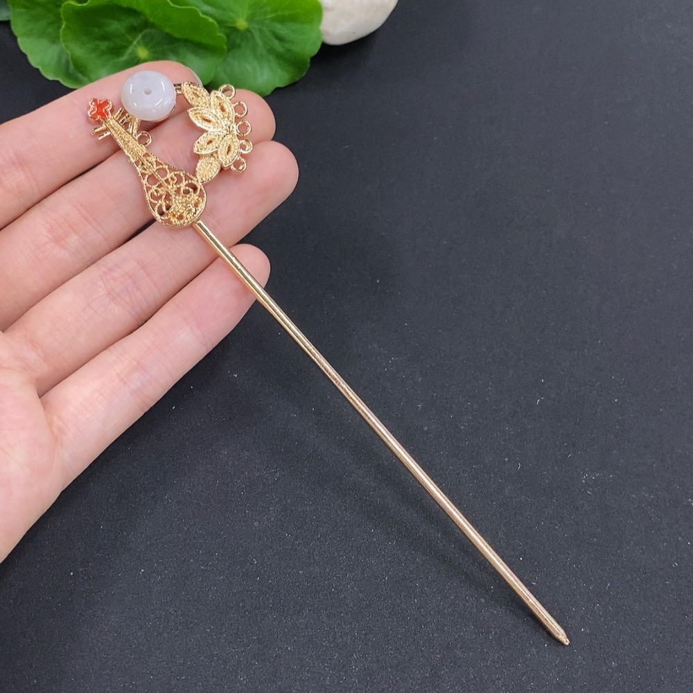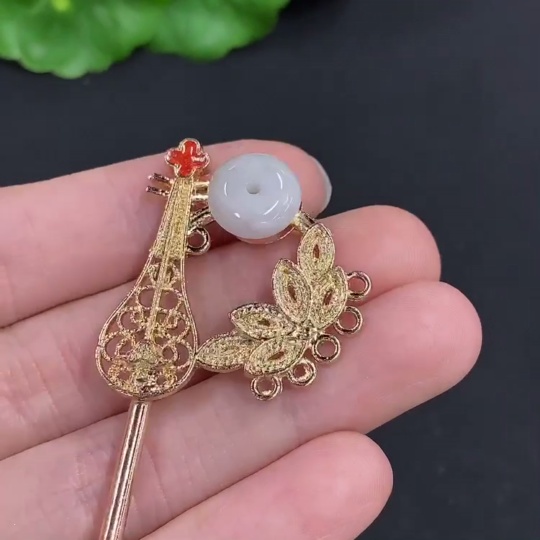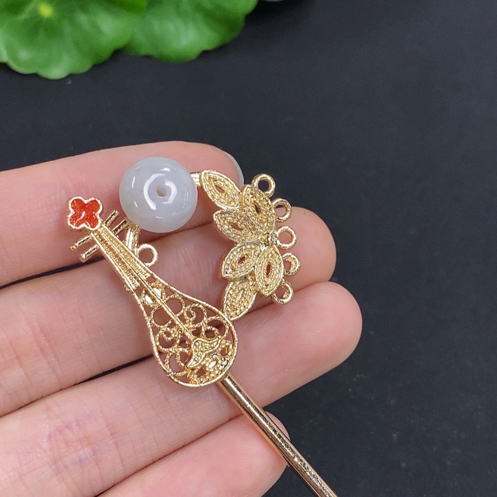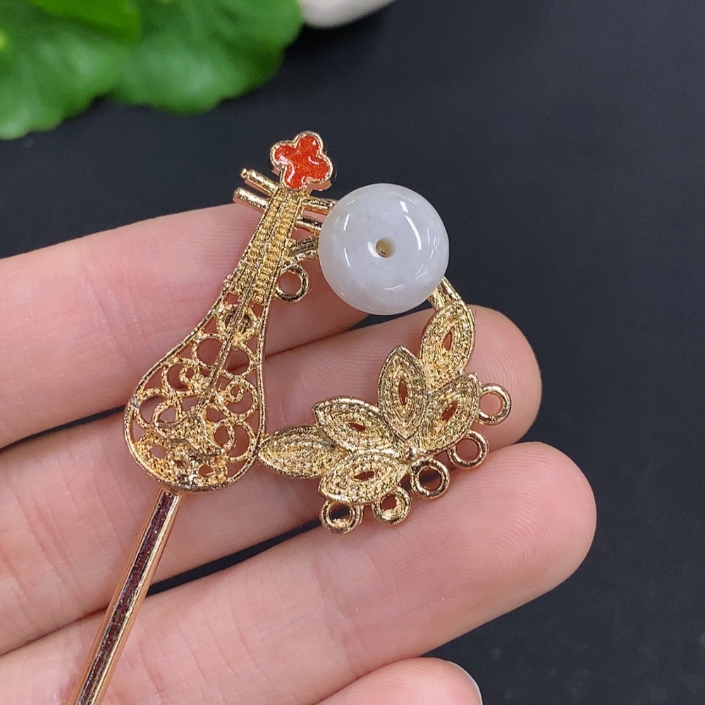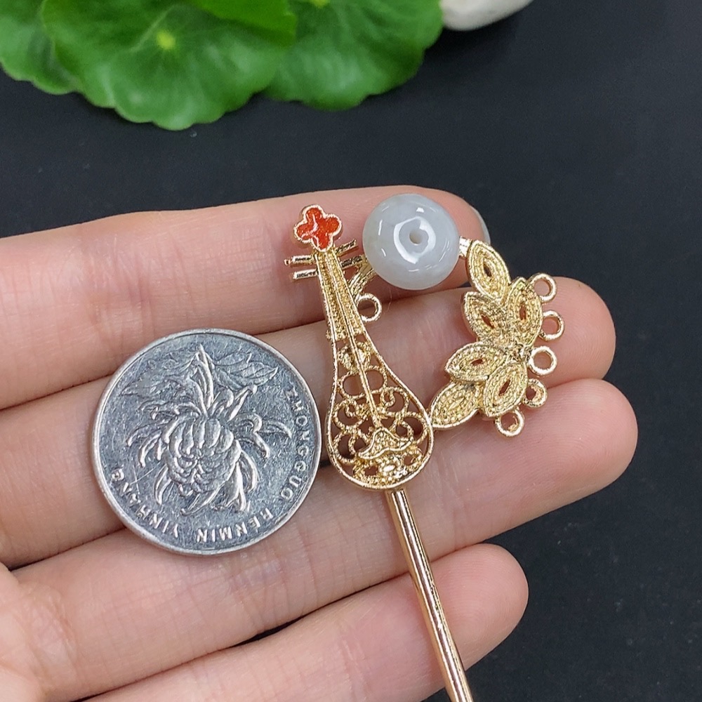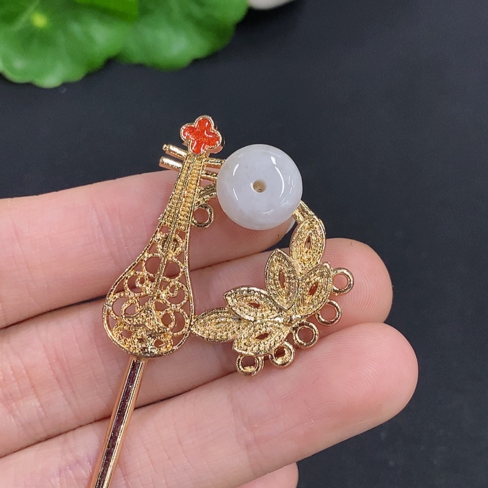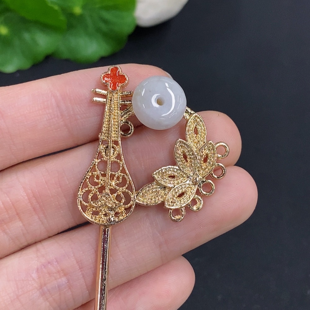Jadeite Peace Buckle Inlaid Hairpin Non-Gold Inlaid Total Weight Approximately 9.4 Grams