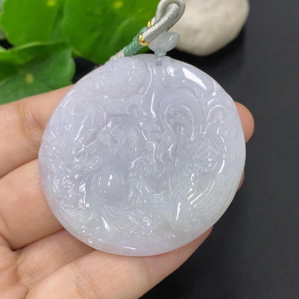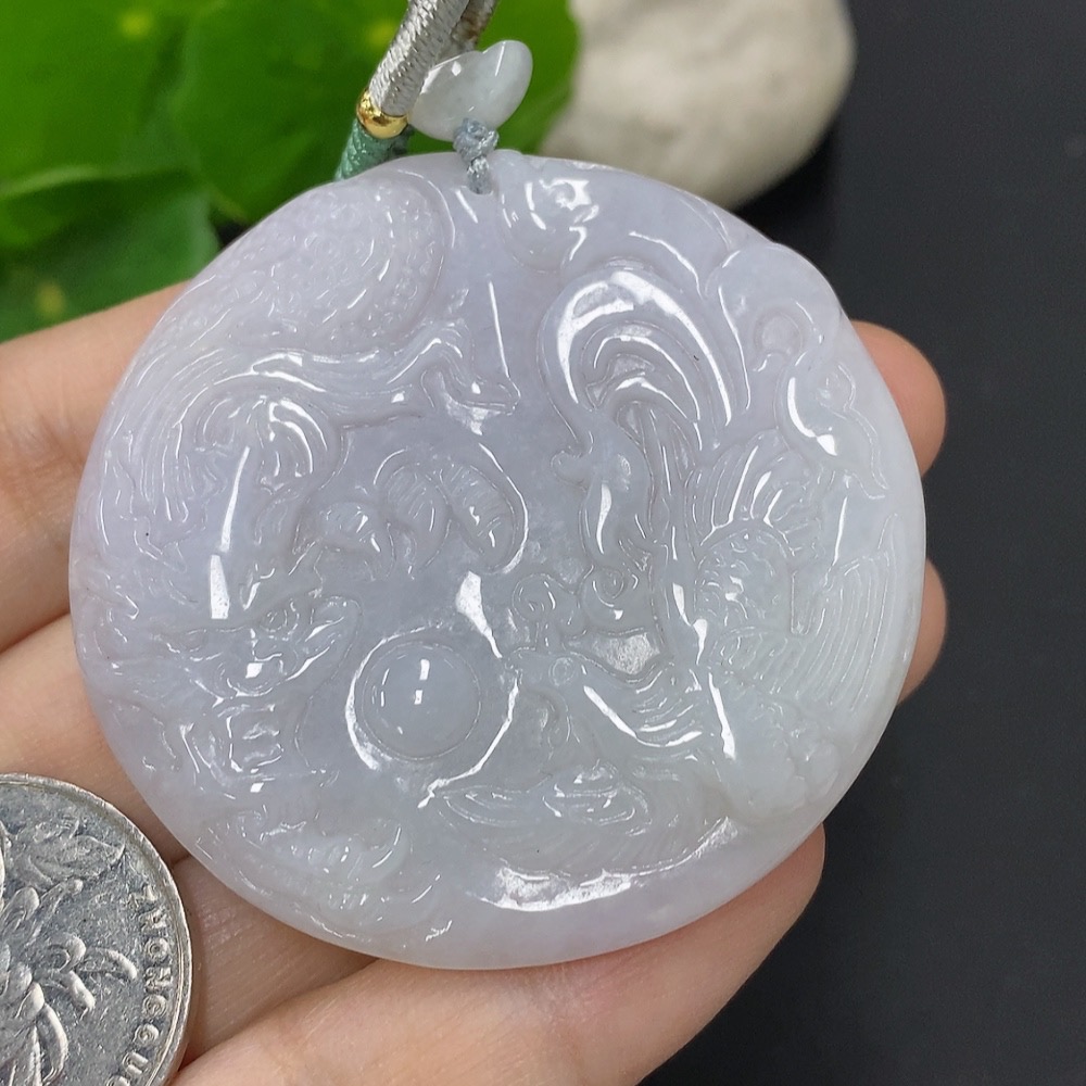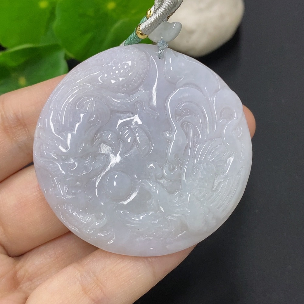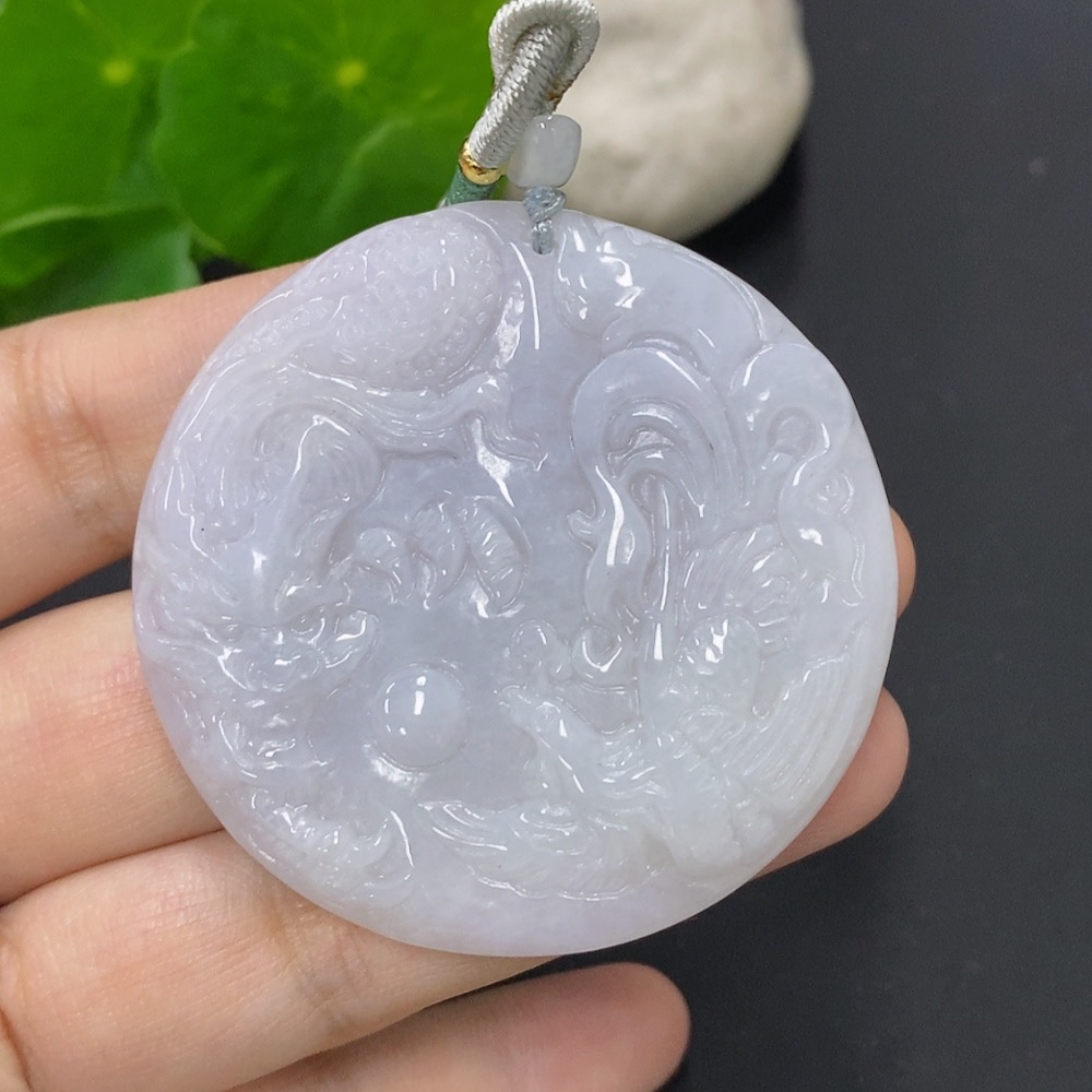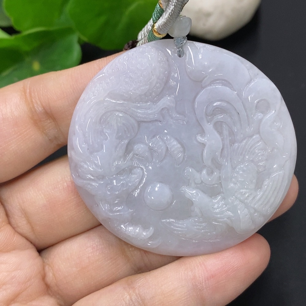 Jadeite Dragon and Phoenix Auspicious Pendant Total Weight Including Rope Approximately 29.4g