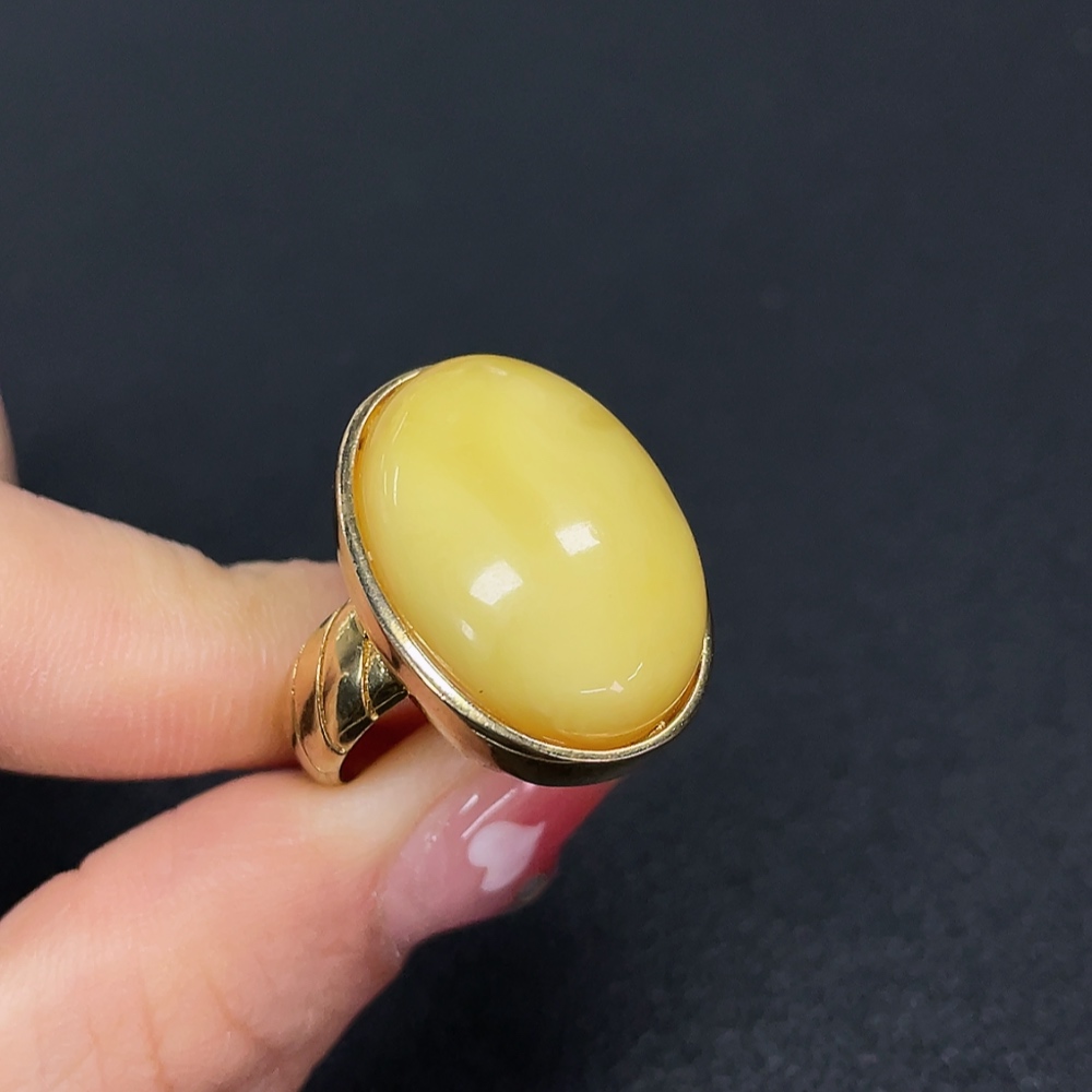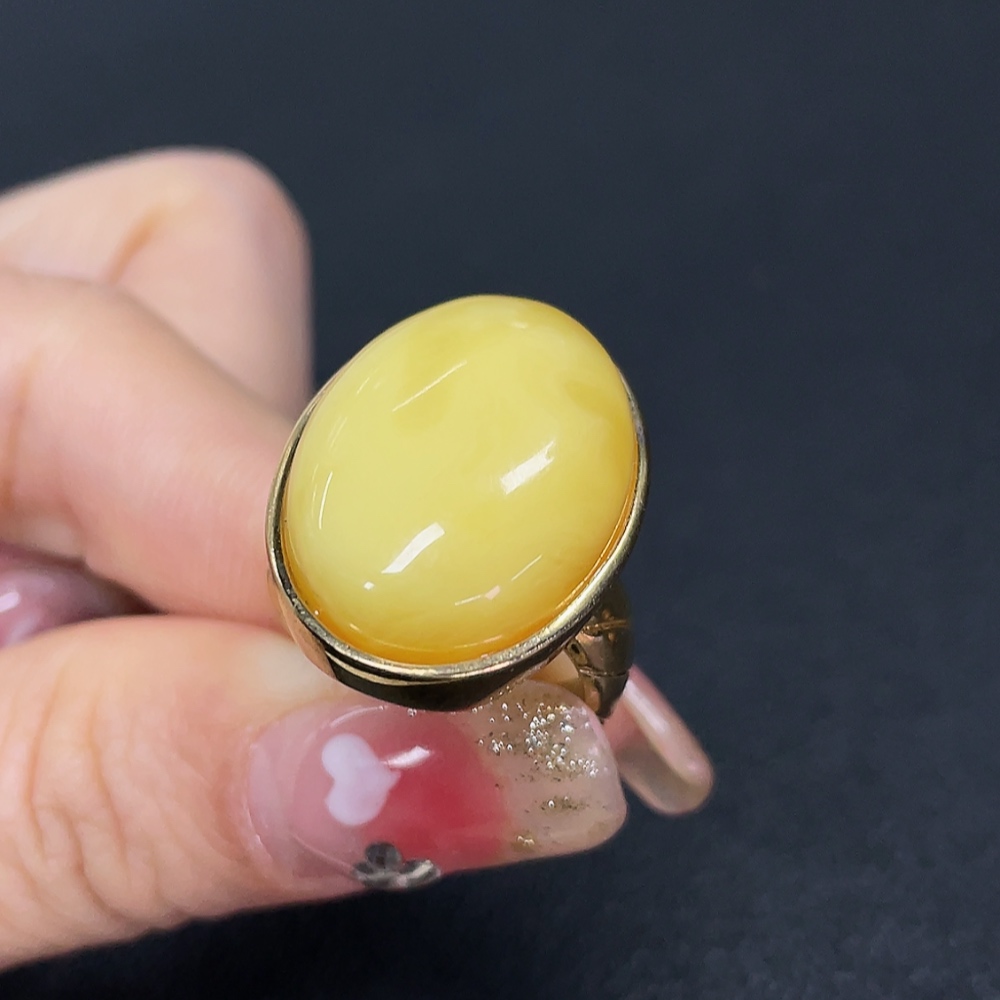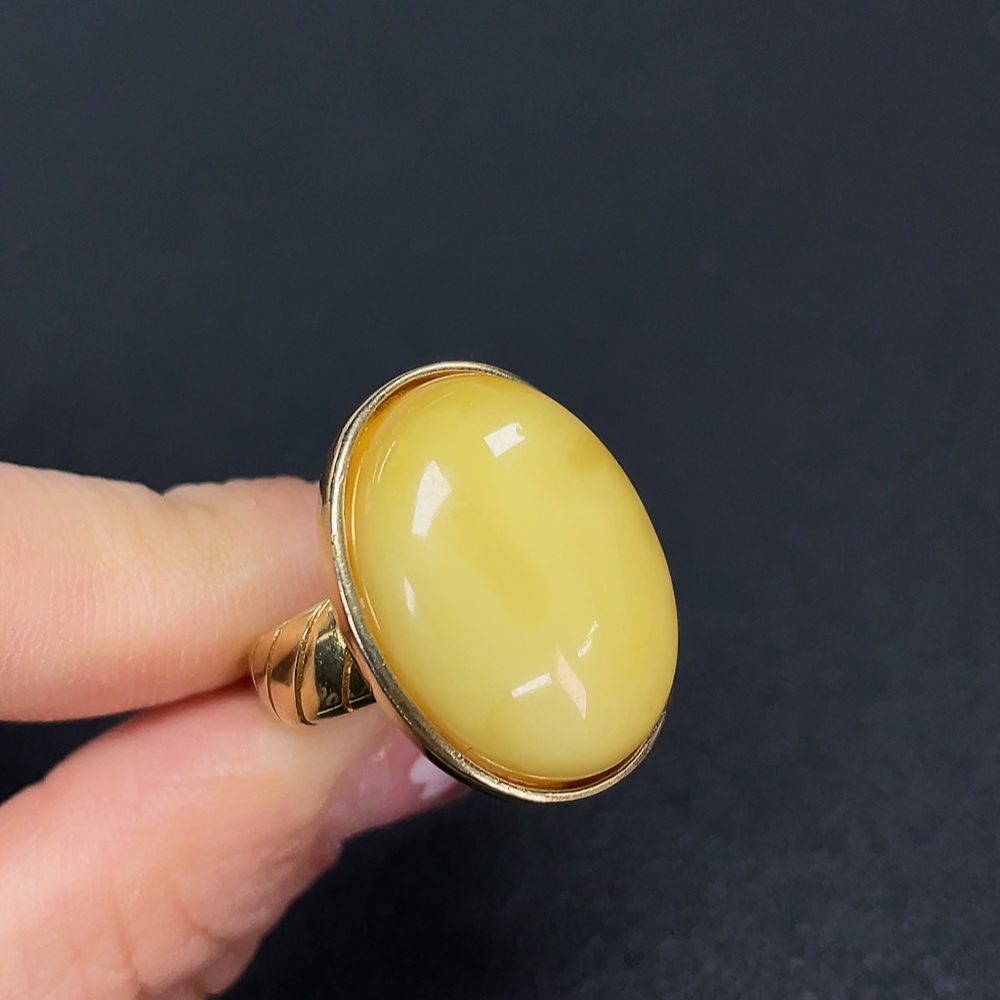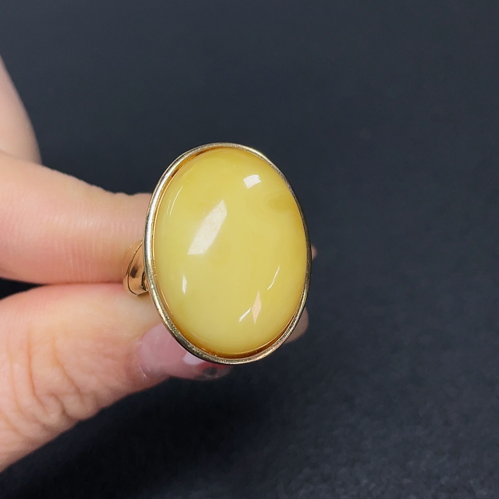 Amber Beeswax Ring Non-Gold Adjustable Total Weight Approx. 9g