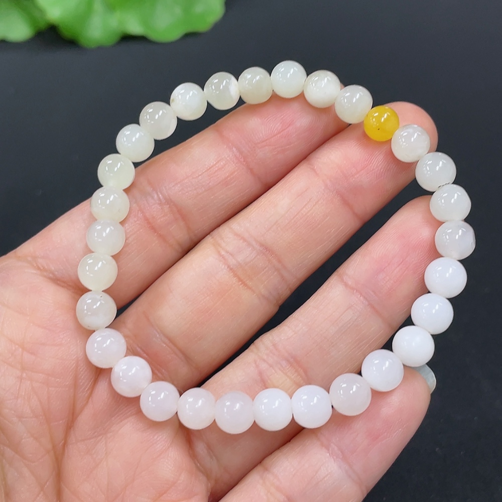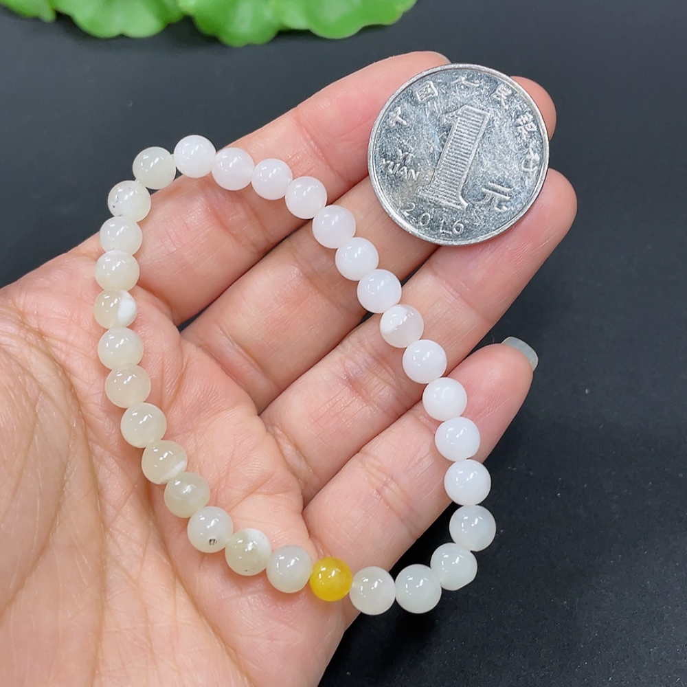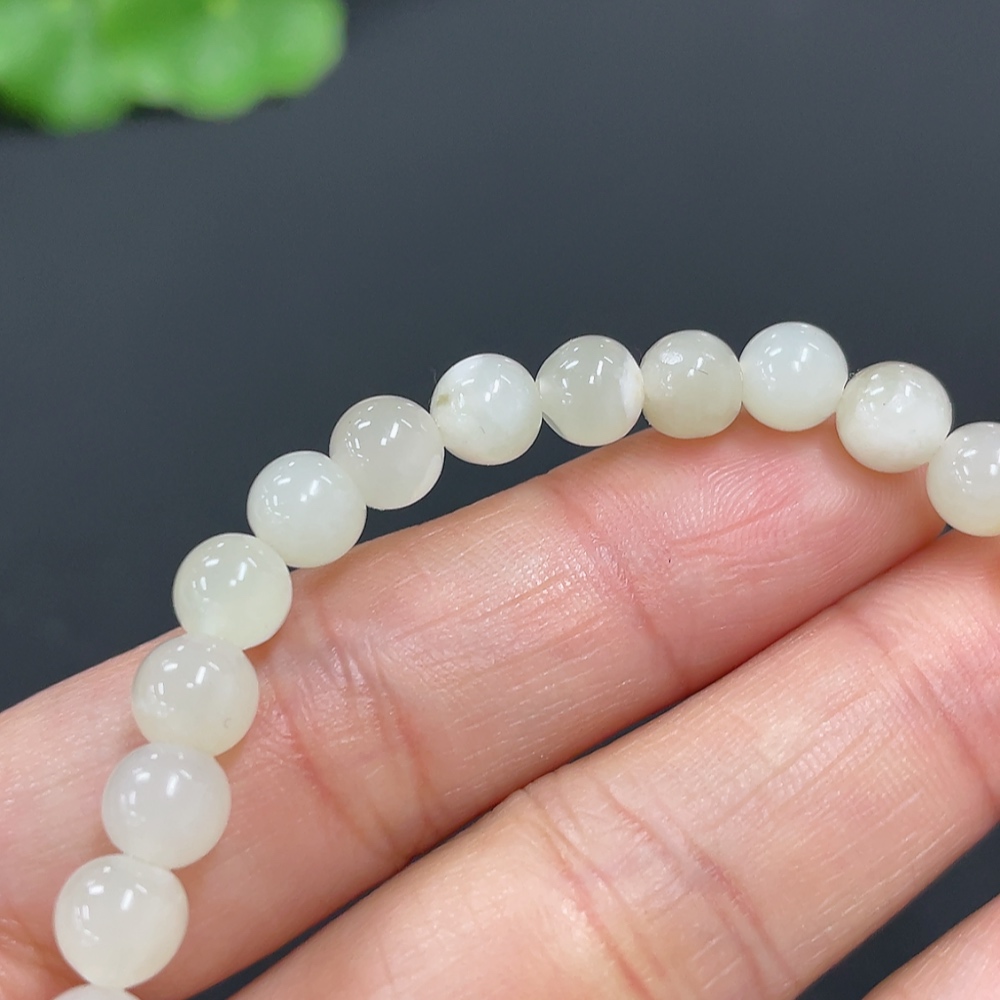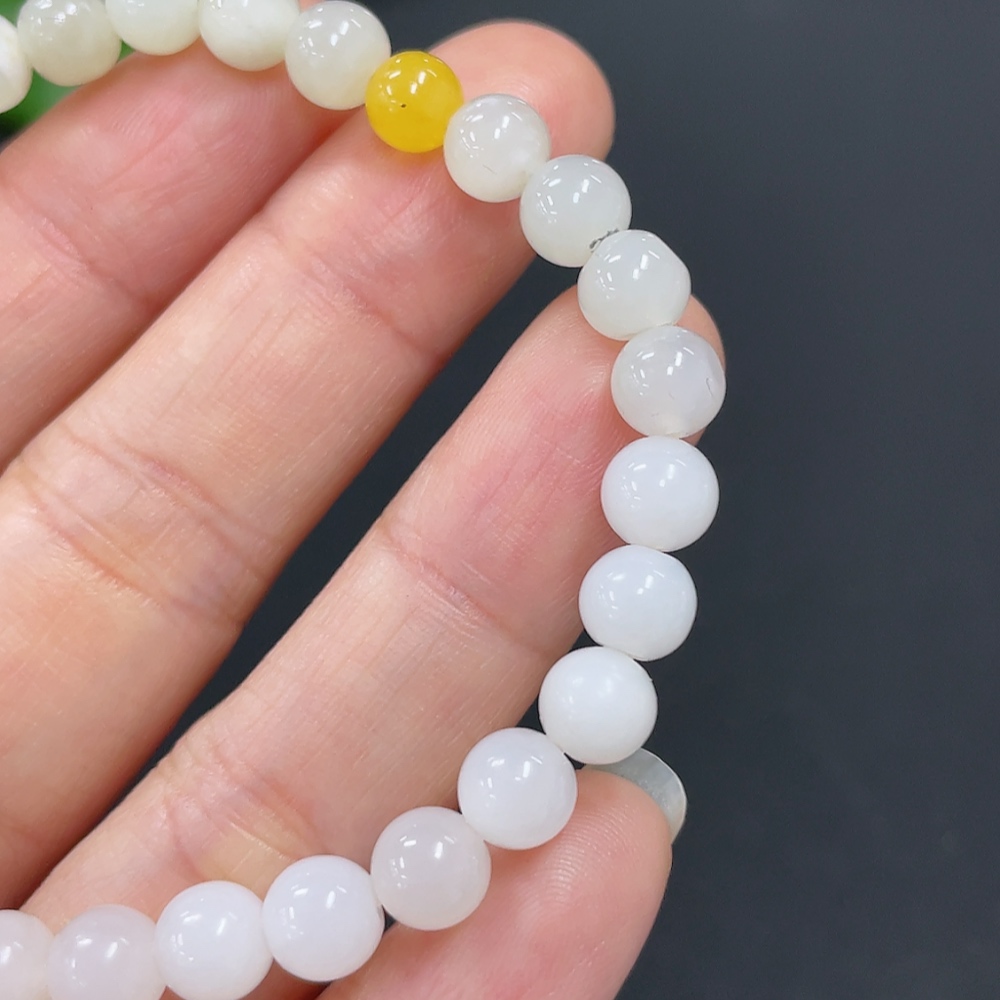 Hetian Jade Bracelet, approx. 5.9mm, total weight approx. 9.4g, contains other mineral components, non-Hetian Jade accessory beads