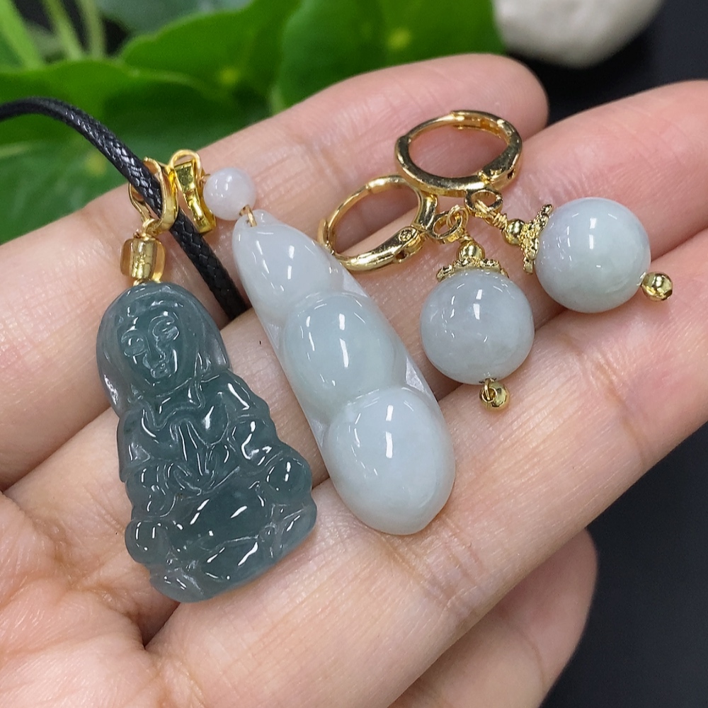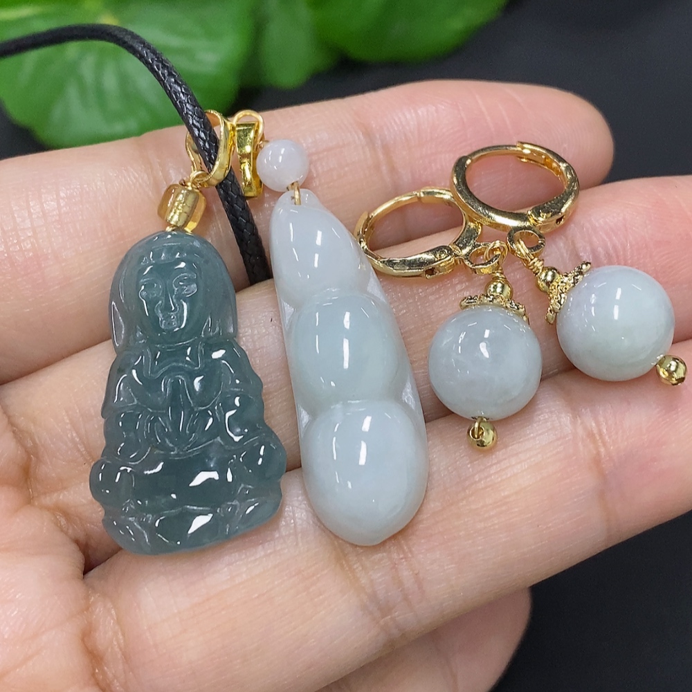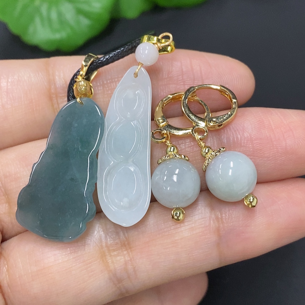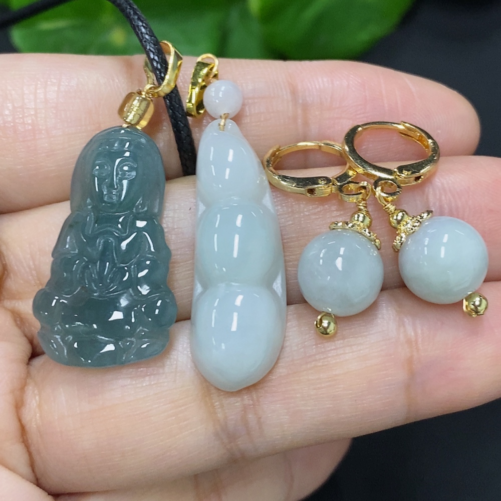 Jadeite Pendant with Earrings Sell as a Lot Non-Gold Inlaid