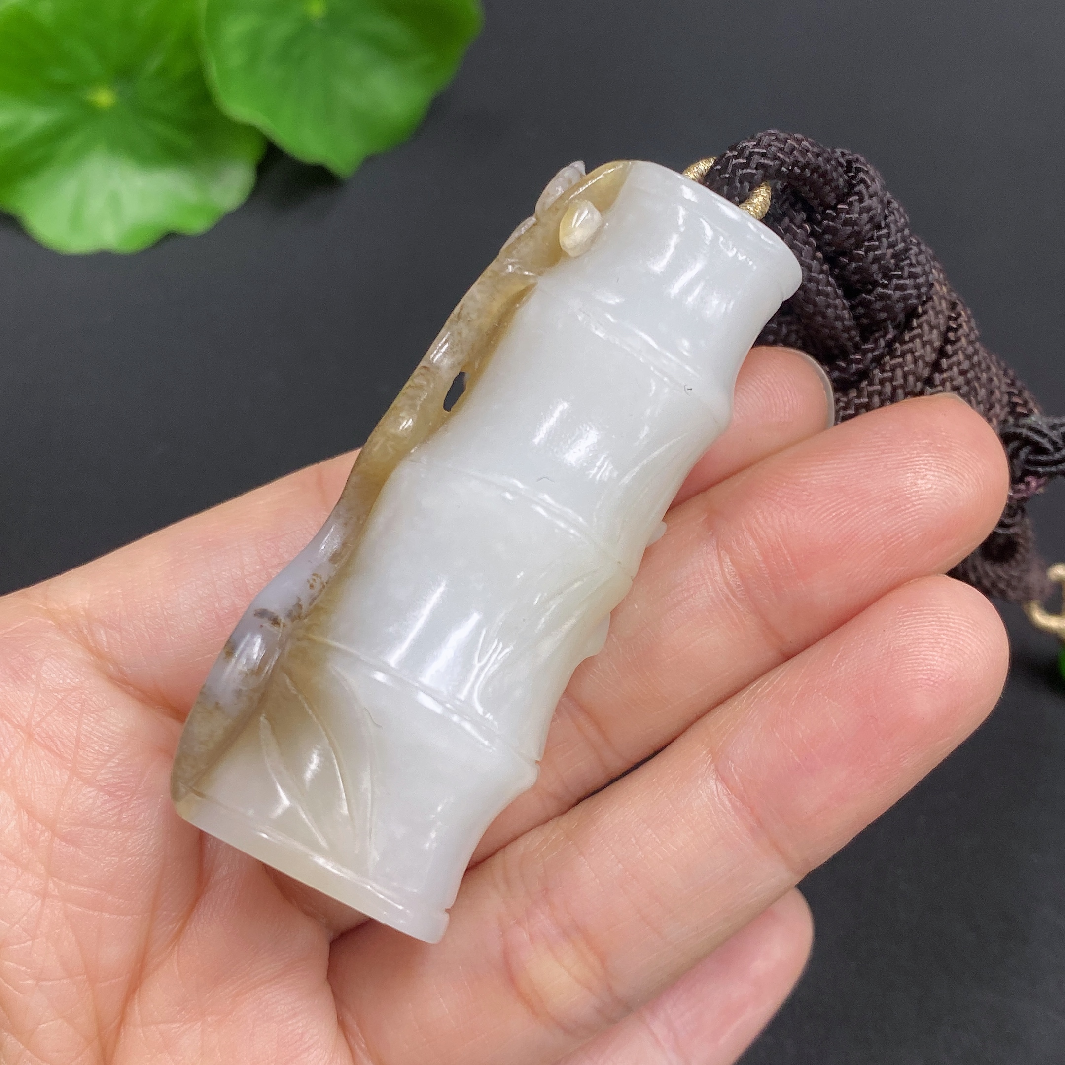 Hetian Jade Pendant Bamboo Joint Total Weight Approx. (including rope) 42.7g