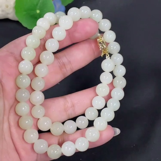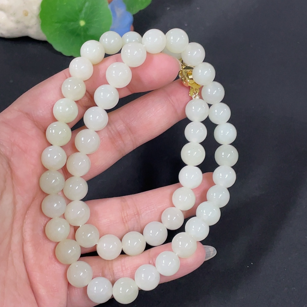 Trezaar - Hetian Jade Bead Necklace Approx. 9.7mm Non-Gold Total Weight Approx. 65.9g