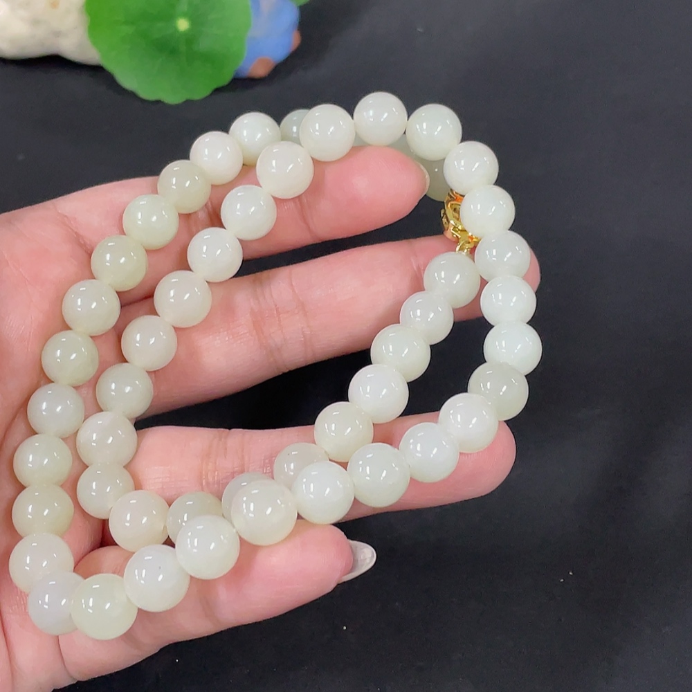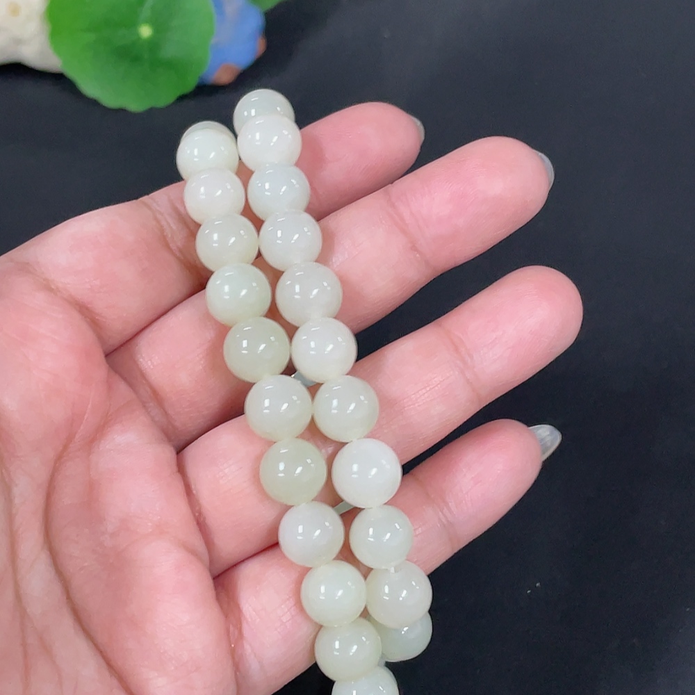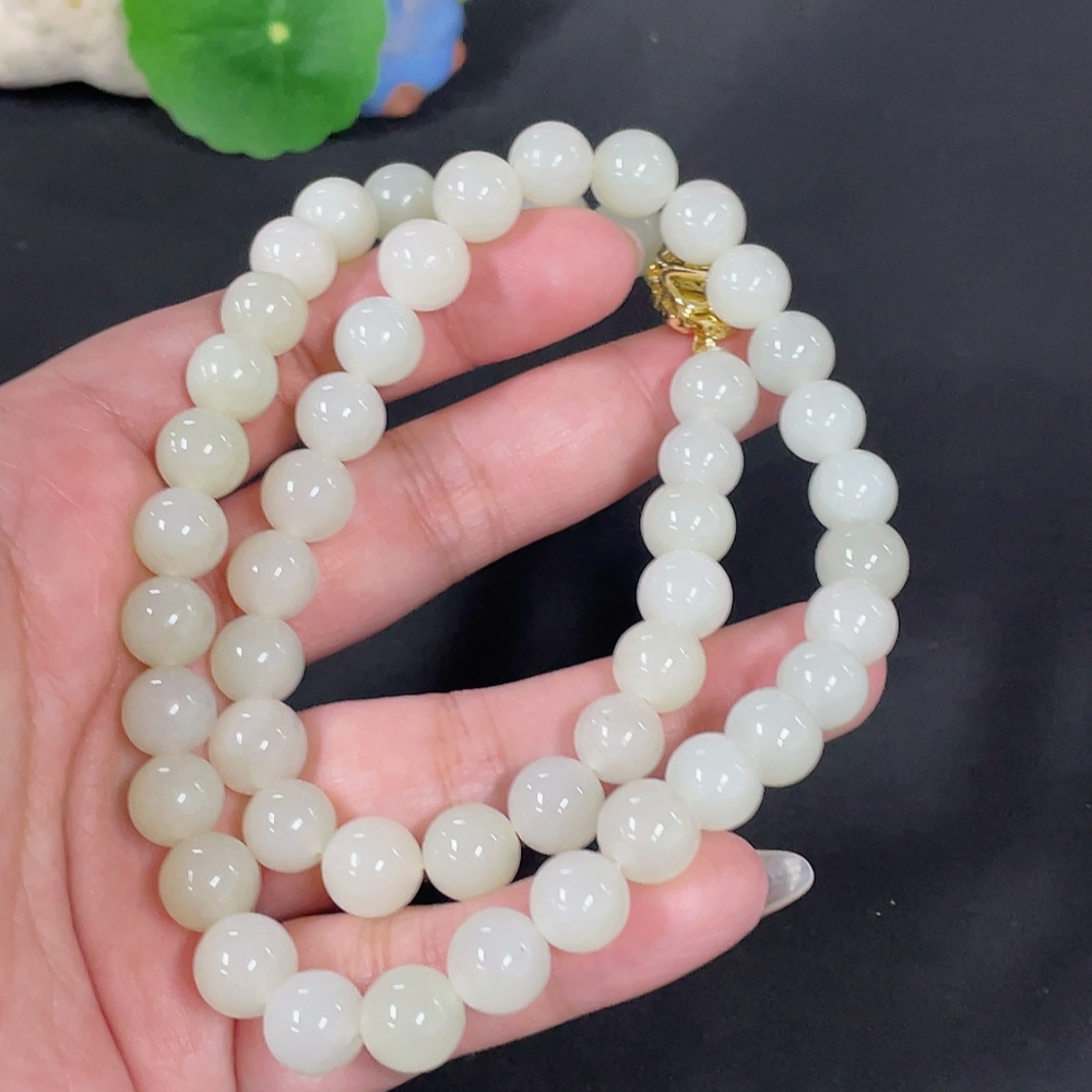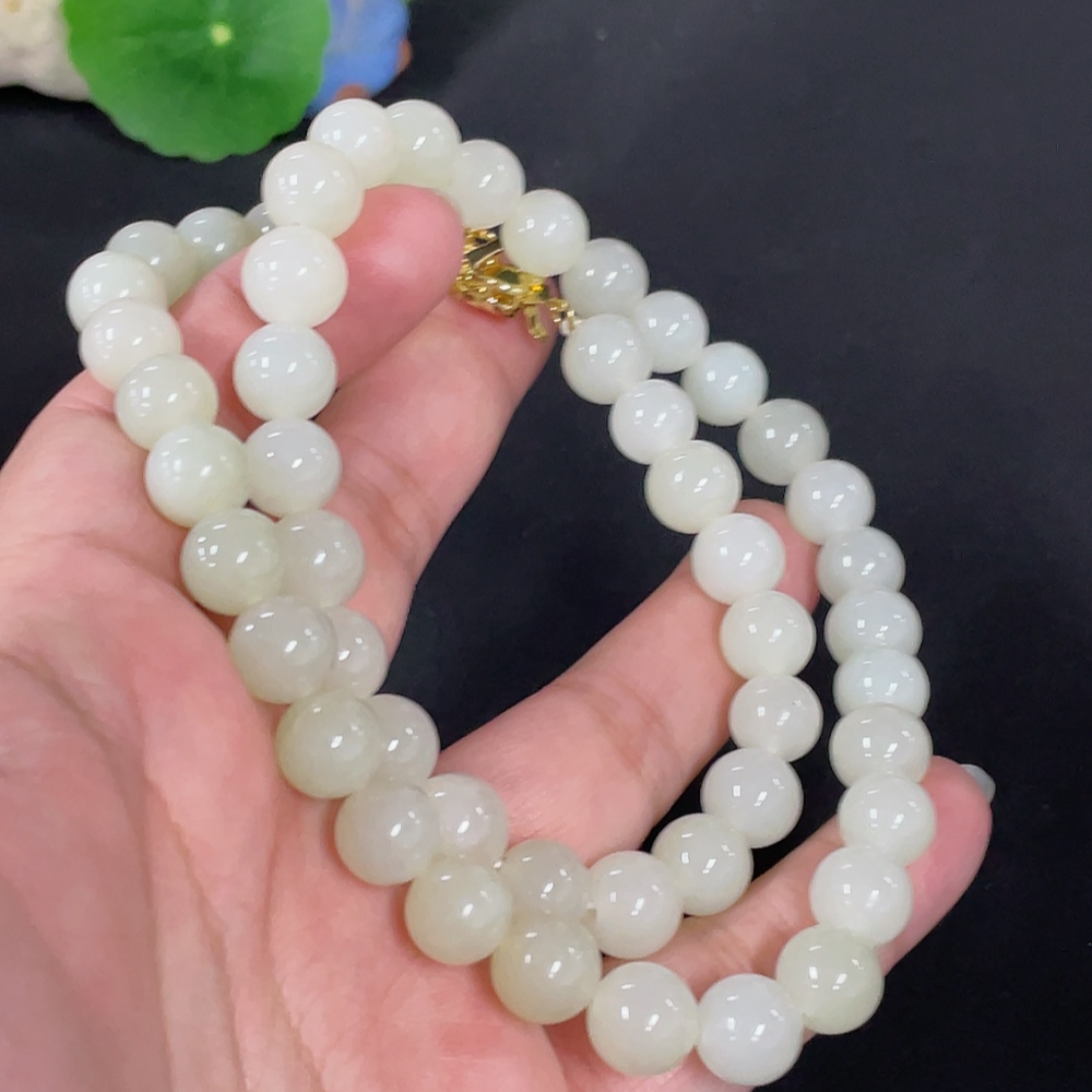 Hetian Jade Bead Necklace Approx. 9.7mm Non-Gold Total Weight Approx. 65.9g