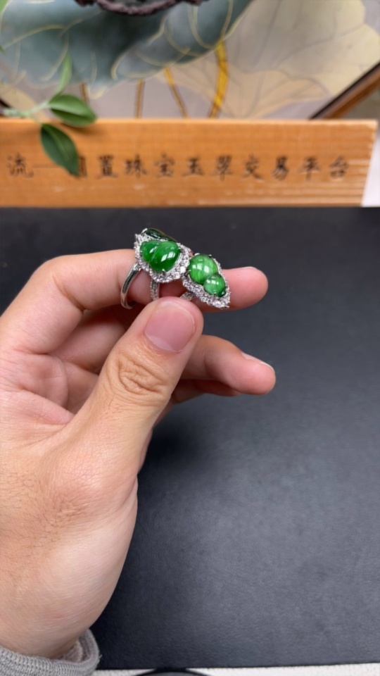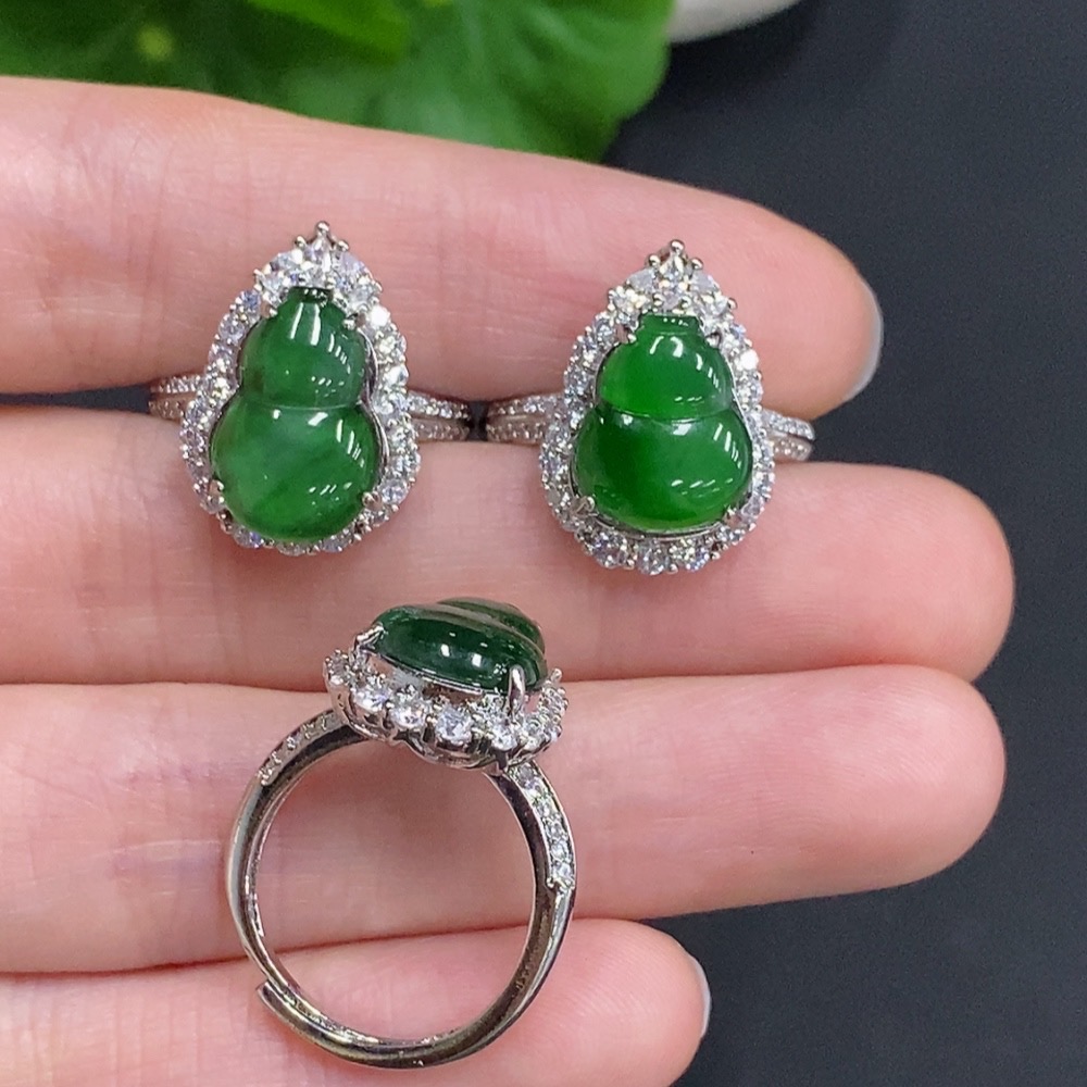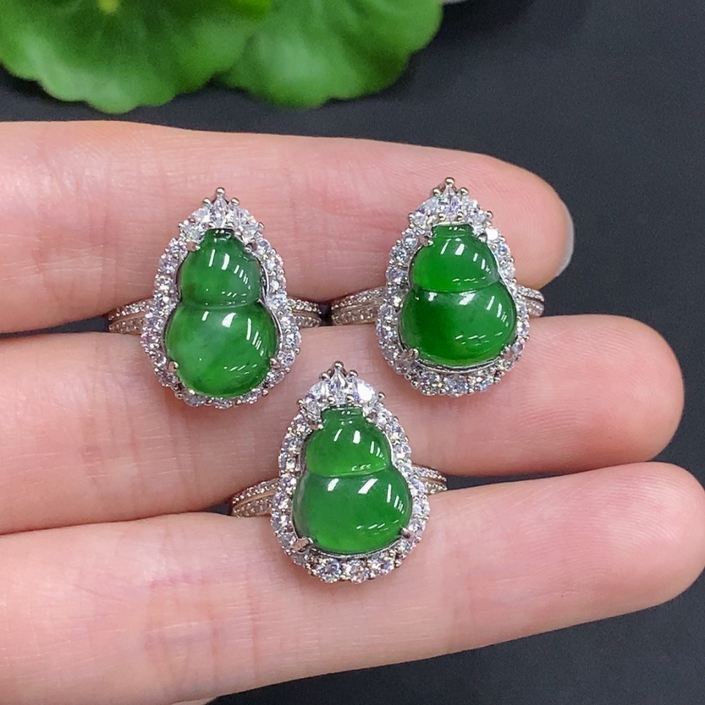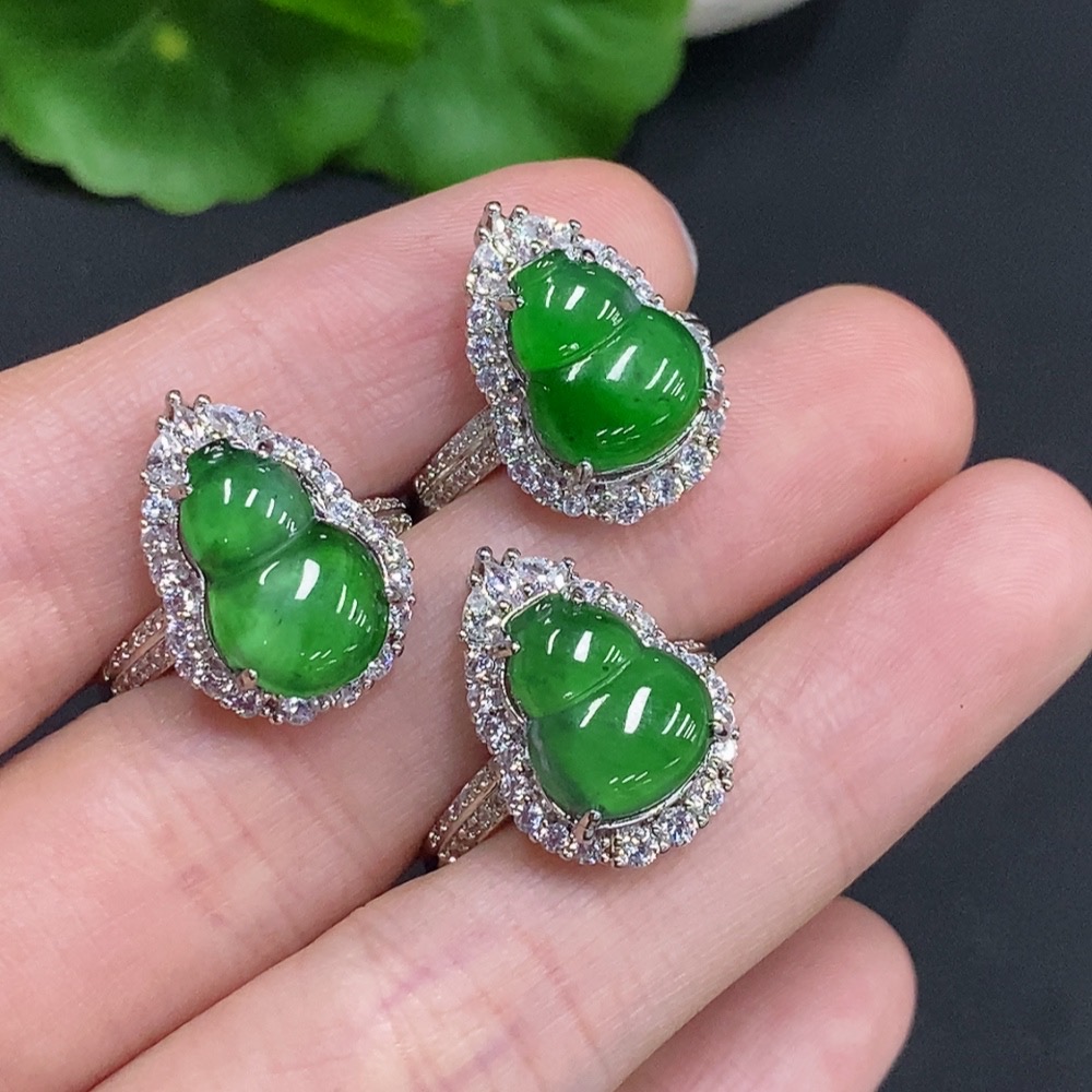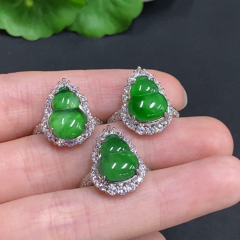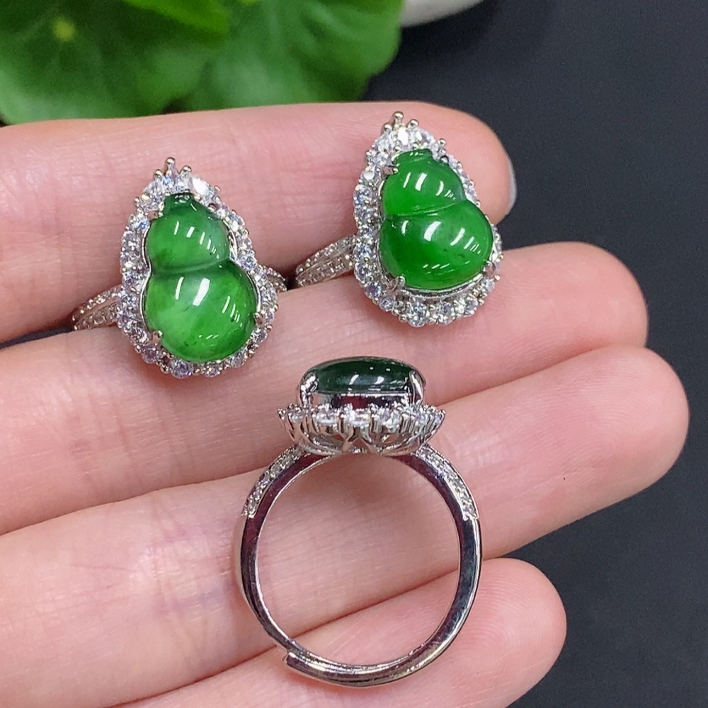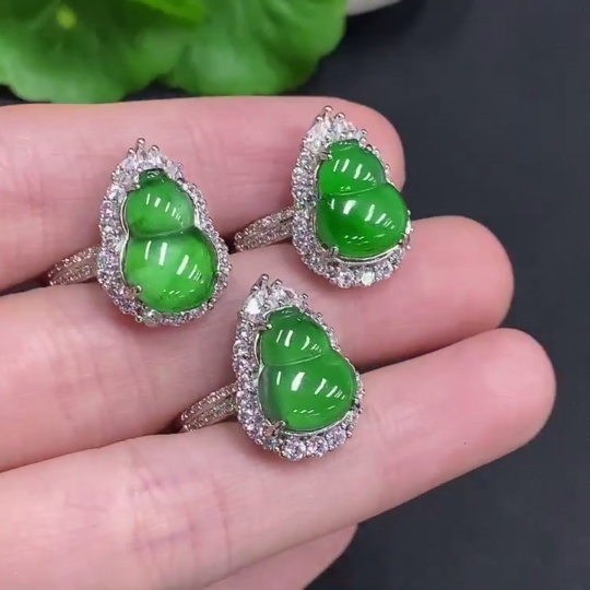 Jadeite Gourd Inlaid Ring Sell as a Lot Non-Gold Inlaid Adjustable Size Total Weight Approx. 9g