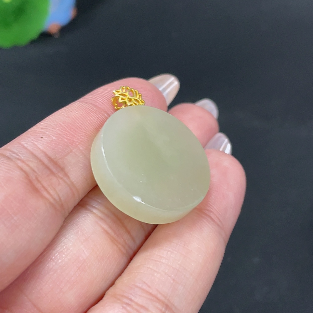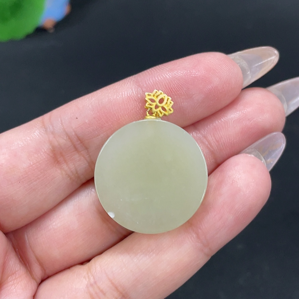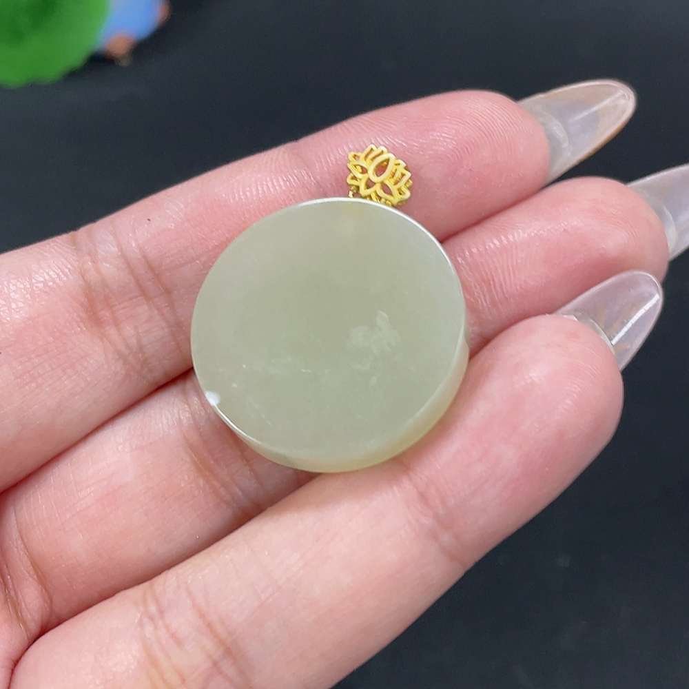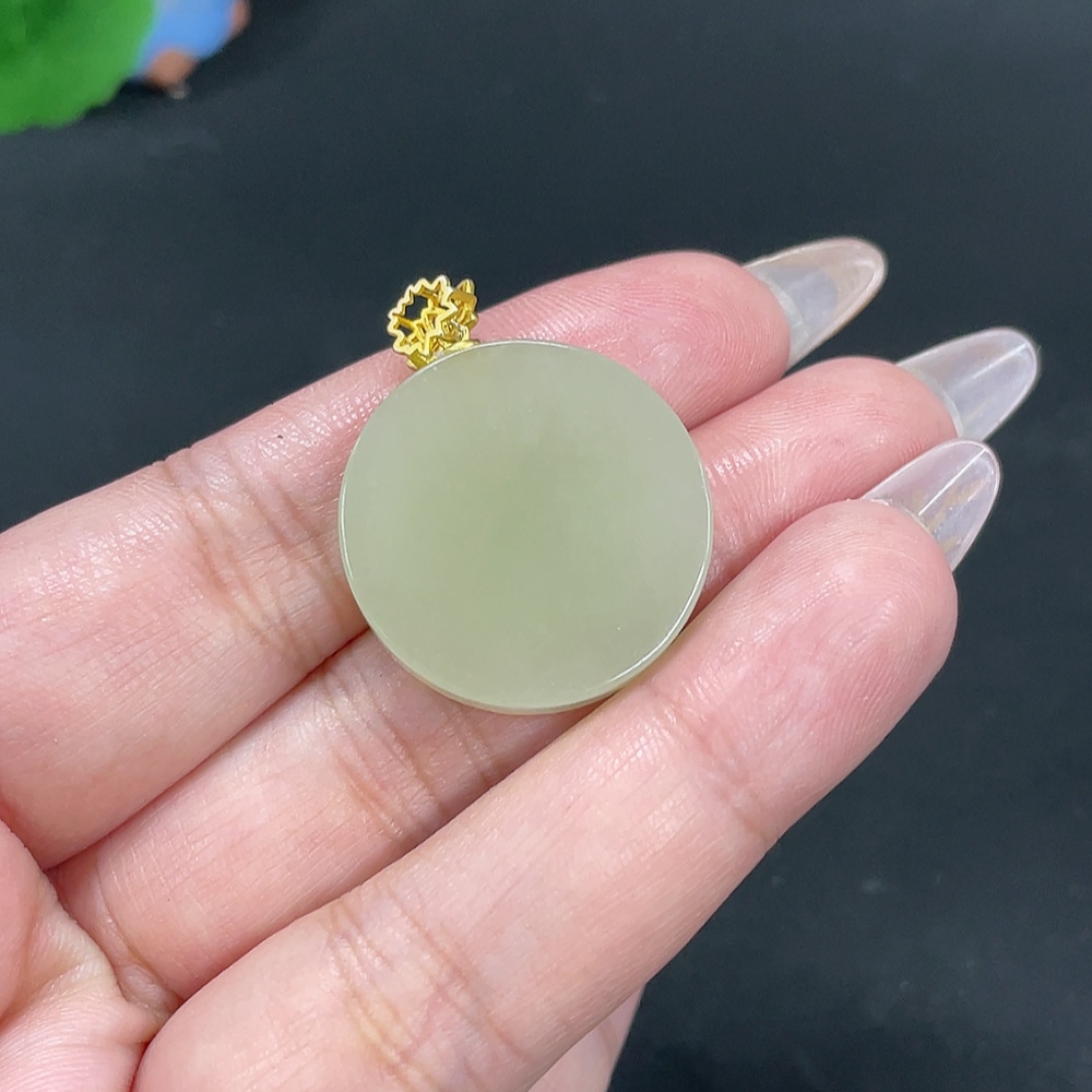 Hetian Jade Inlaid Pendant Plain Pendant Total Weight About 8.7g Non-Gold