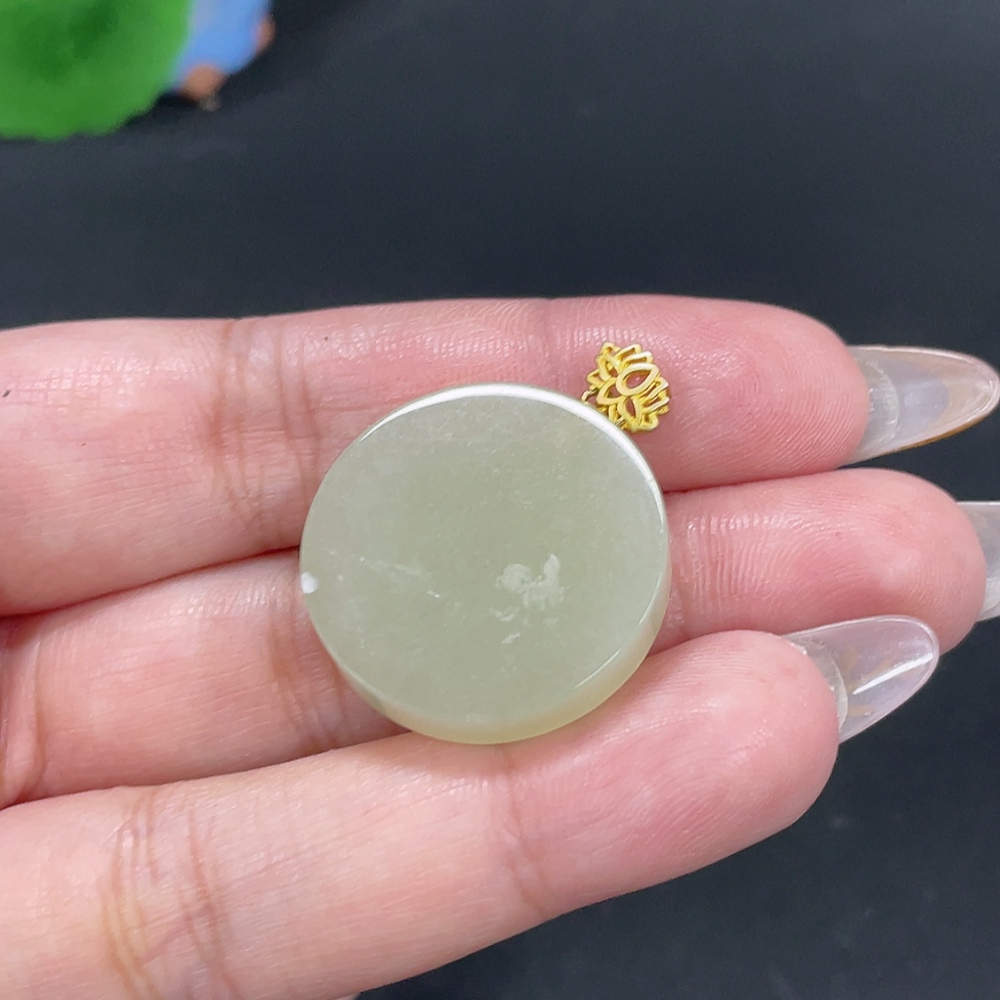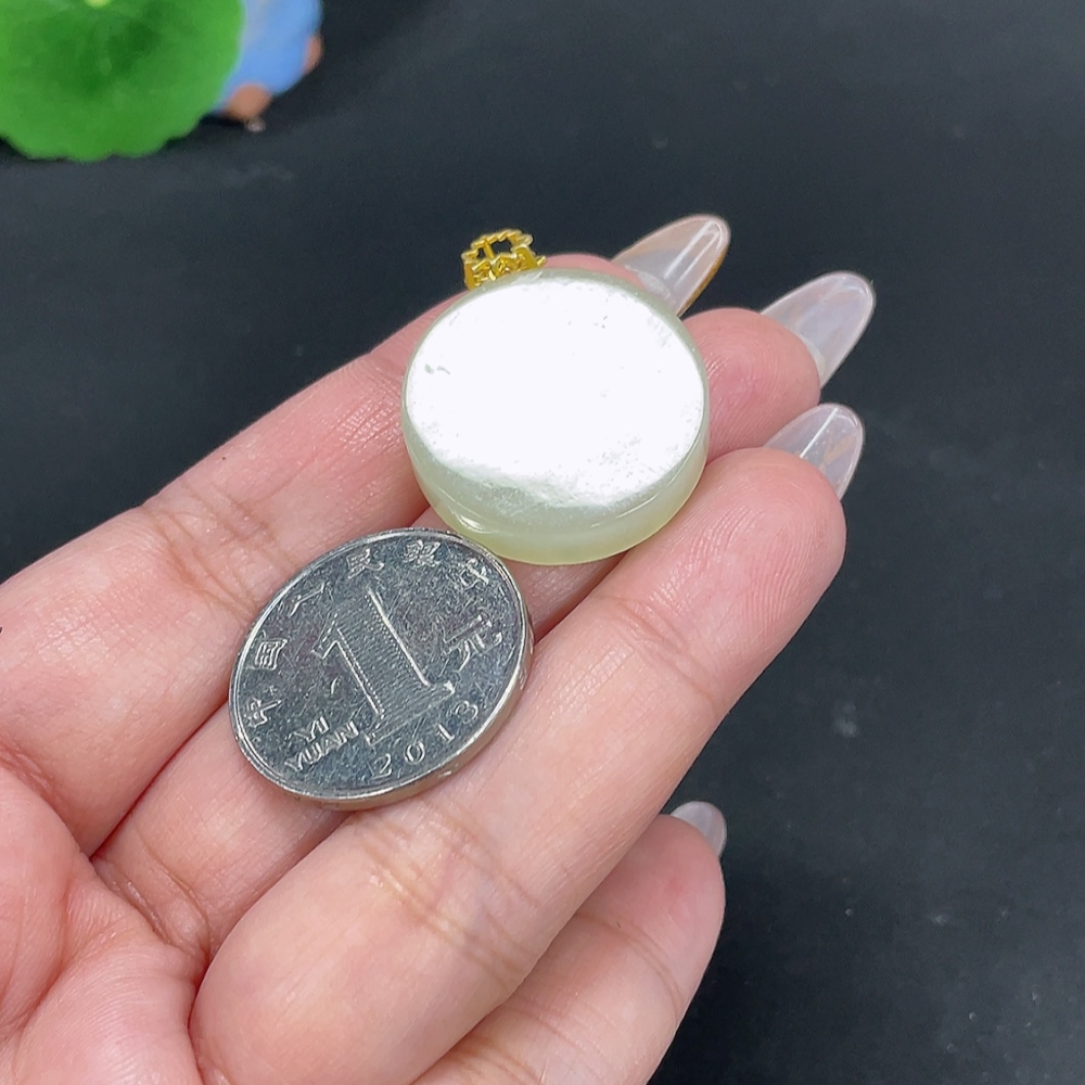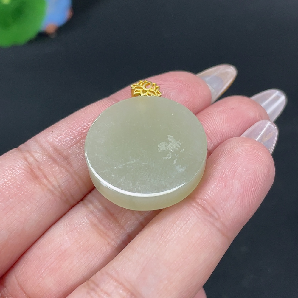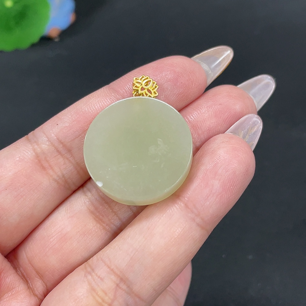 Hetian Jade Inlaid Pendant Plain Pendant Total Weight About 8.7g Non-Gold