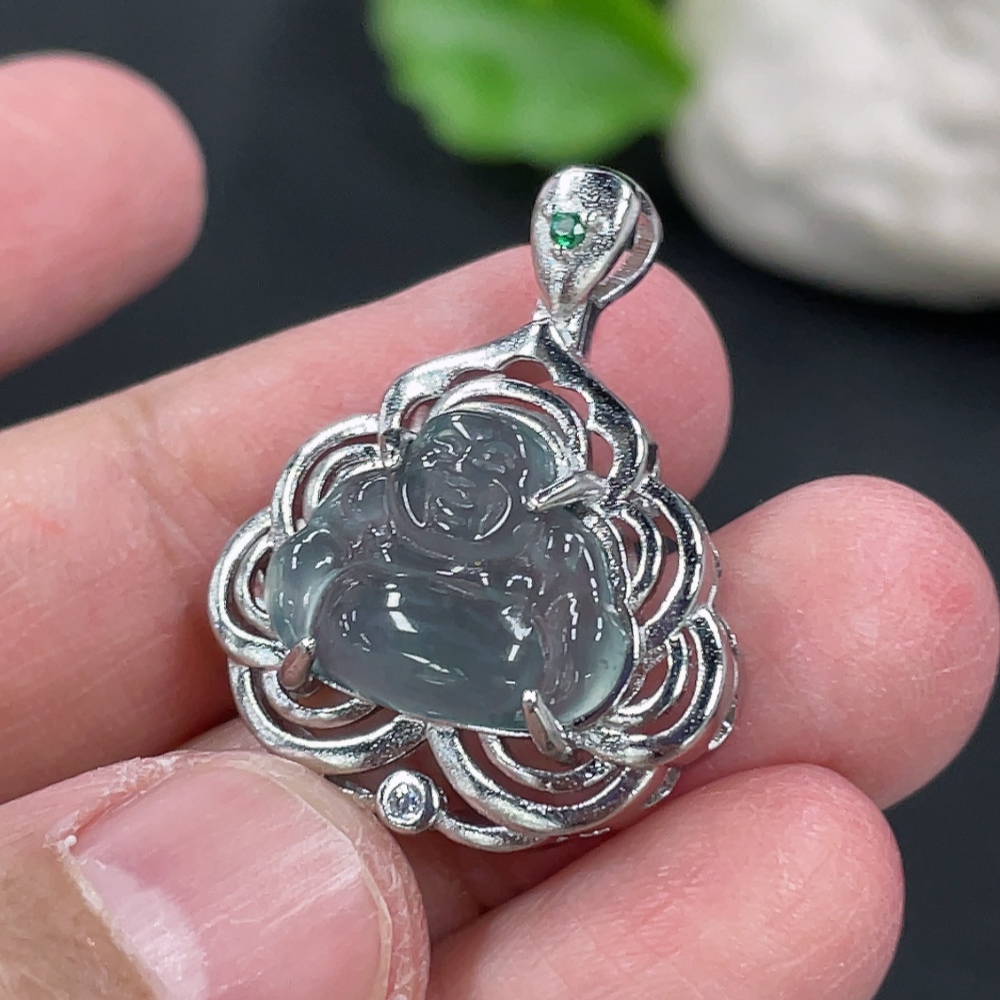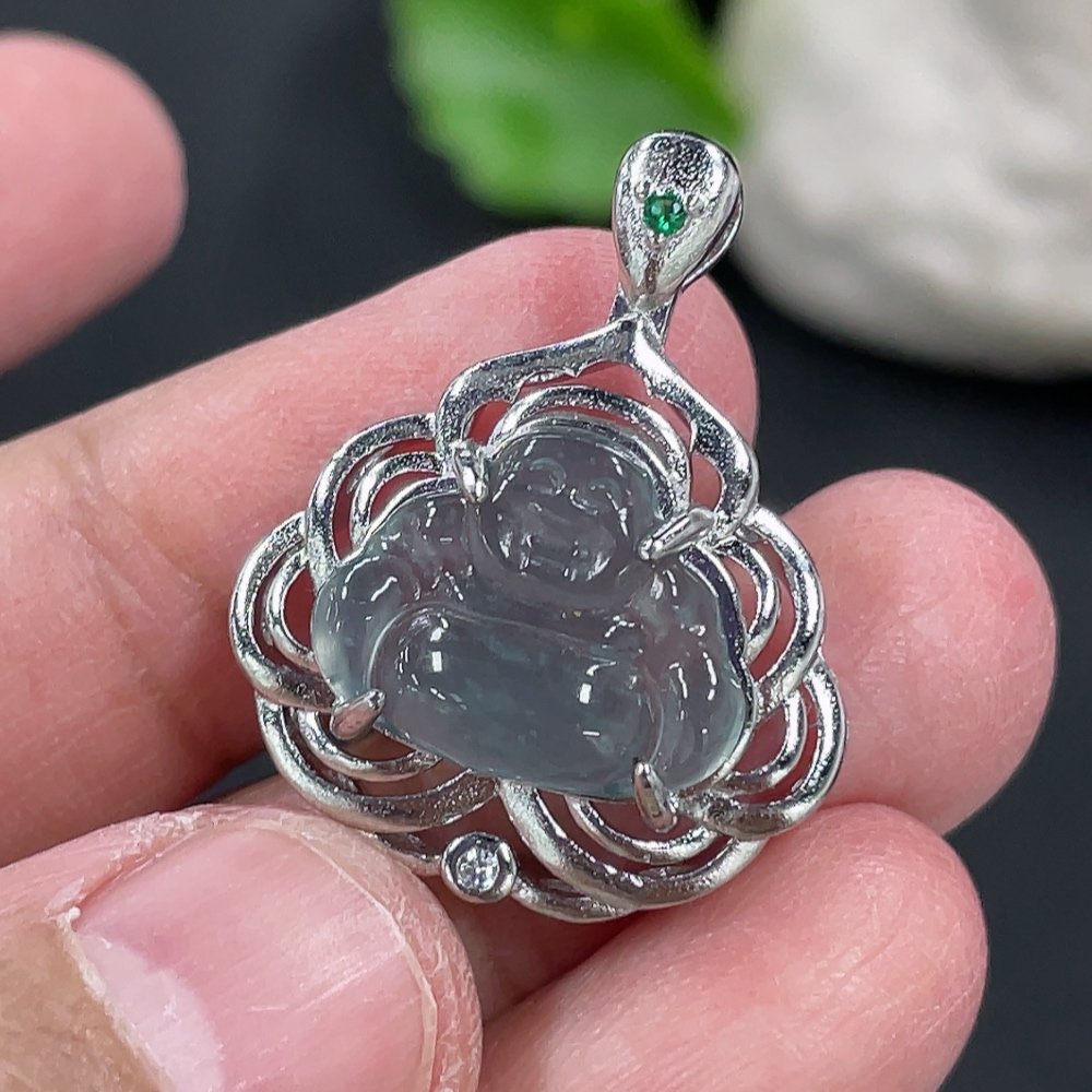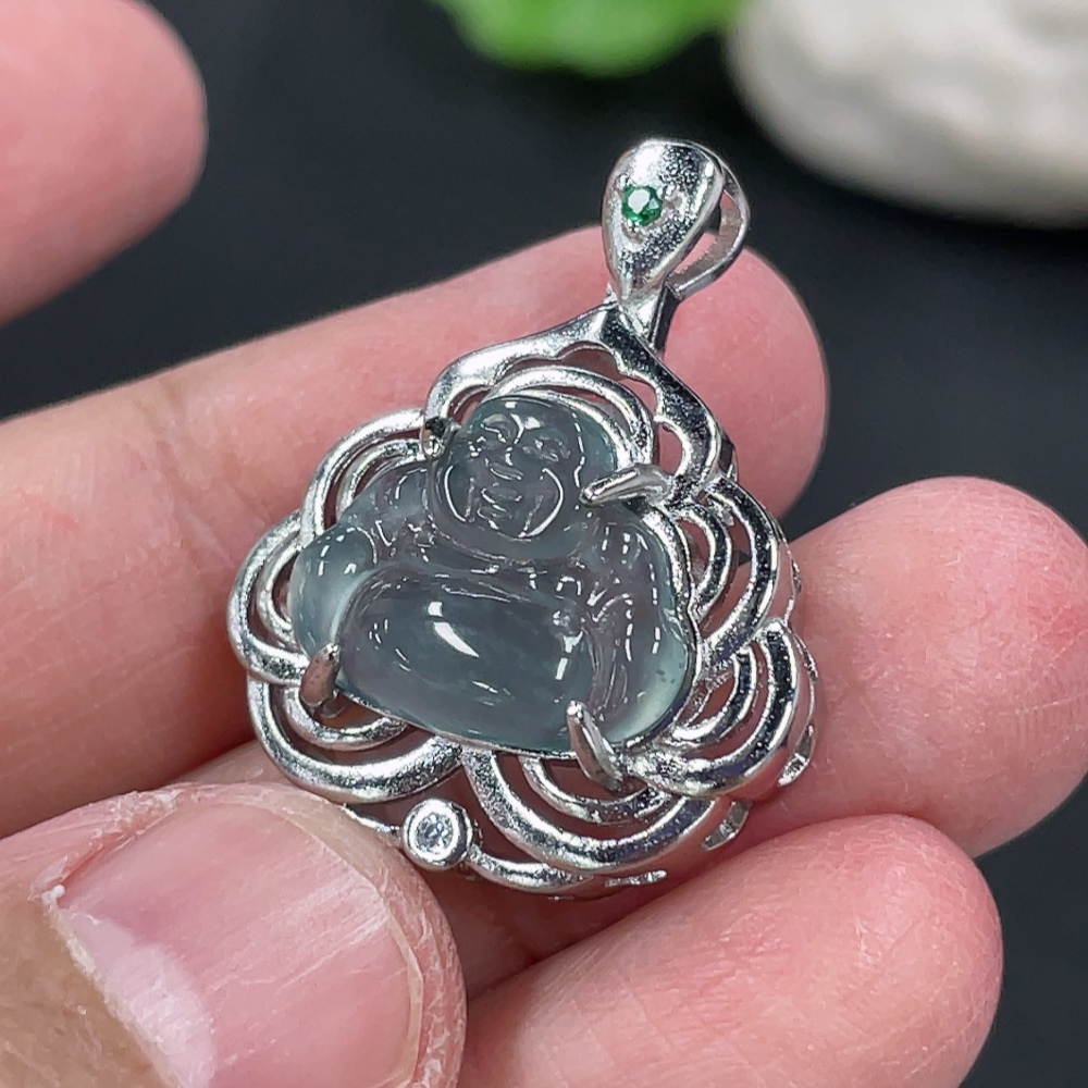 Jadeite Buddha Inlaid Pendant Non-Gold Inlaid Total Weight About 4.03g