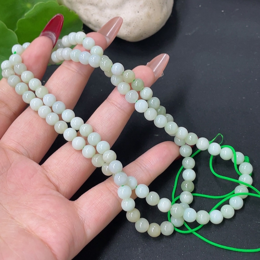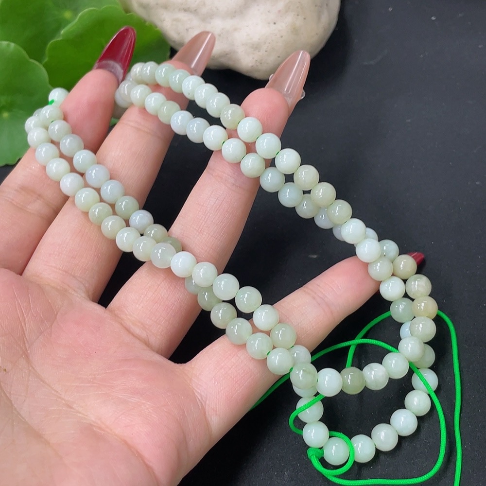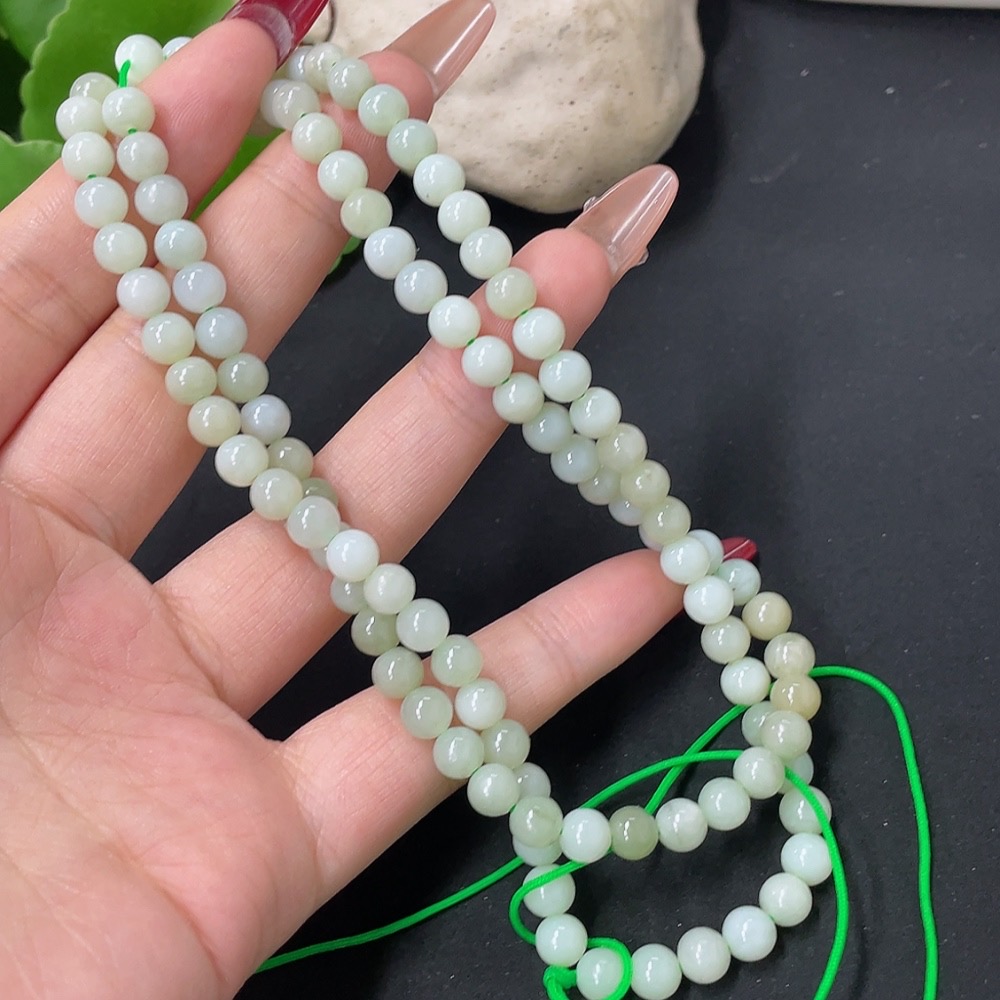 Hetian Jade Bead Necklace Approx. 5.7mm Total Weight Approx. 31.3g