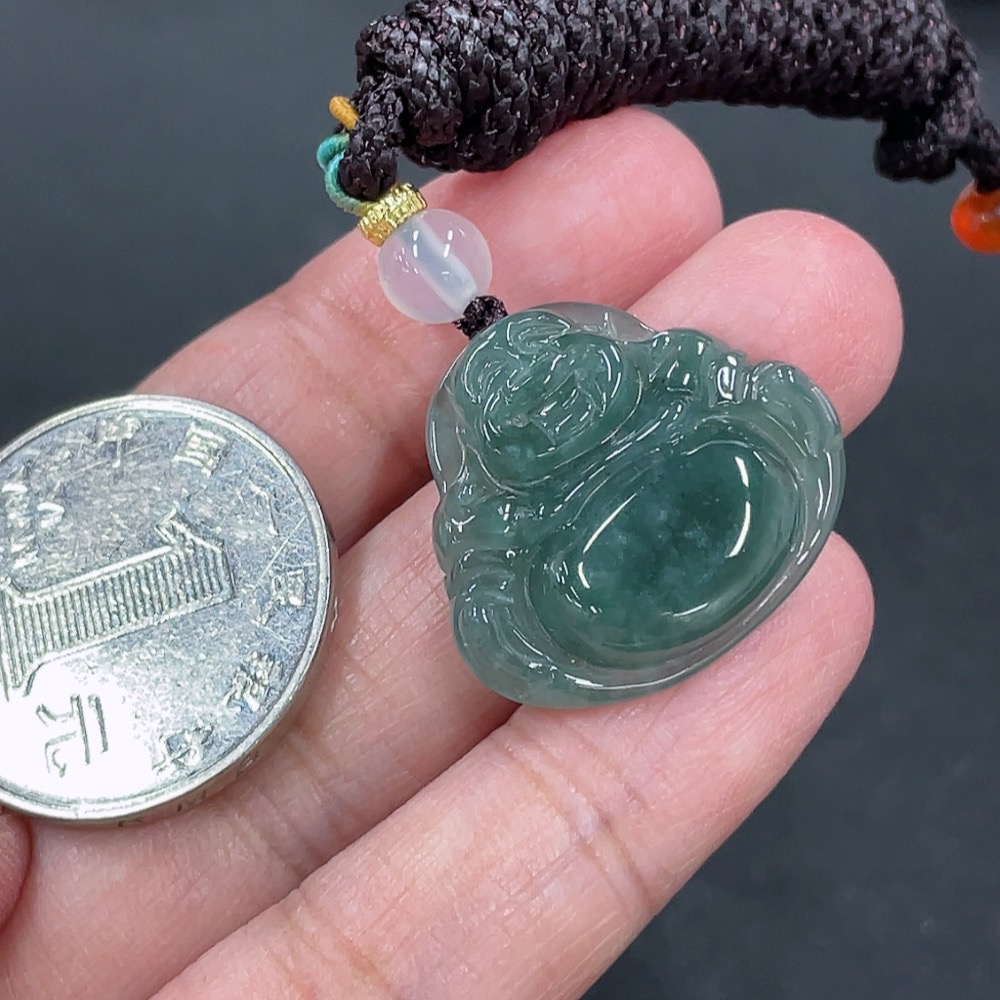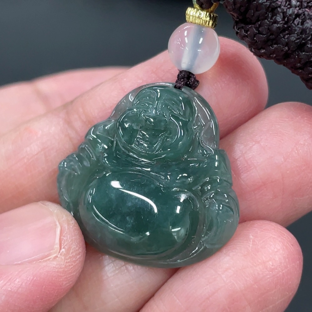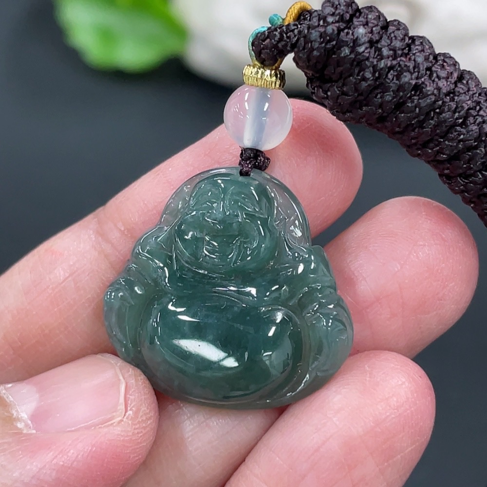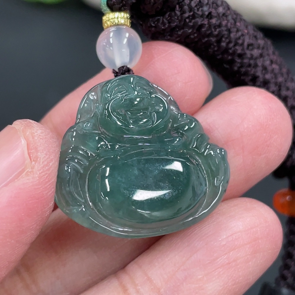 Jadeite Pendant Buddha, Total Weight Approximately 6.67g Including Rope, Beads Non-Grade A