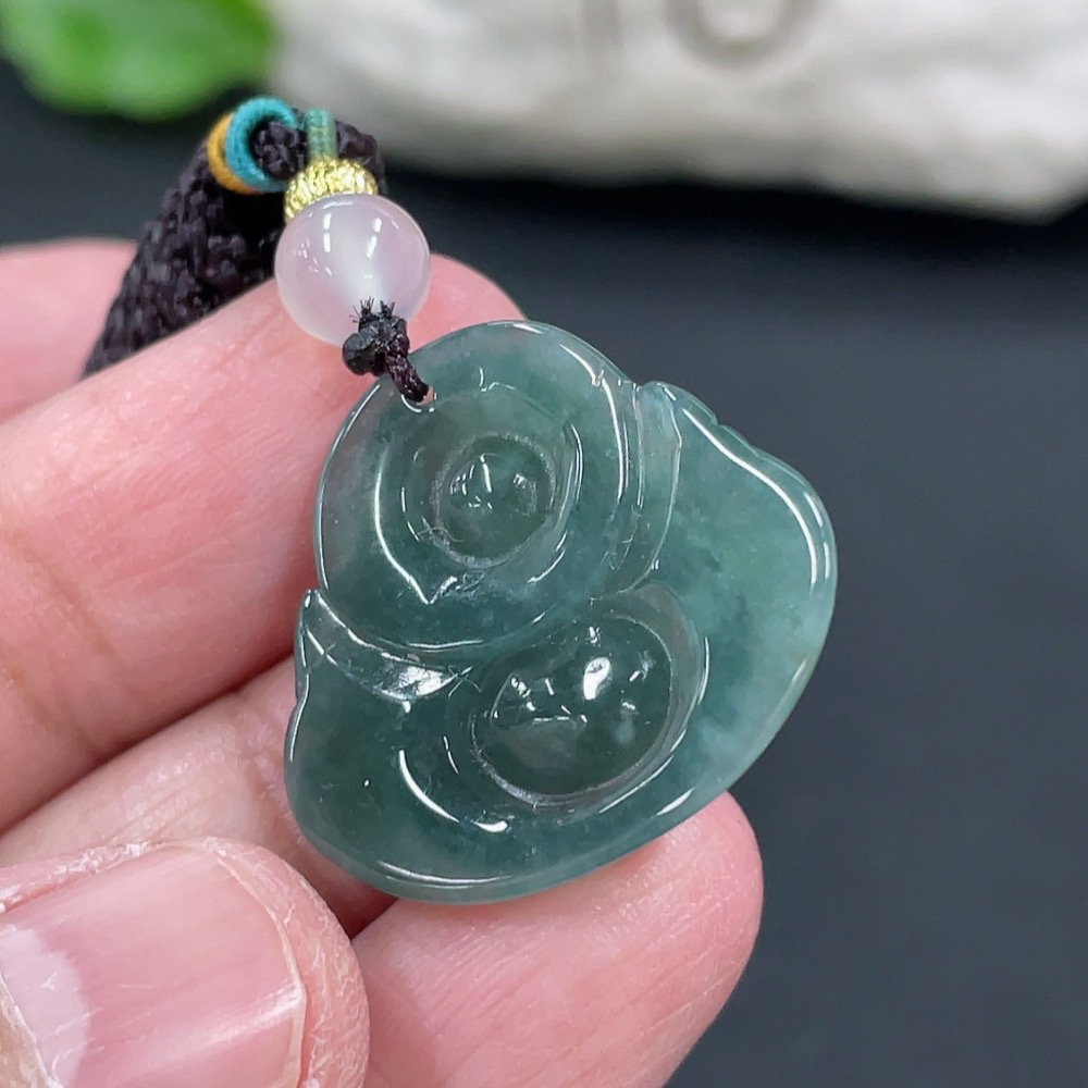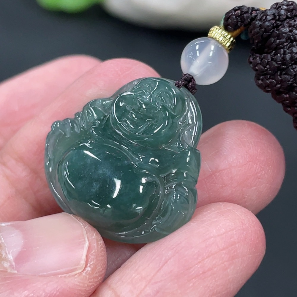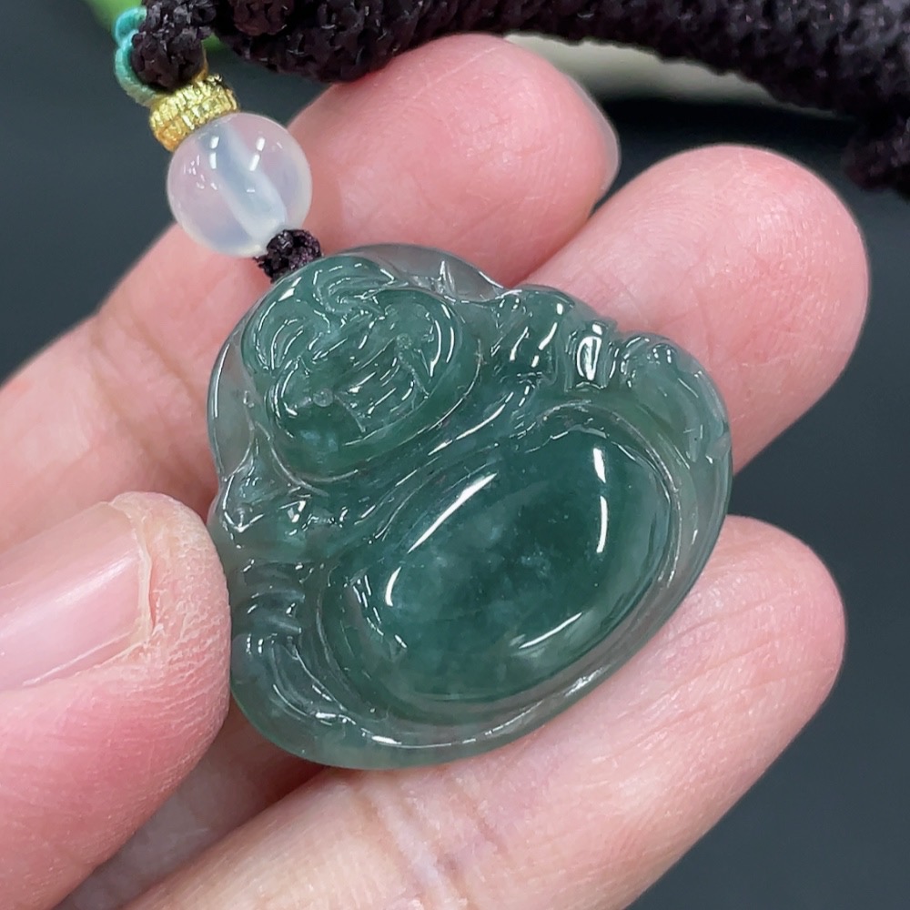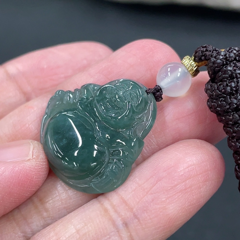 Jadeite Pendant Buddha, Total Weight Approximately 6.67g Including Rope, Beads Non-Grade A
