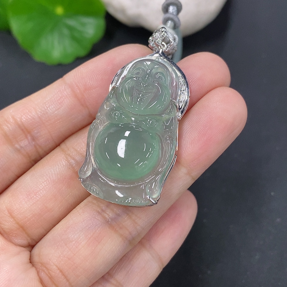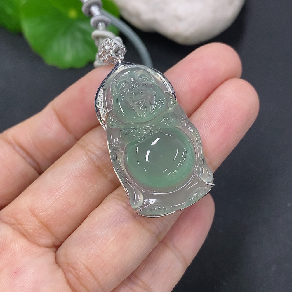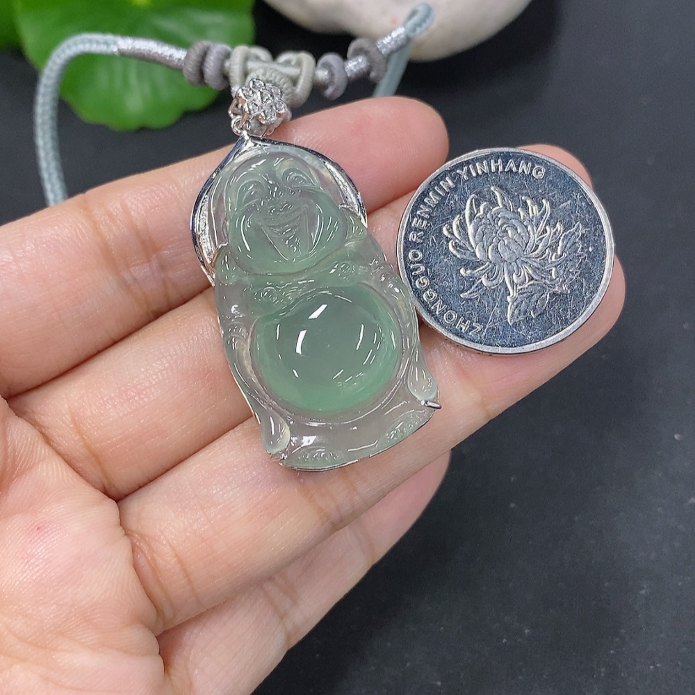 Jadeite inlaid Buddha pendant 18k non-diamond (too small to determine natural origin) total weight approx. 9.35g with rope