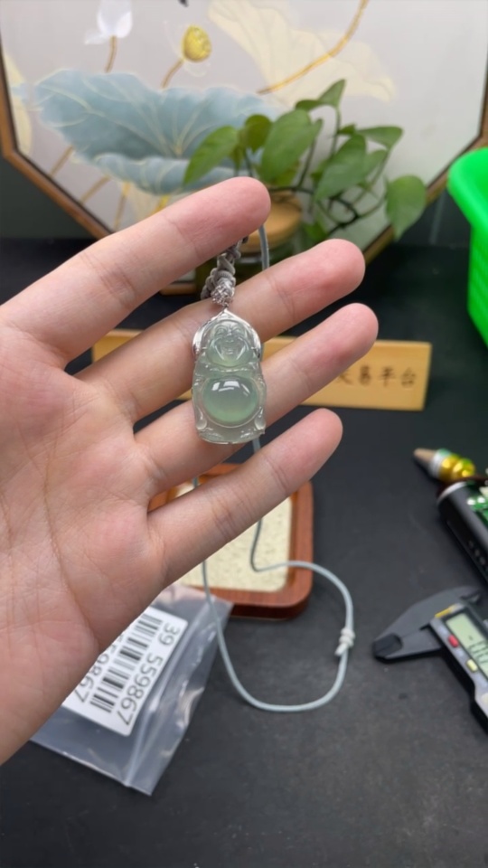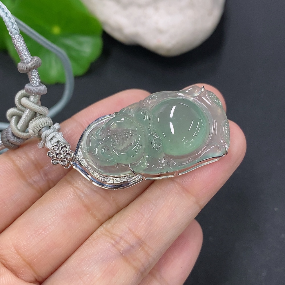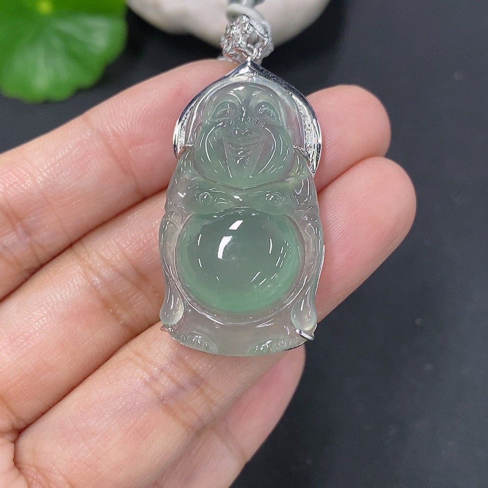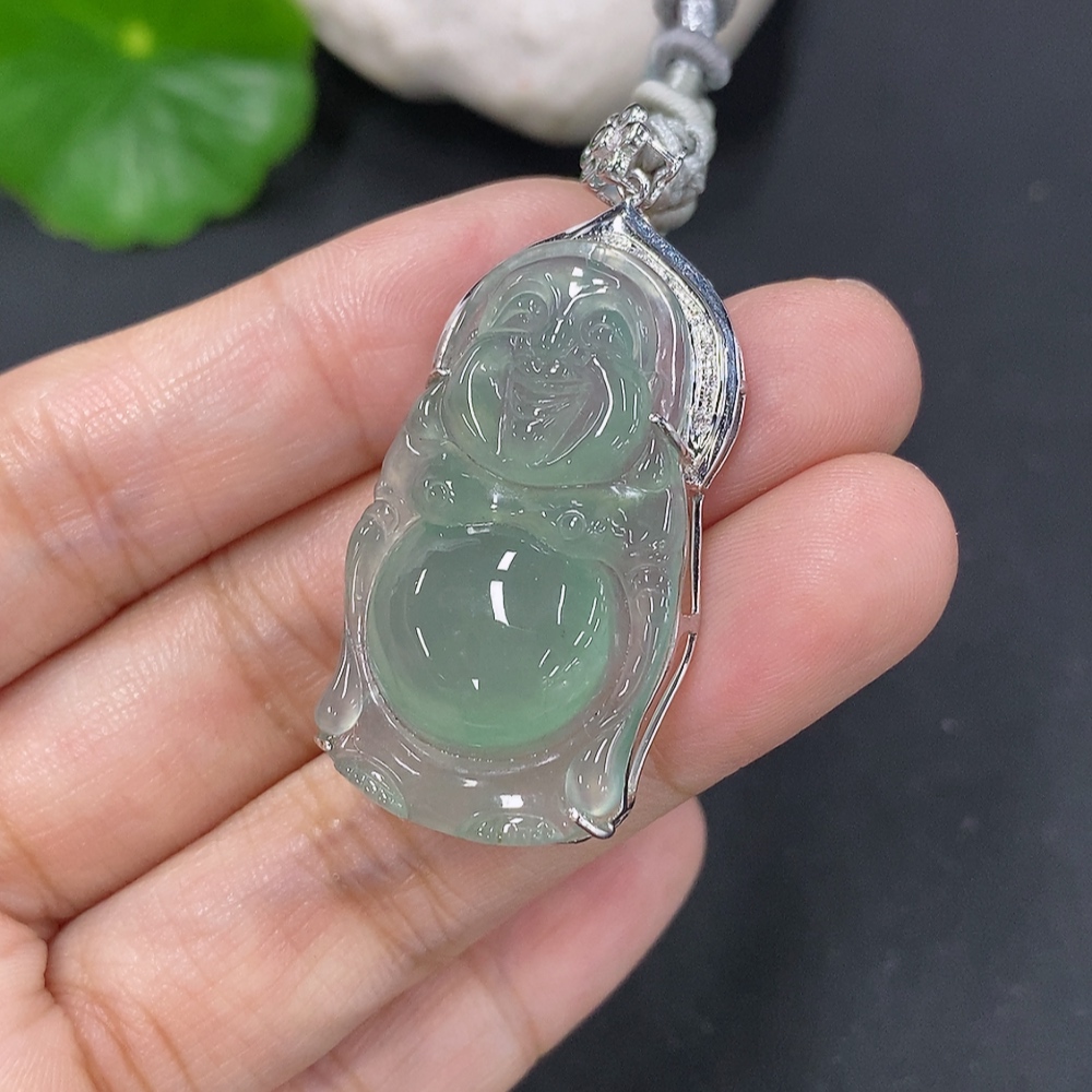 Jadeite inlaid Buddha pendant 18k non-diamond (too small to determine natural origin) total weight approx. 9.35g with rope