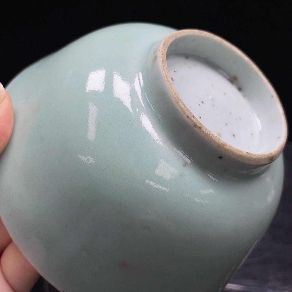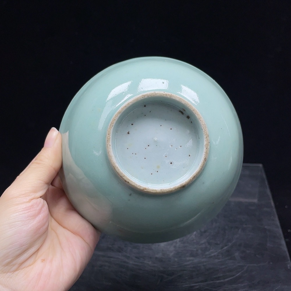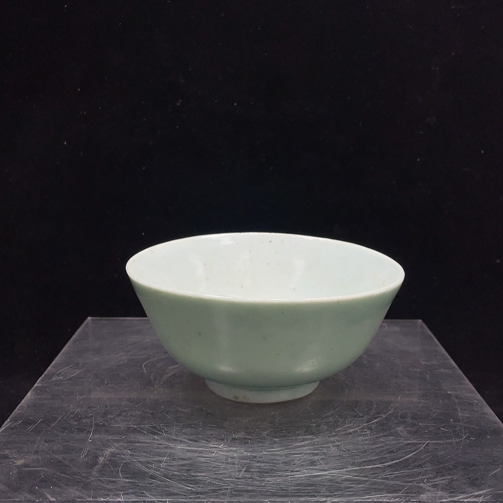 Porcelain, intact, mid-Qing Dynasty pea-green glazed bowl
