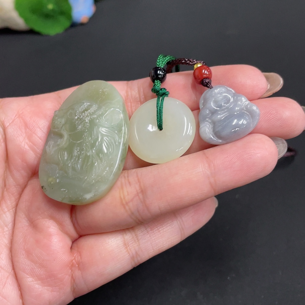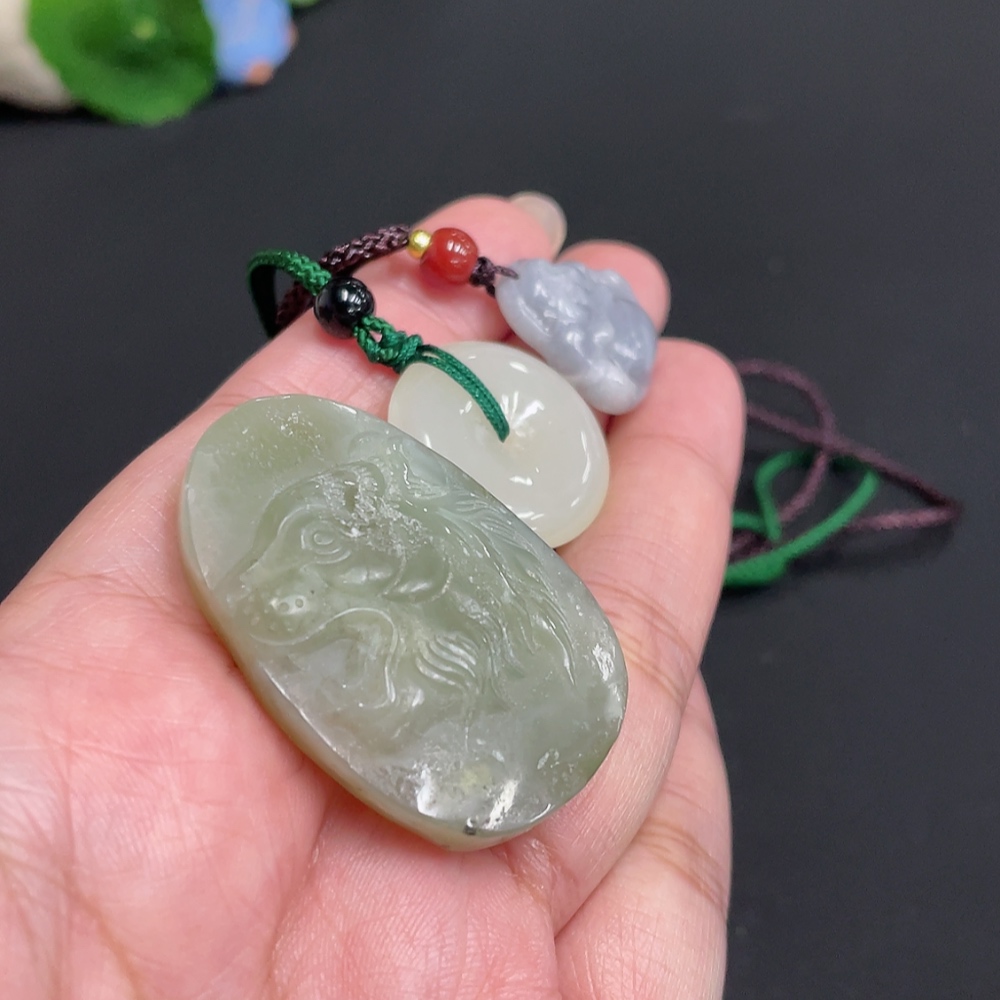 Hetian Jade Pendant Total Weight Approx. [with Rope] 30.8g Beads Not Hetian Jade