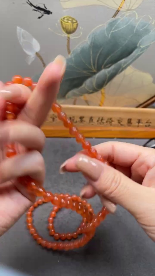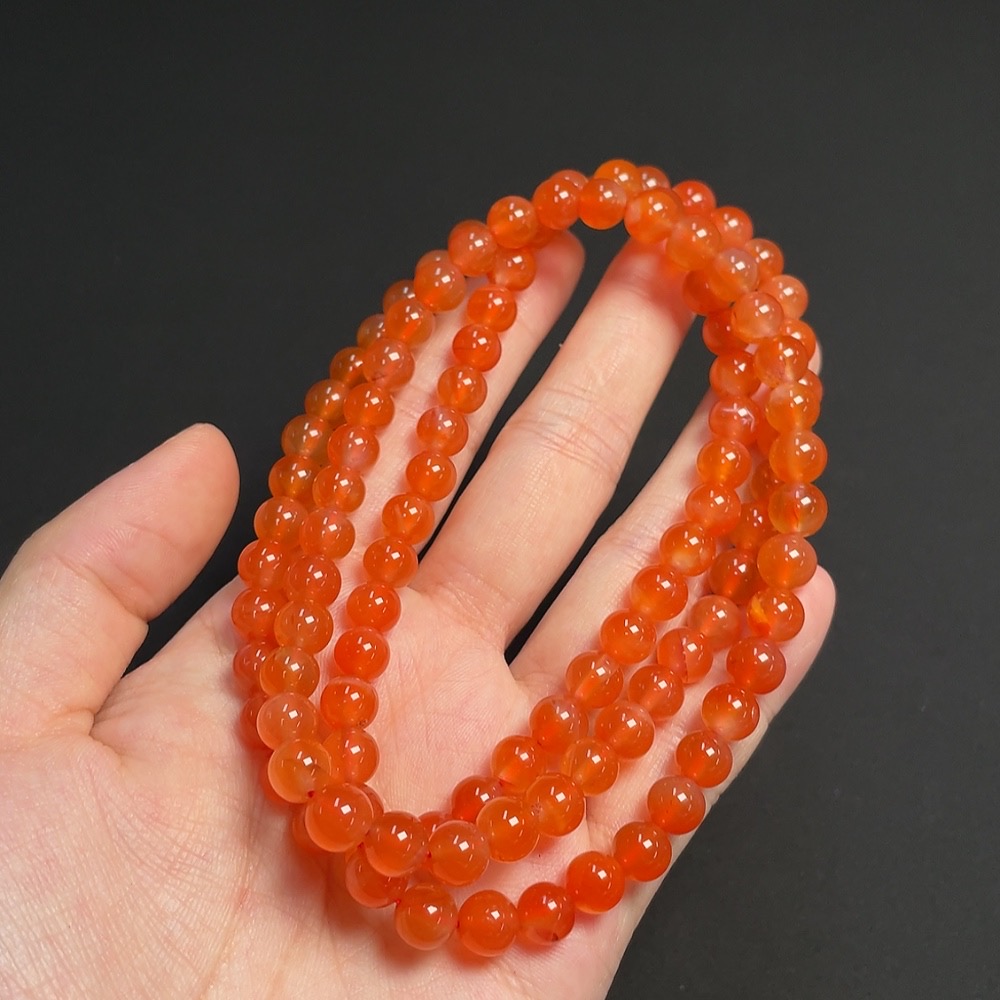 South Red Agate Bead Strand, approximately 7.2mm, total weight about 54.27g, organic matter visible