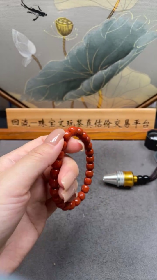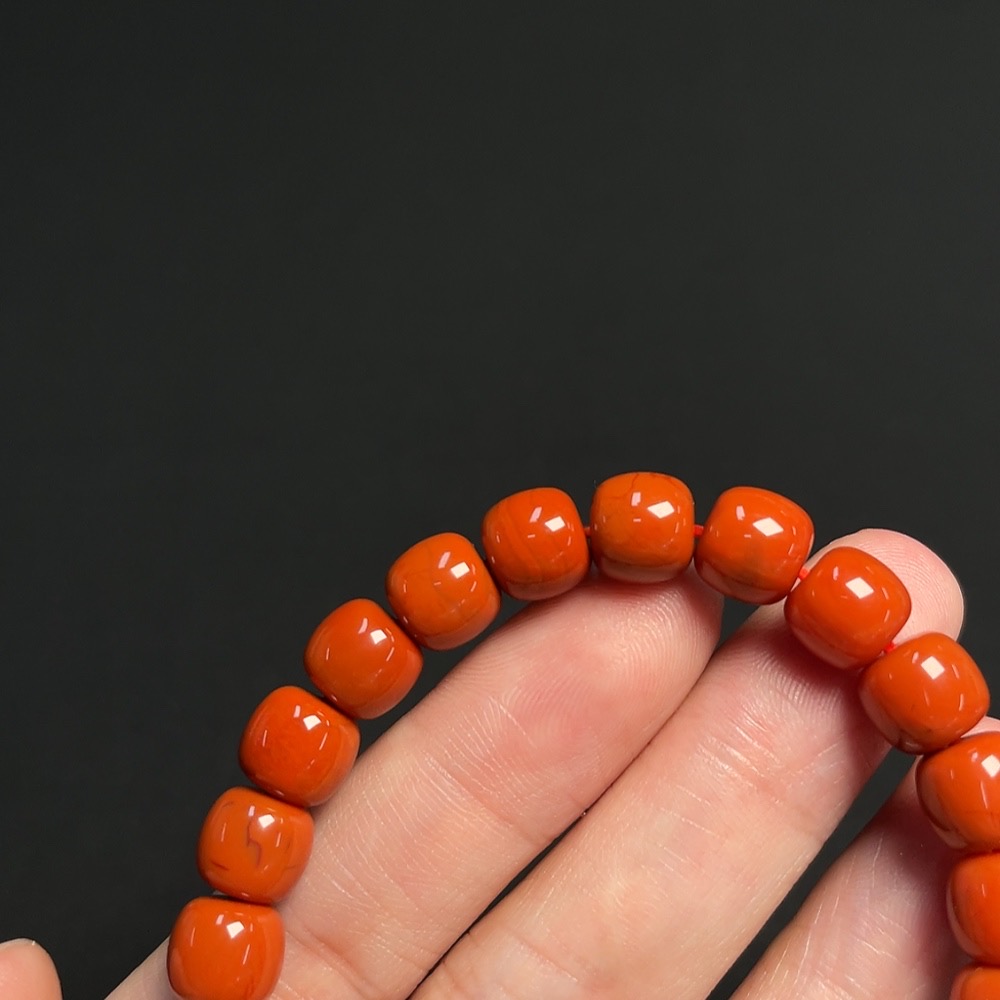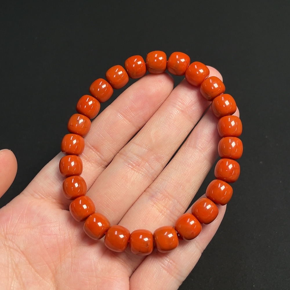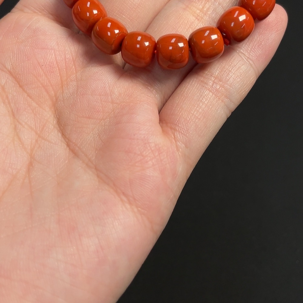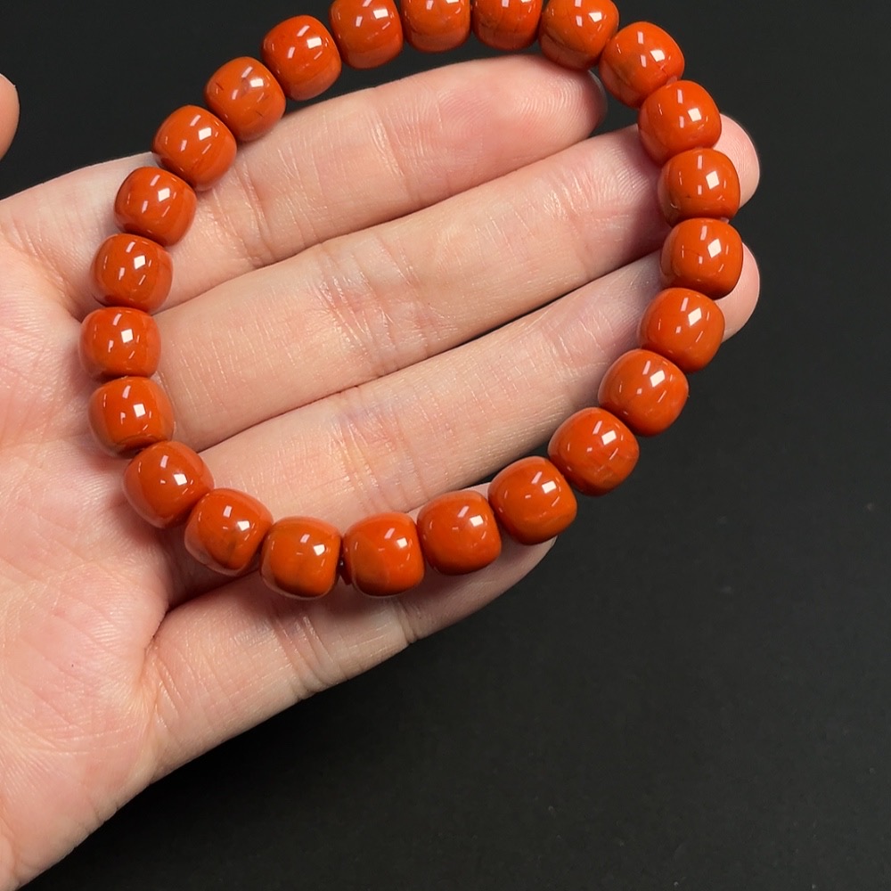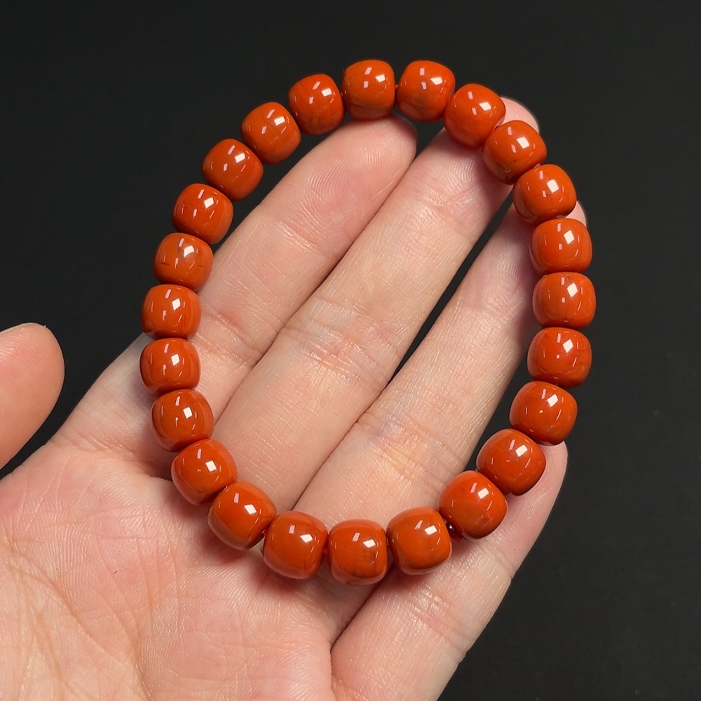 Red Agate Bracelet (approx. 8.2mm, total weight about 21.11g, visible organic matter)