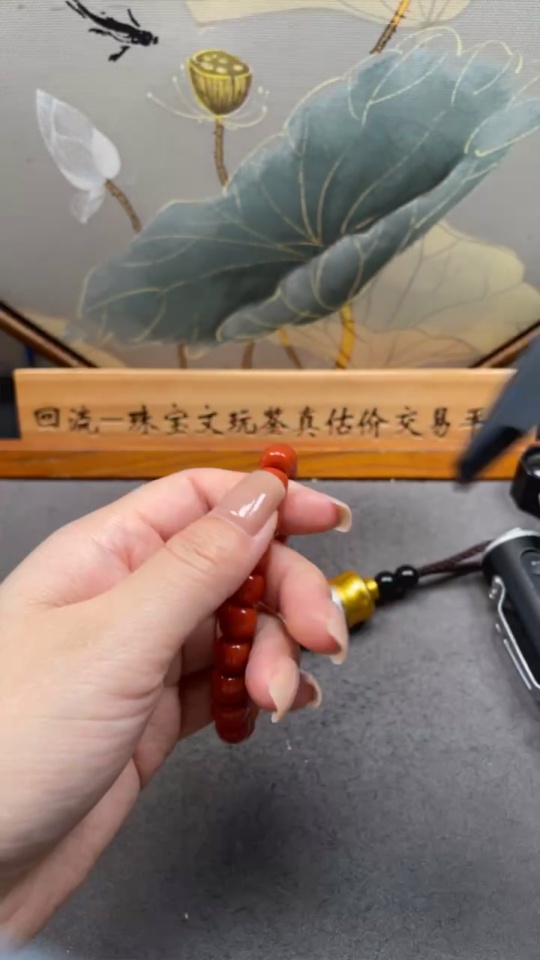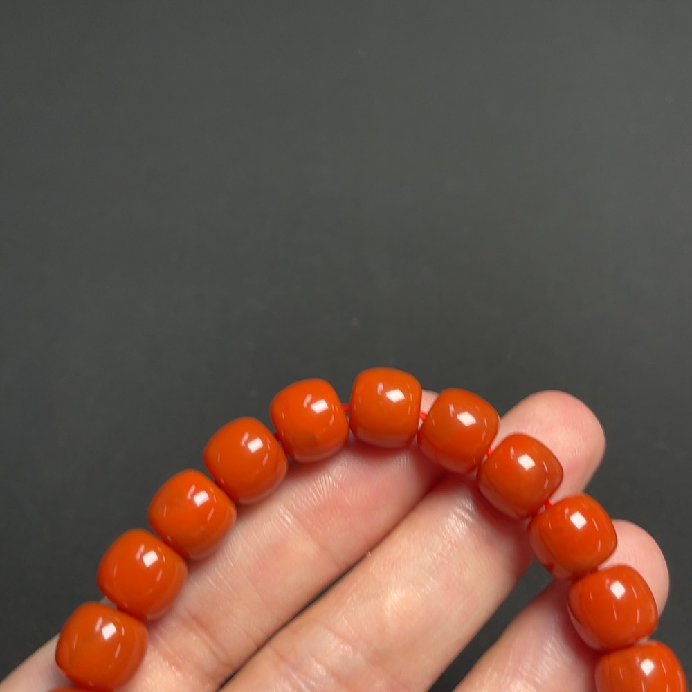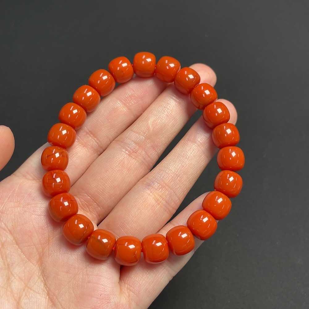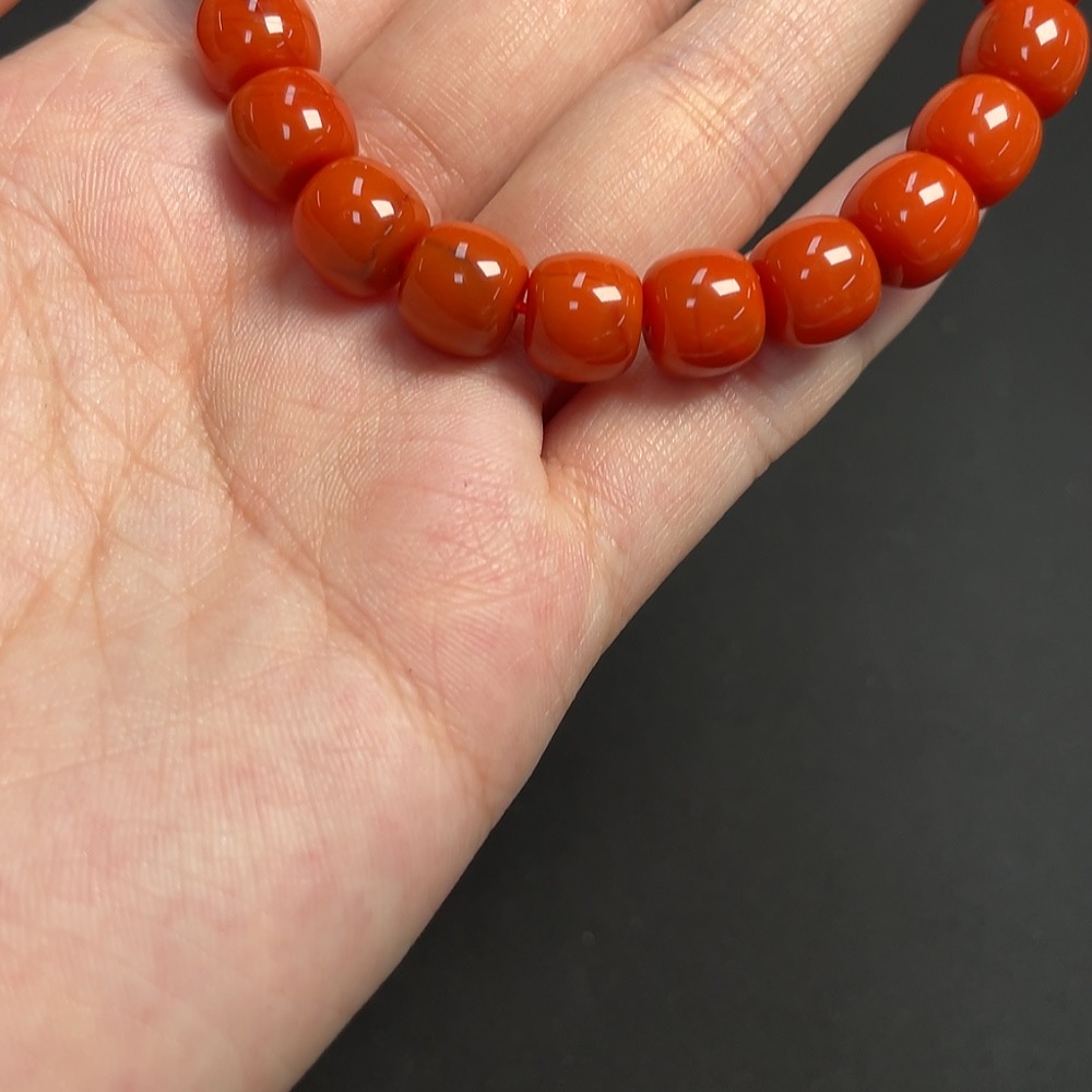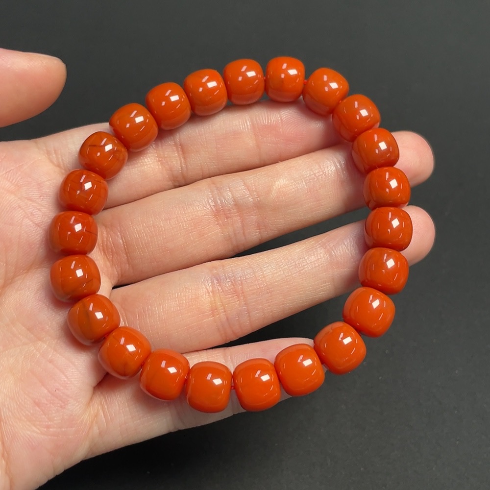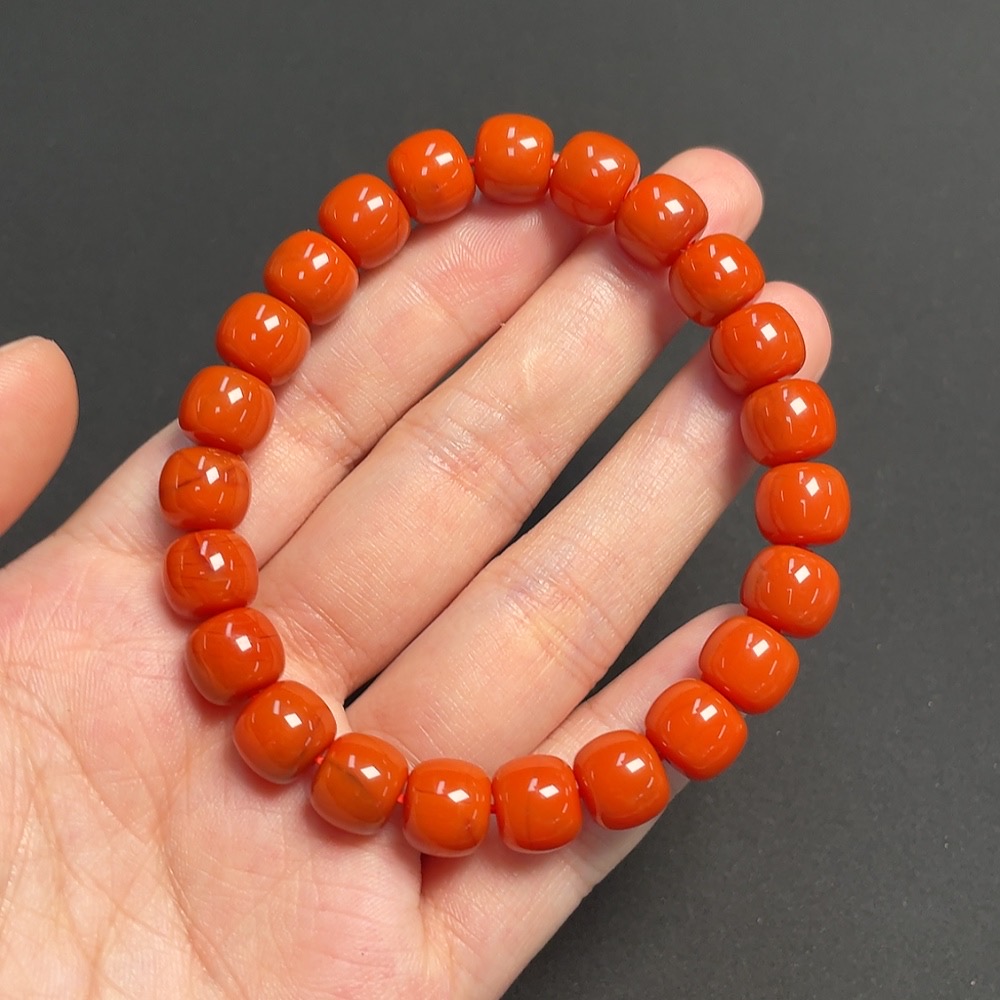 South Red Agate Bracelet, approx. 9.3mm, total weight approx. 27.61g, visible organic matter