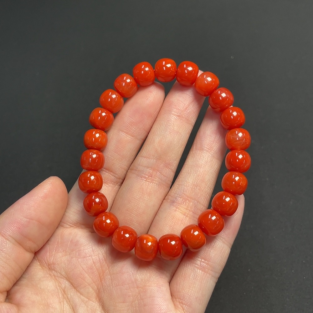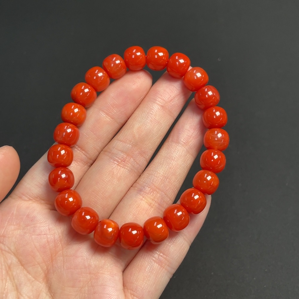 South Red Agate Bracelet, approximately 9.2mm, total weight about 24.34g, visible organic matter