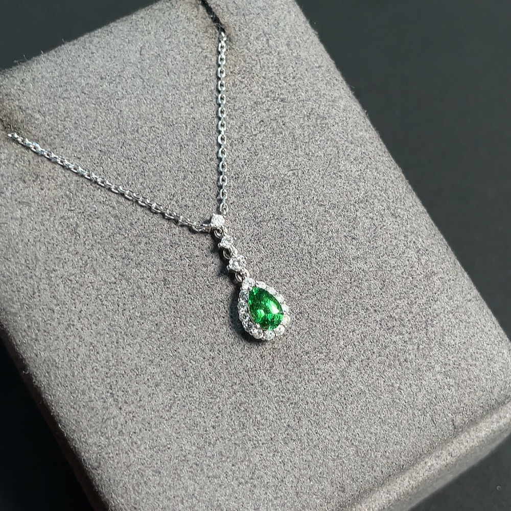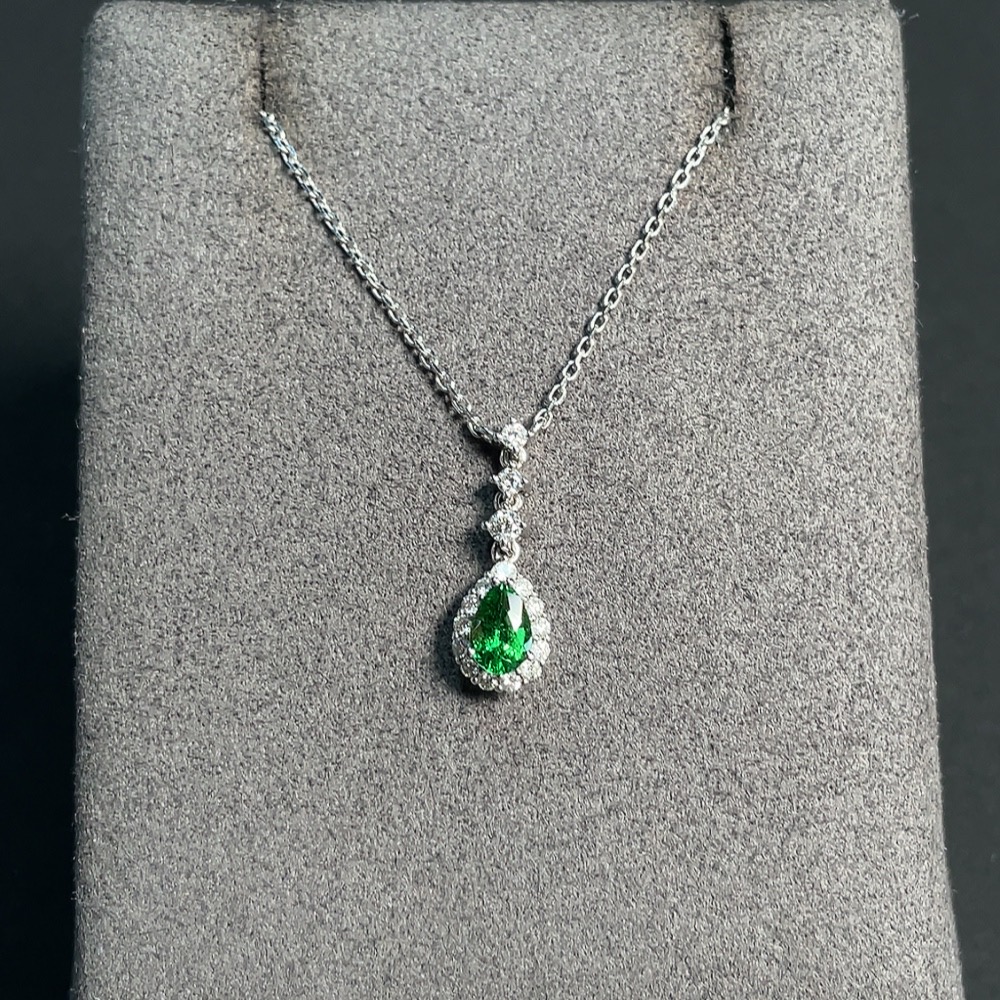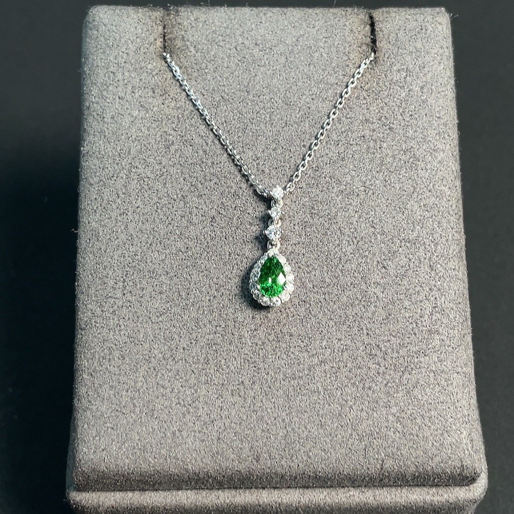 Garnet Inlaid Necklace 18K Gold Product Weight Including Chain Approx. 2.59g with Diamond Accents