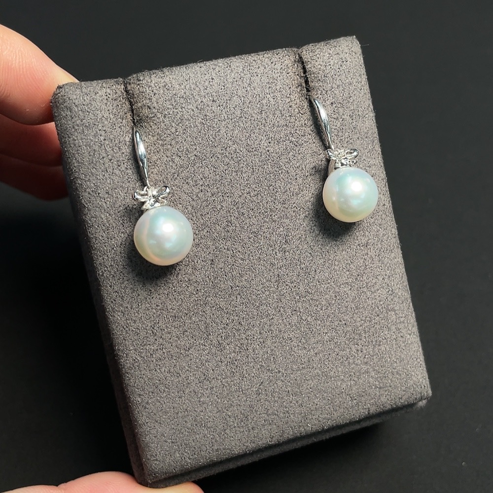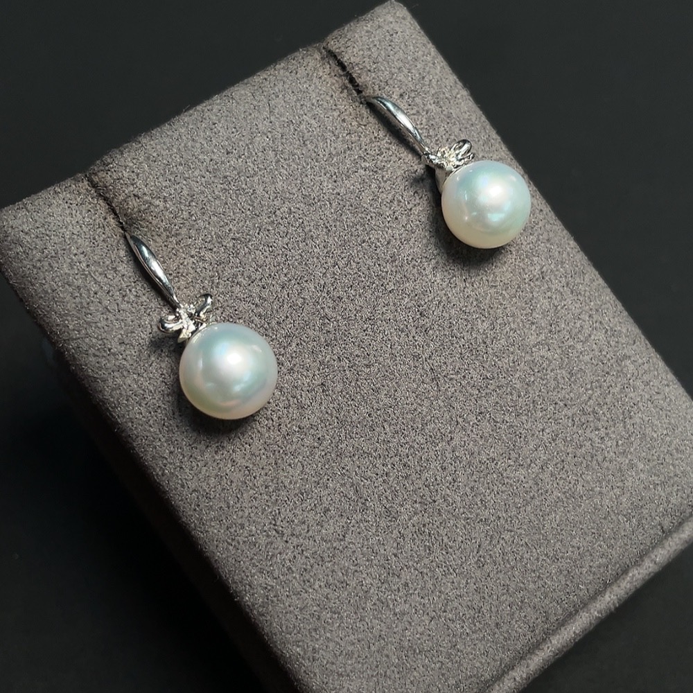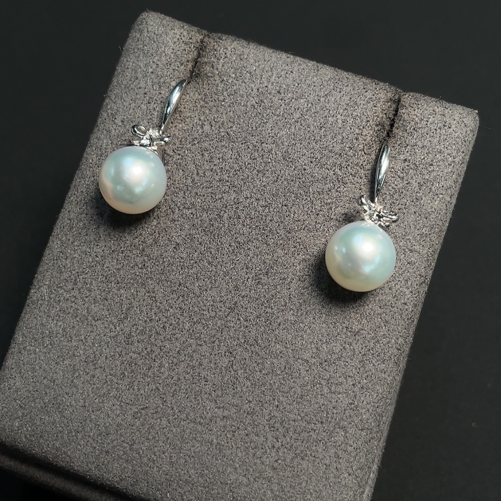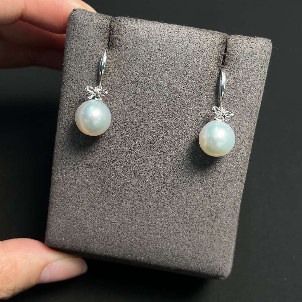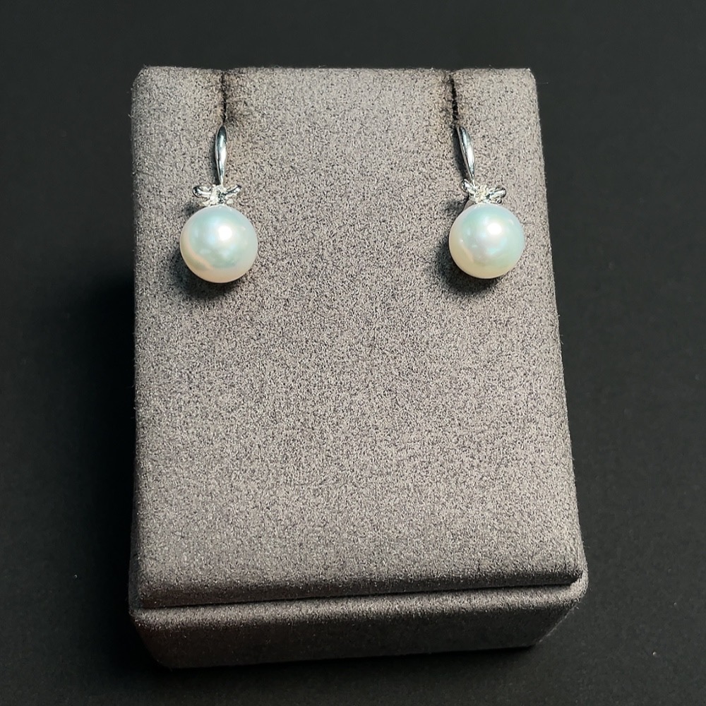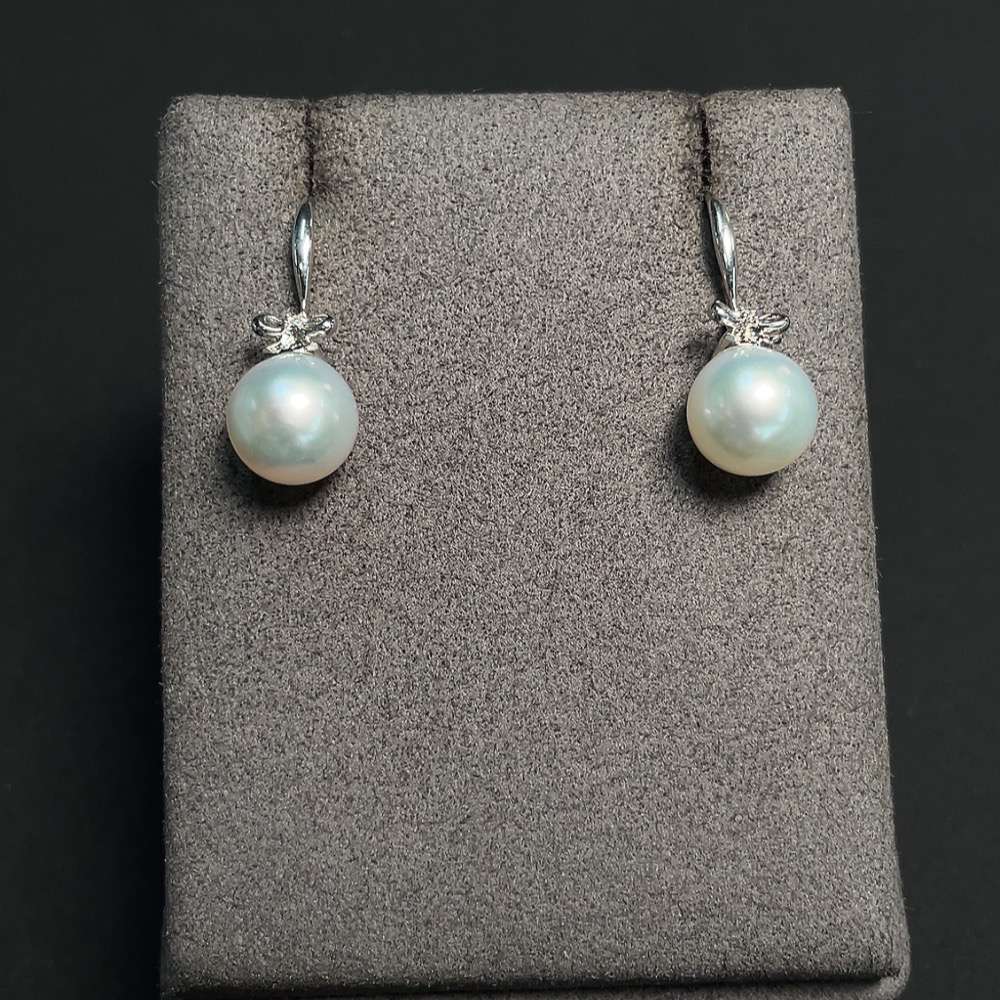 Seawater Pearl Earrings Set in 18K Gold with Diamond Accents, Approx. 9.6mm, Total Weight Approx. 4.12g
