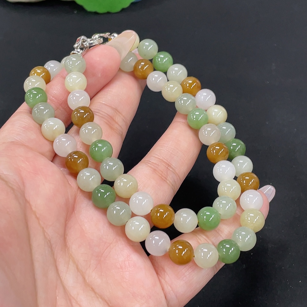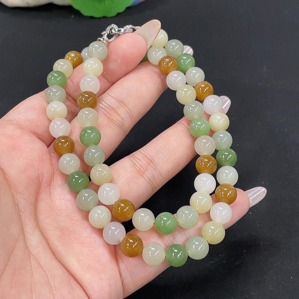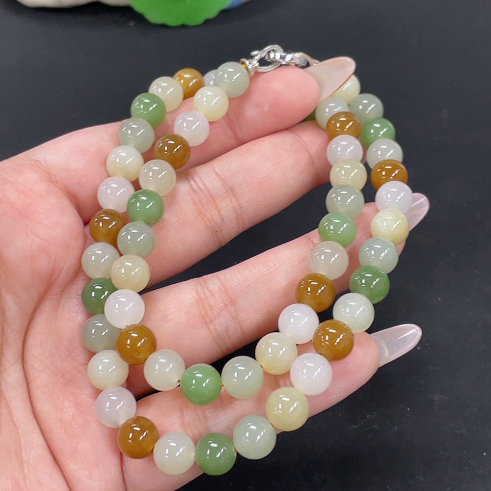 Hetian Jade Bead Necklace Approx. 7.8mm Total Weight Approx. 45.4g Non-Gold