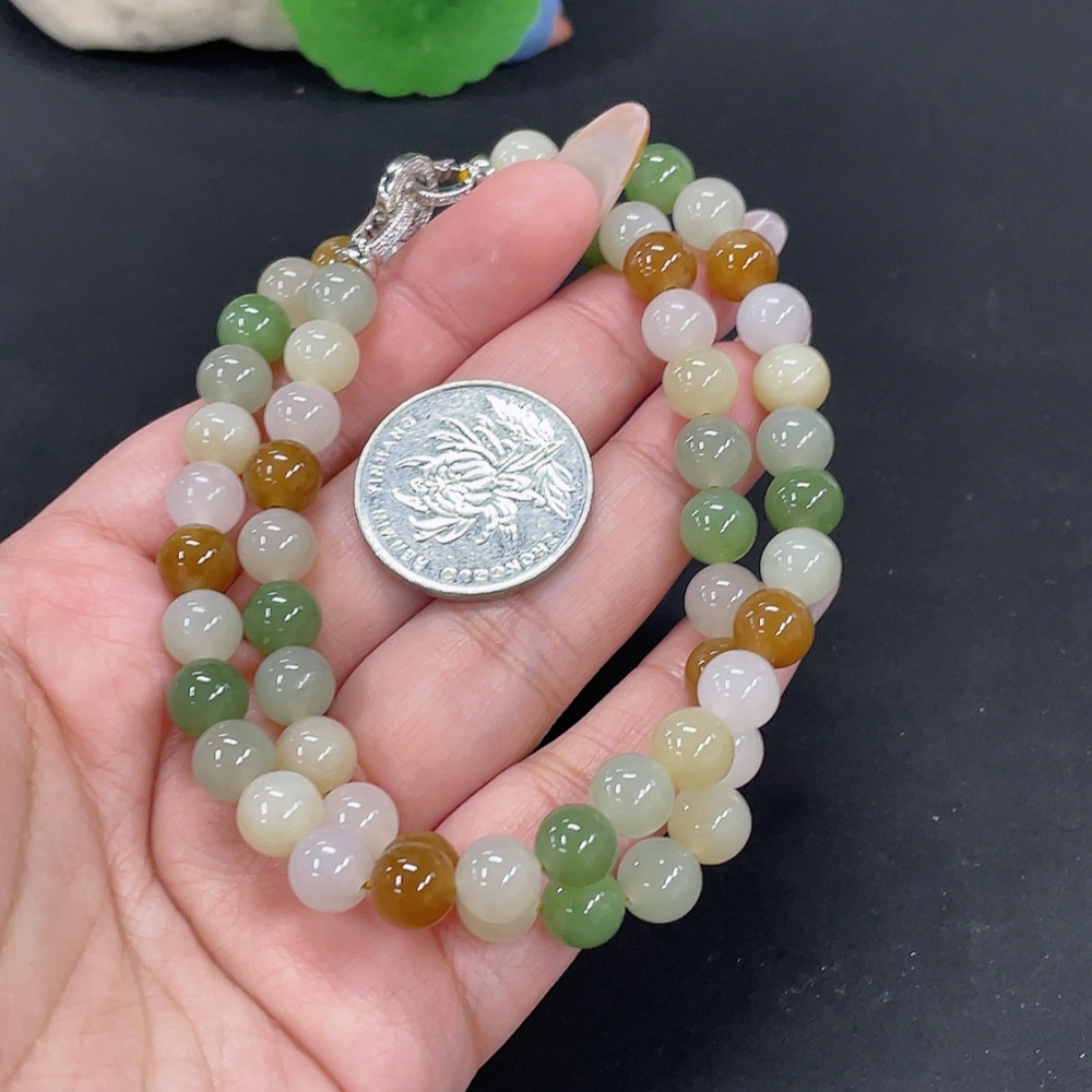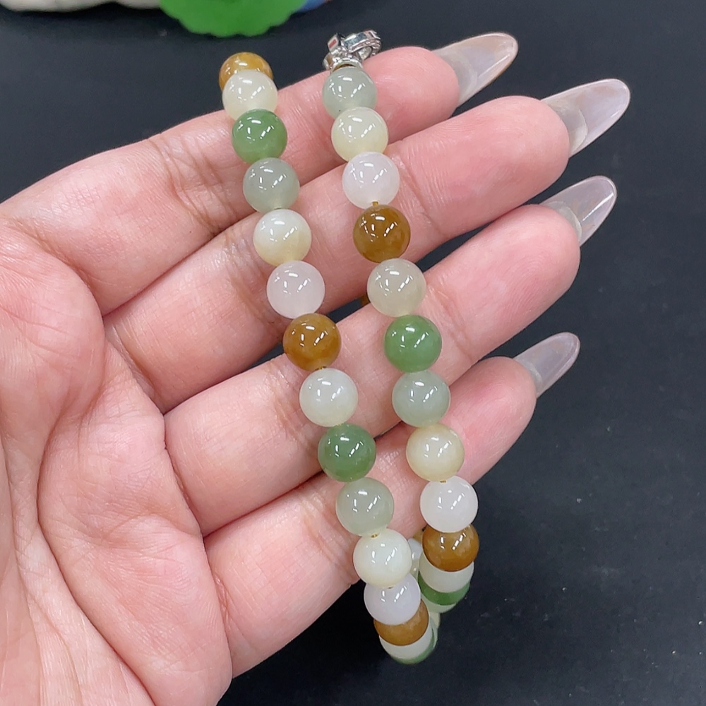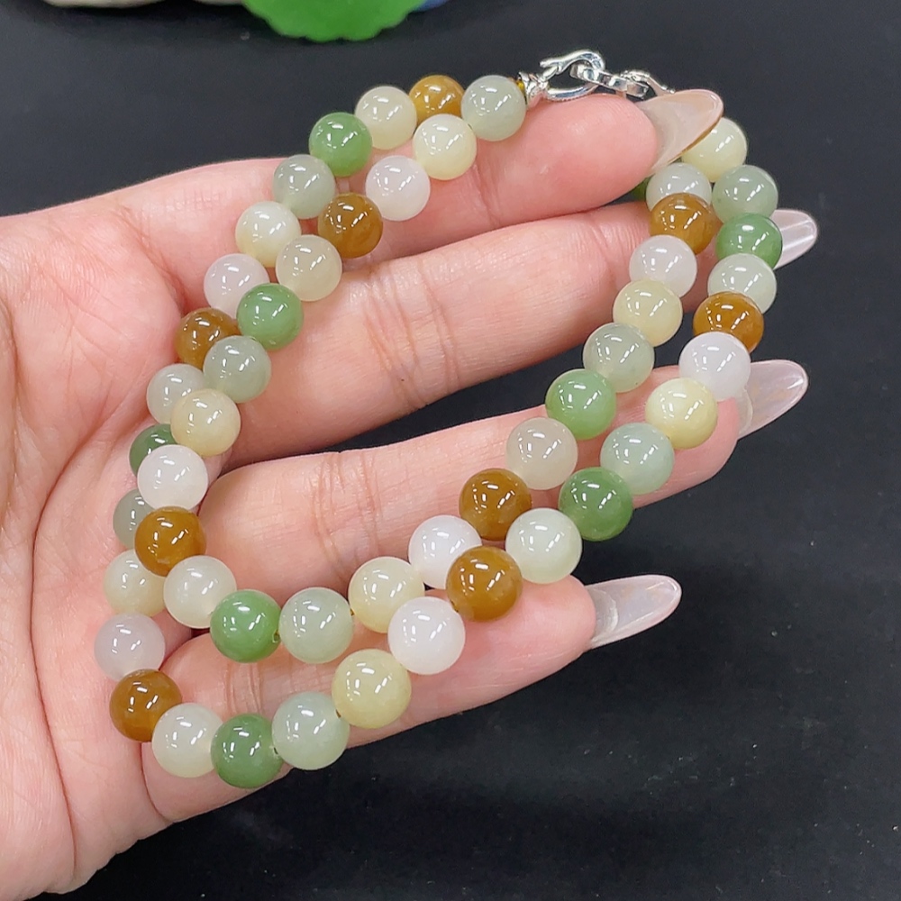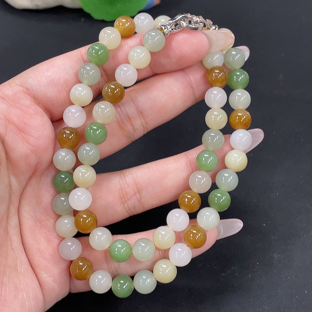 Hetian Jade Bead Necklace Approx. 7.8mm Total Weight Approx. 45.4g Non-Gold
