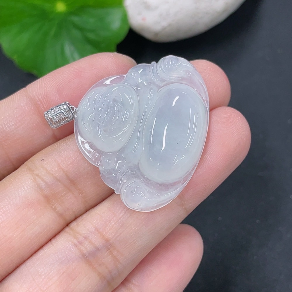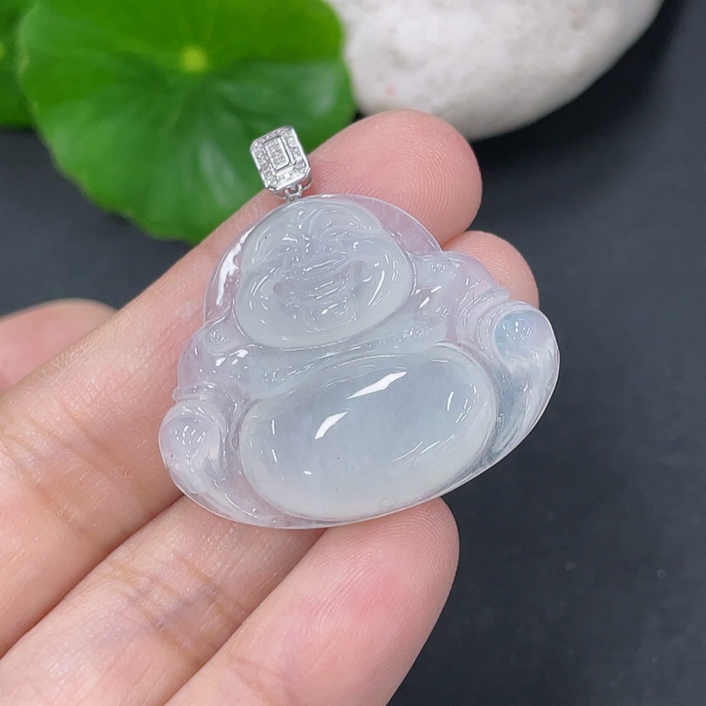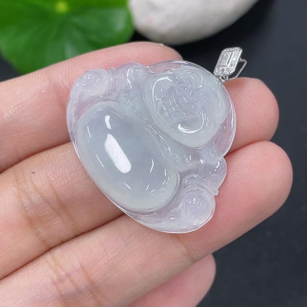Jadeite Pendant Buddha with 18K Gold and Diamond Accents, Total Weight Approx. 7.04g