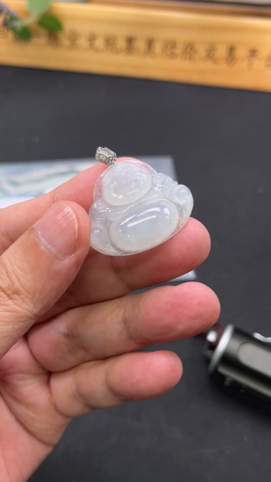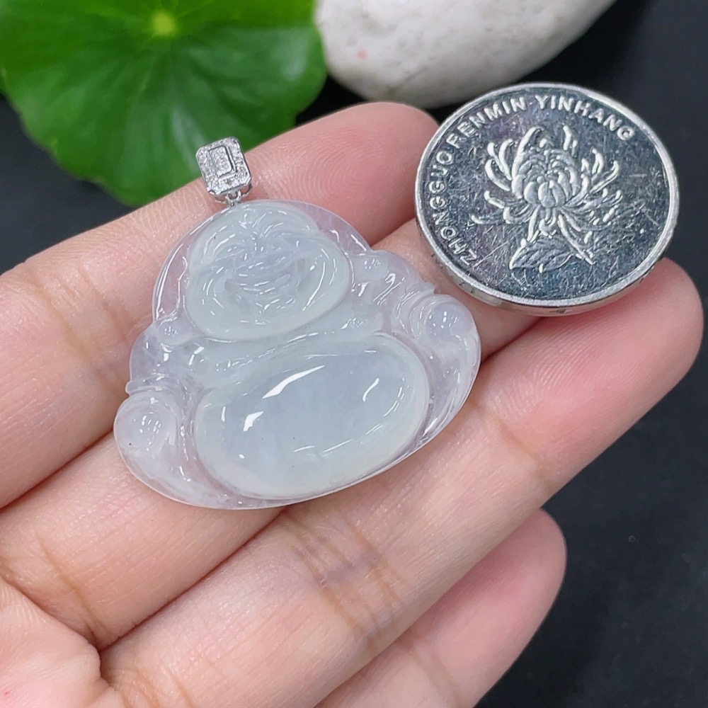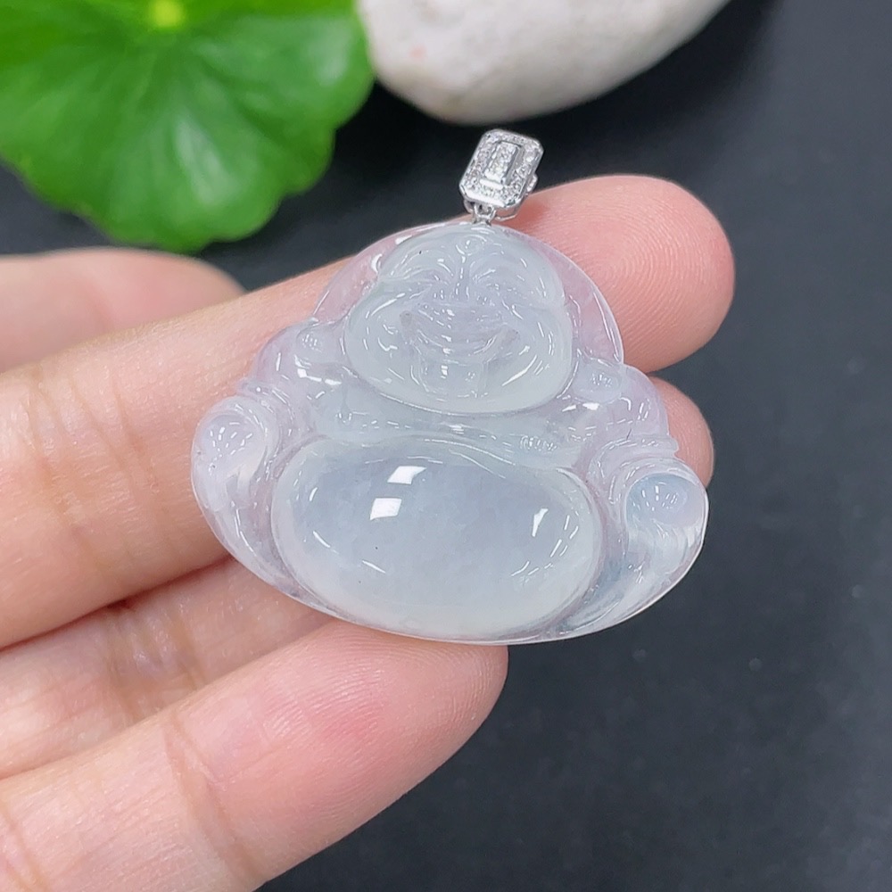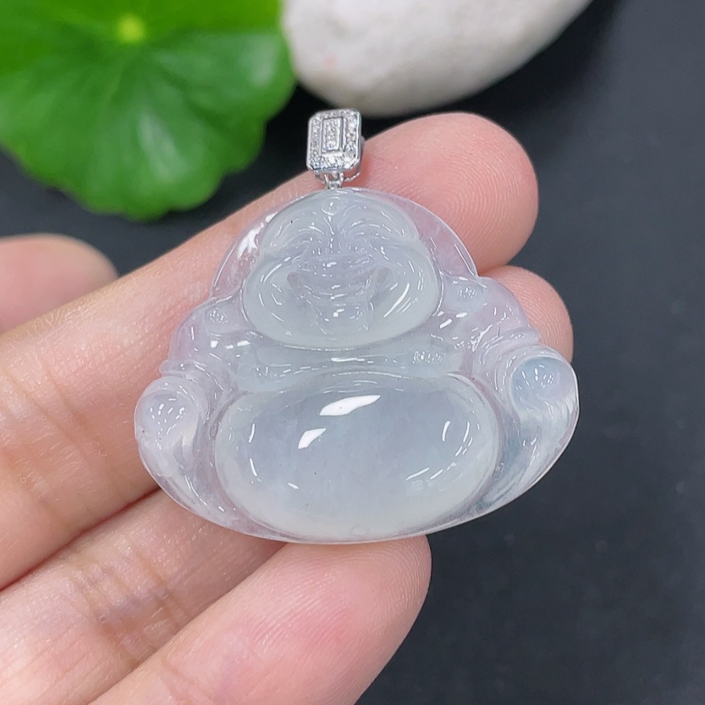 Jadeite Pendant Buddha with 18K Gold and Diamond Accents, Total Weight Approx. 7.04g