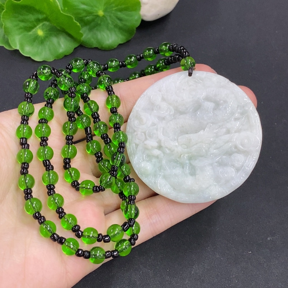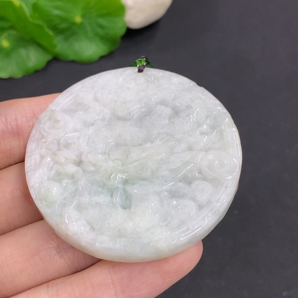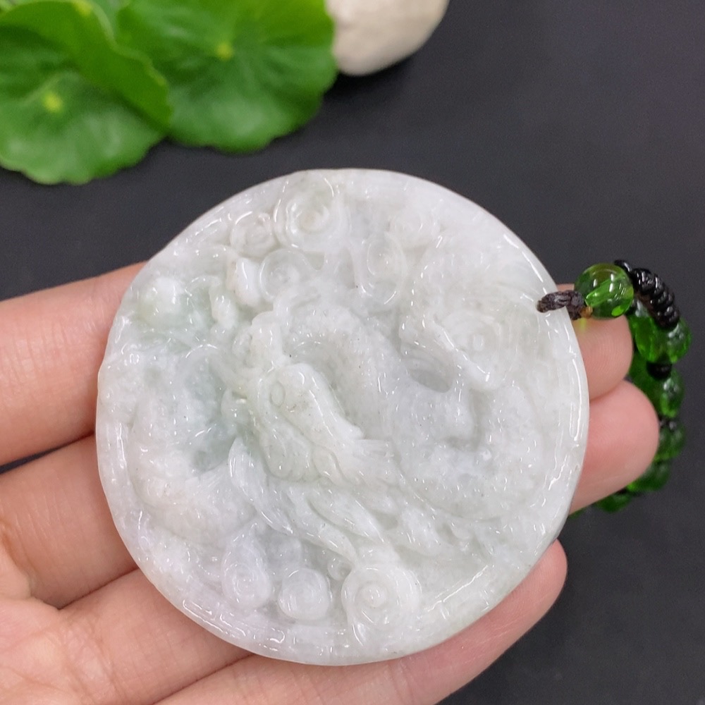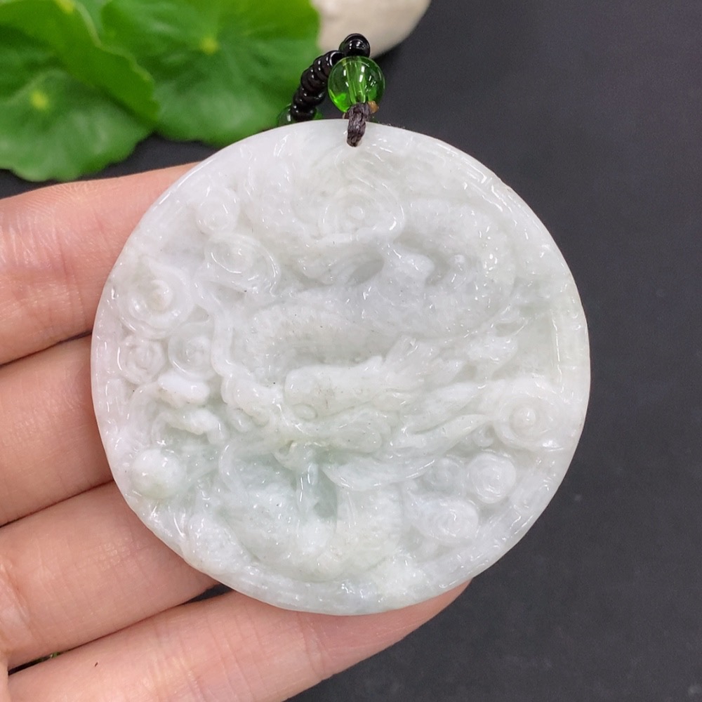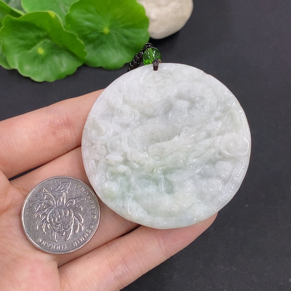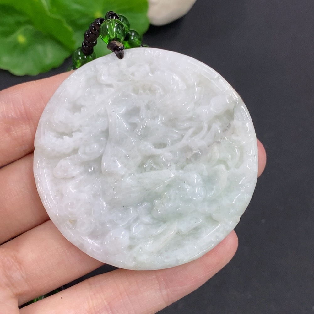 Jadeite Dragon and Phoenix Auspicious Pendant
