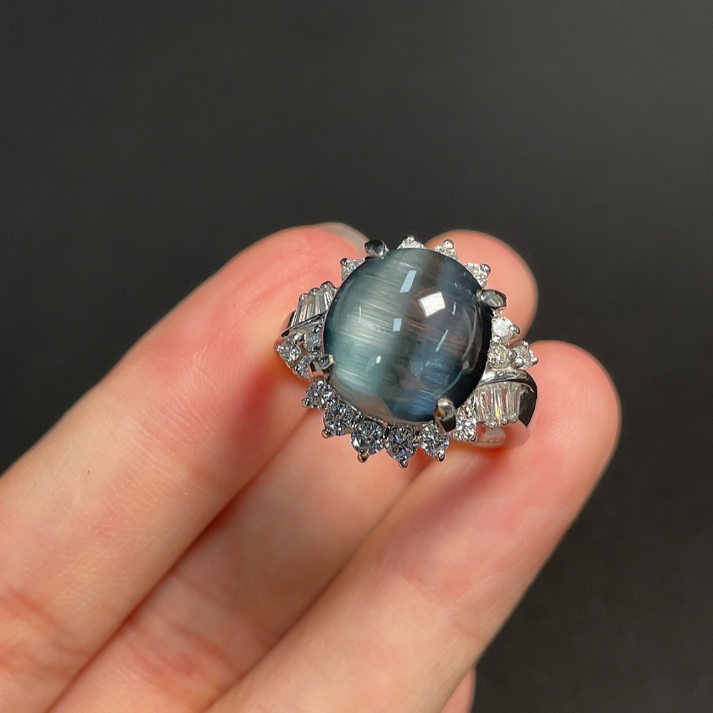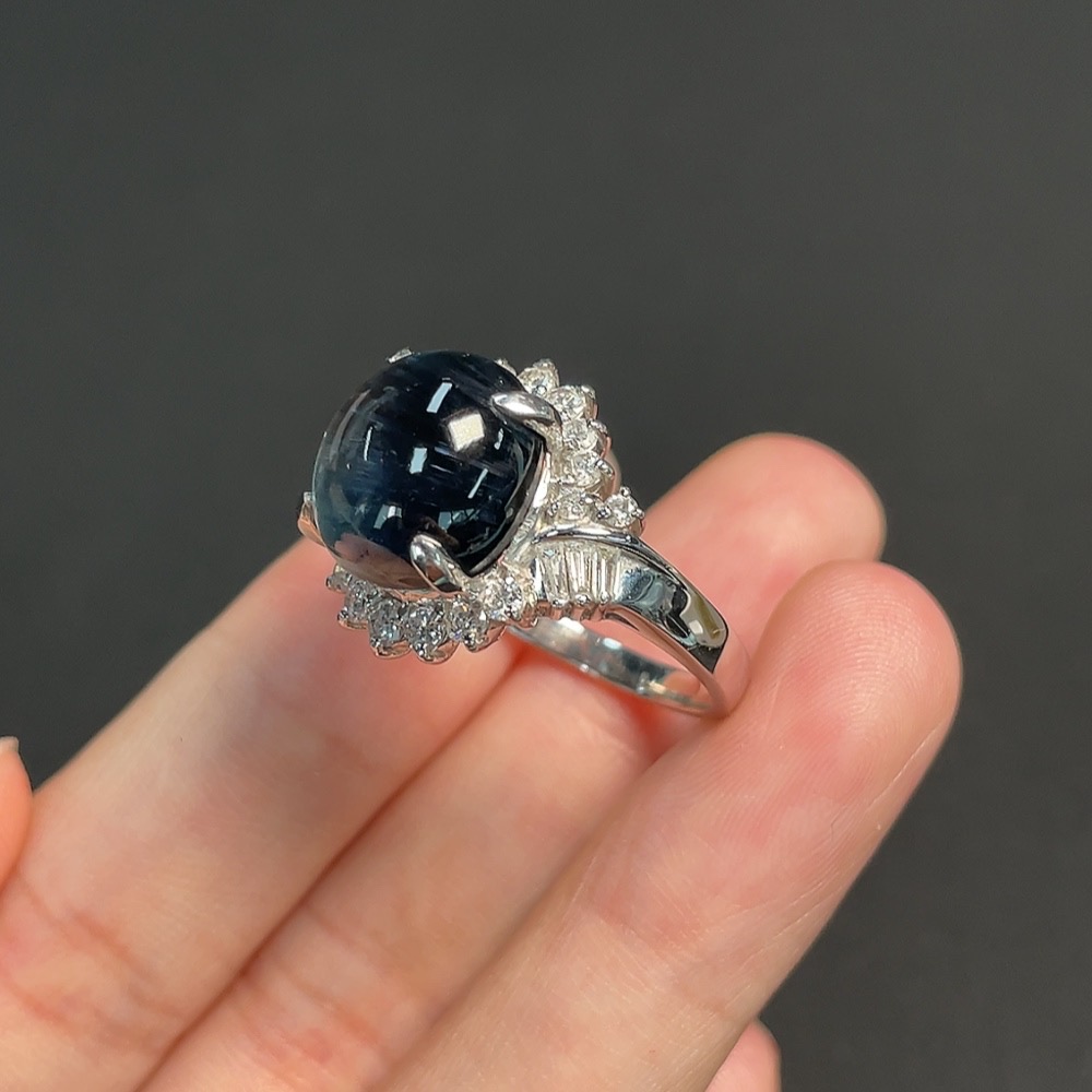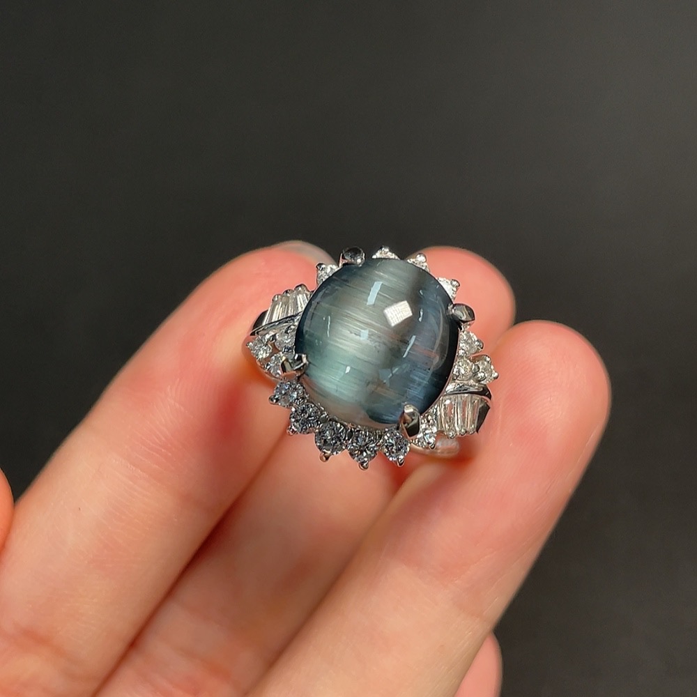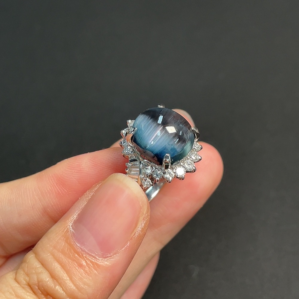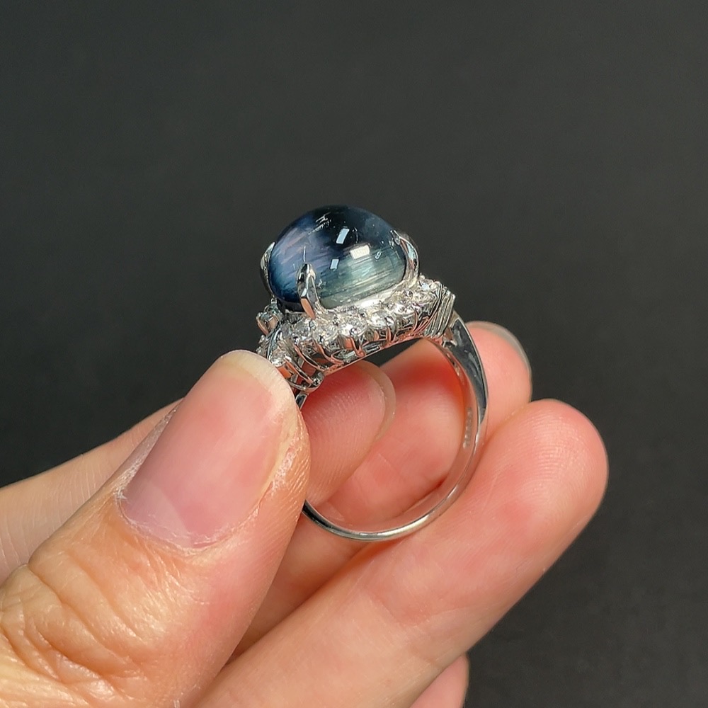 Tourmaline Inlaid Ring Pt90% Size 18 Total Weight Approx. 11.66g Visible Organic Material Diamond Accents