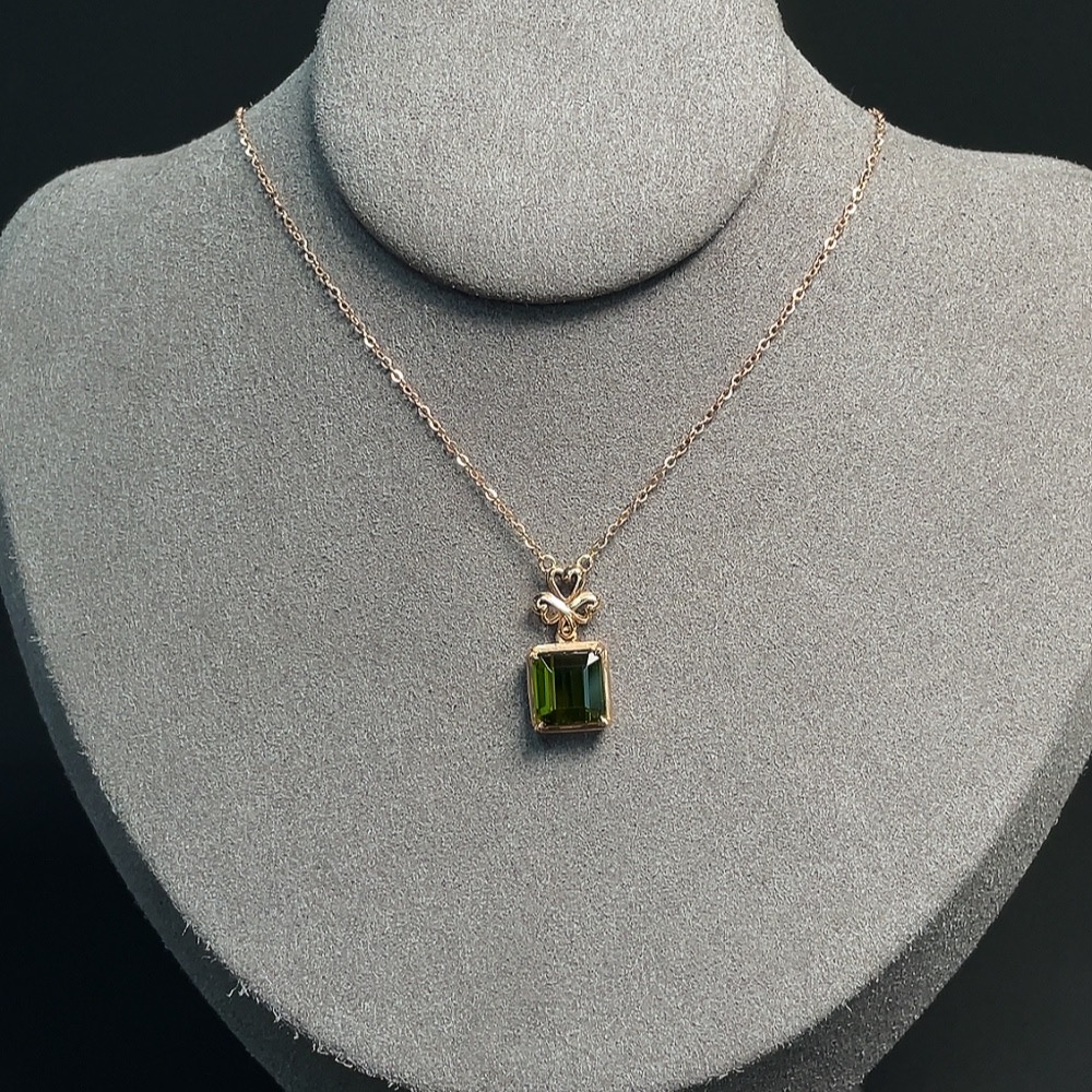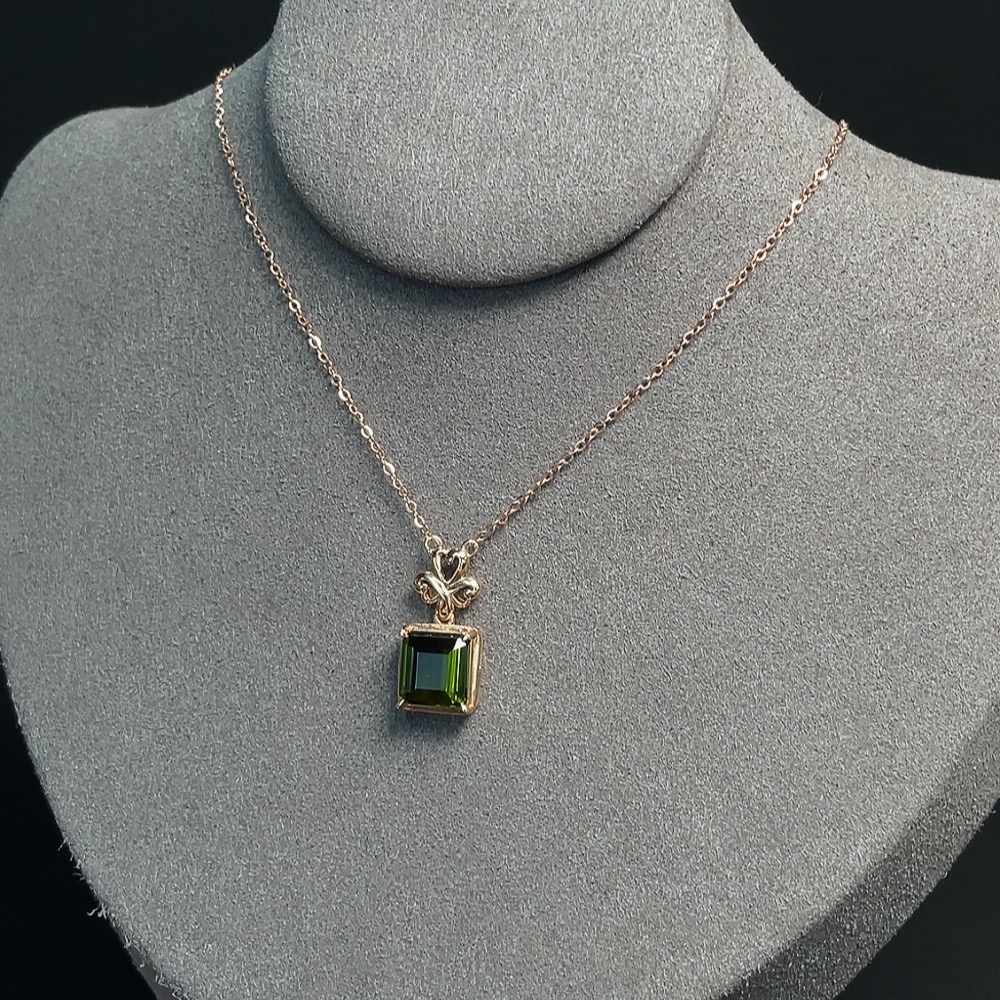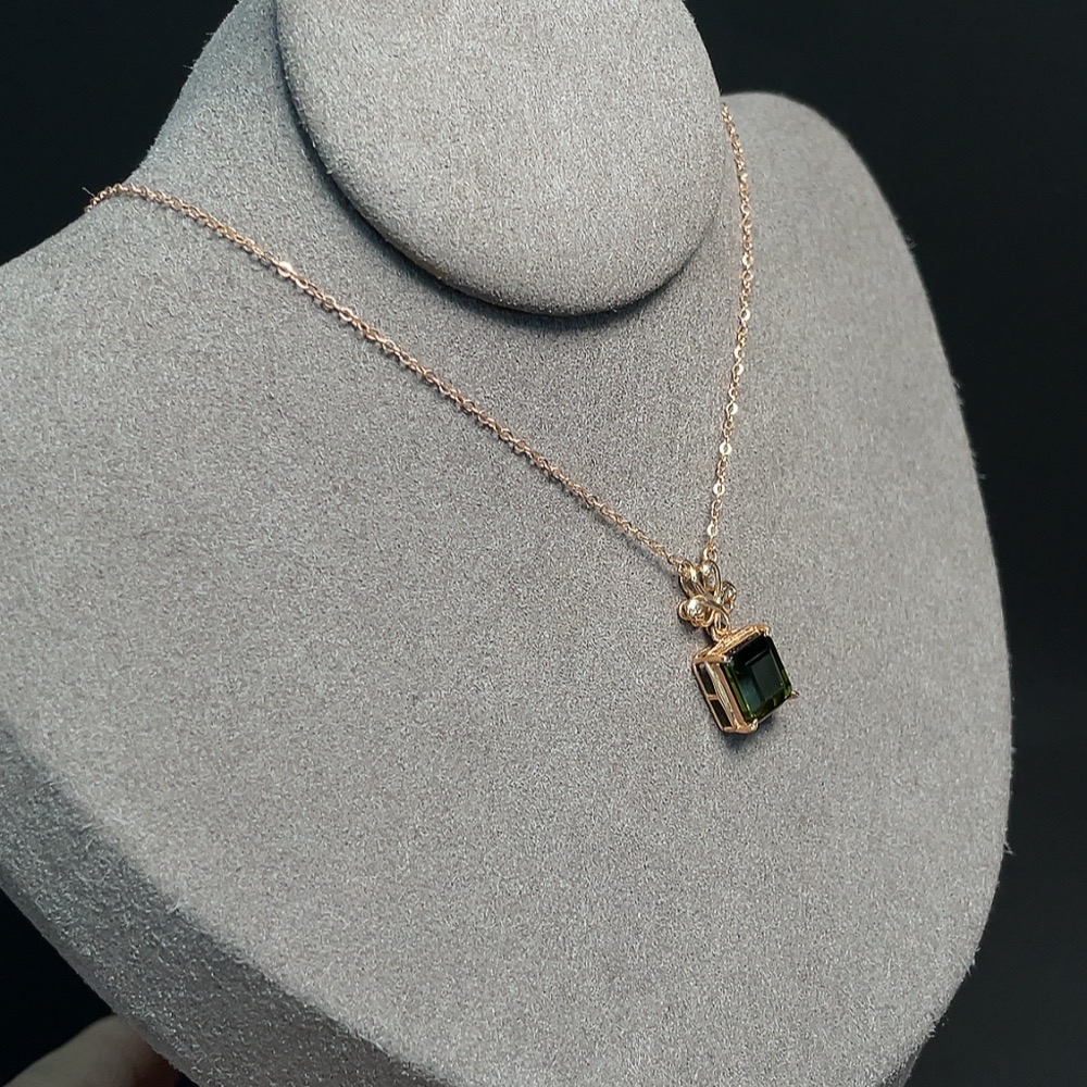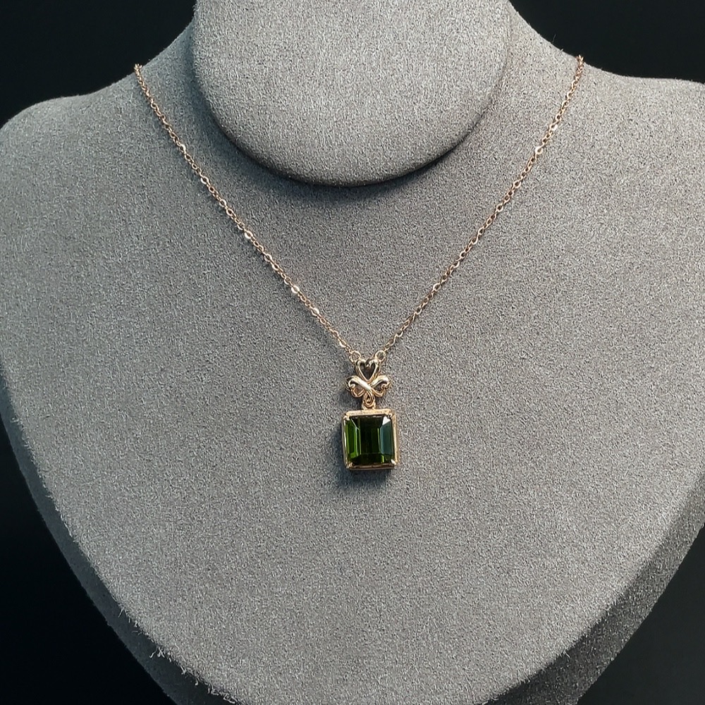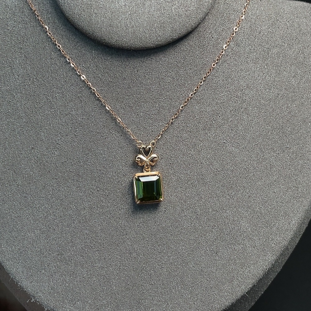 Tourmaline Inlaid Necklace (Suspected Gold-Plated in Marked Red Areas, 18k Gold for the Rest, Total Weight Including Chain Approximately 2.60g)