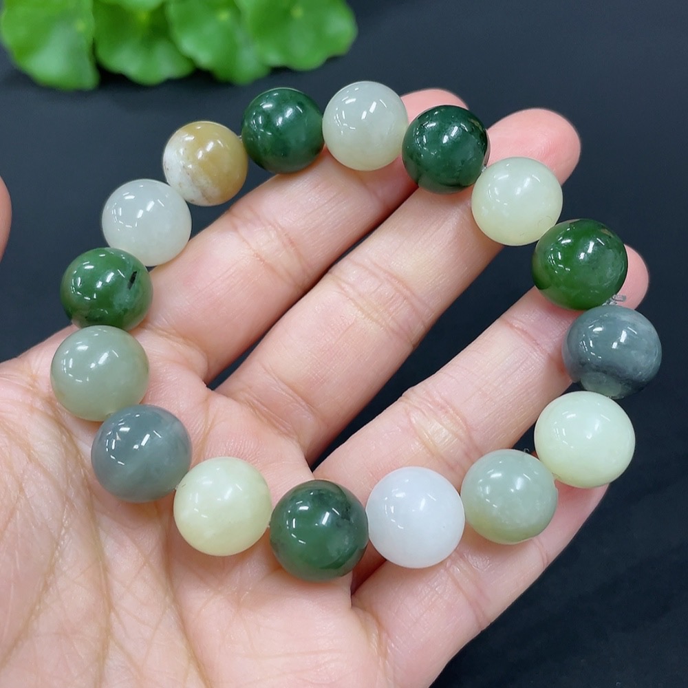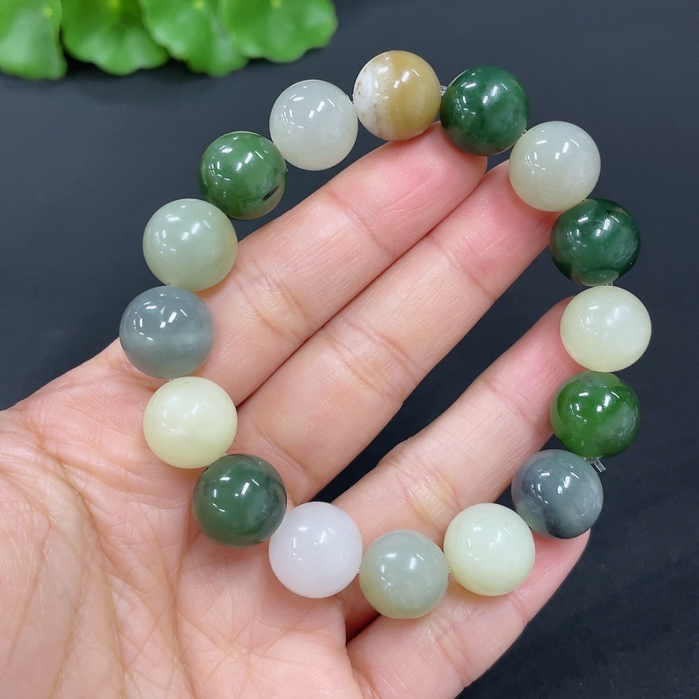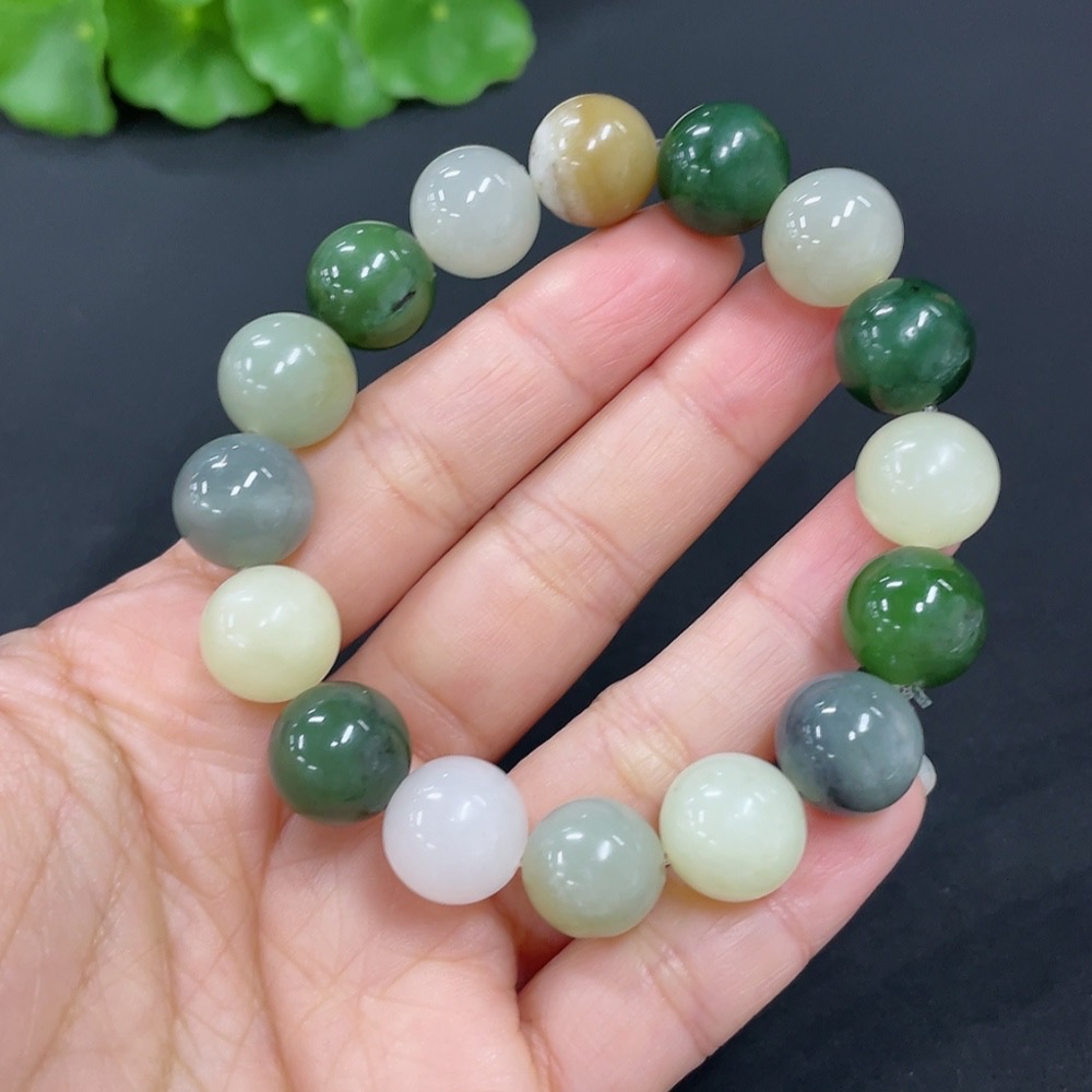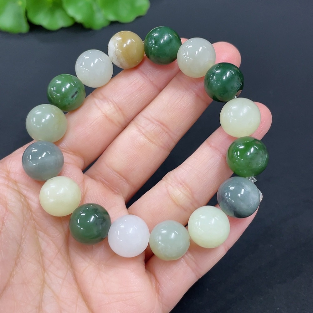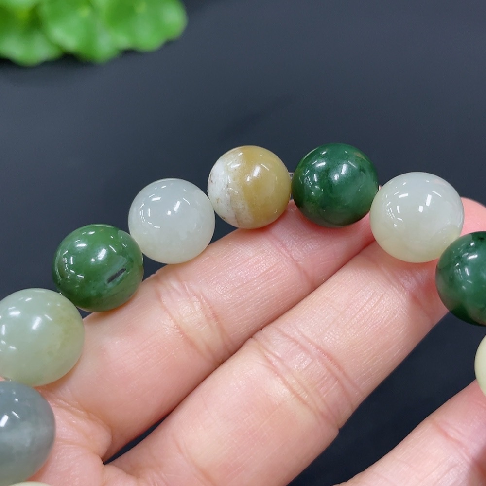 Hetian Jade Bracelet, approx. 11.6mm, total weight approx. 41.9g, contains other mineral components, accompanying beads not Hetian Jade