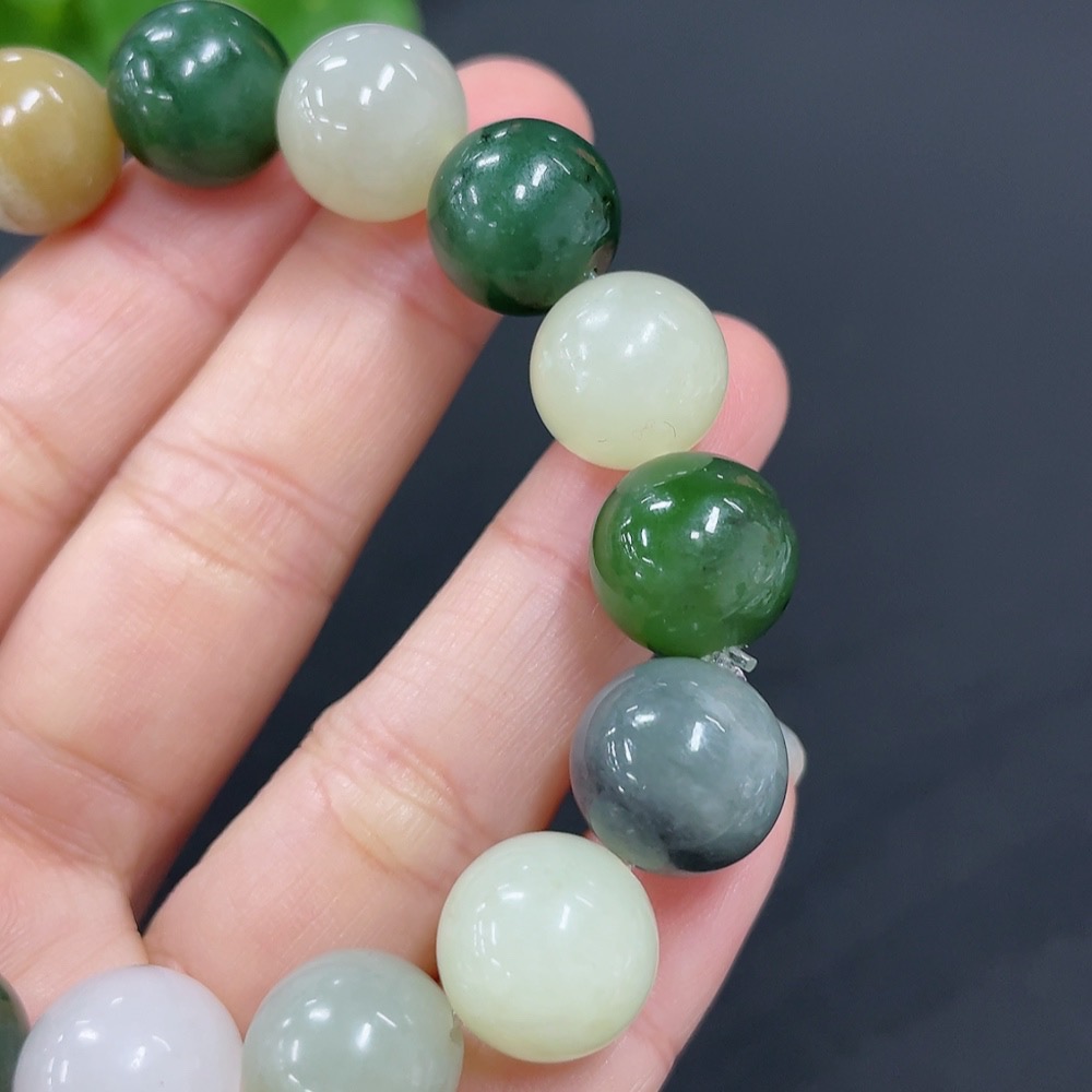 Trezaar - Hetian Jade Bracelet, approx. 11.6mm, total weight approx. 41.9g, contains other mineral components, accompanying beads not Hetian Jade