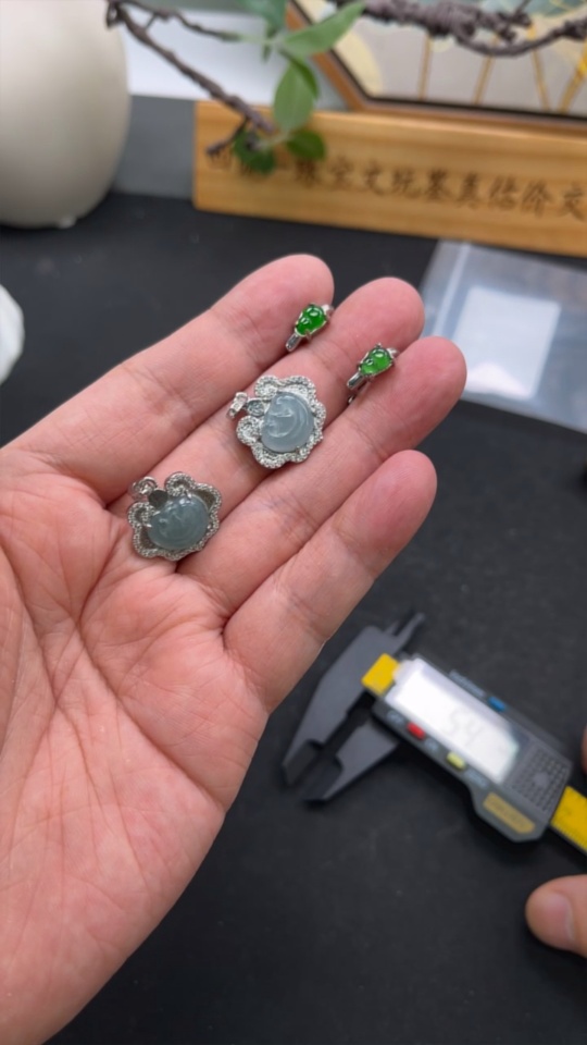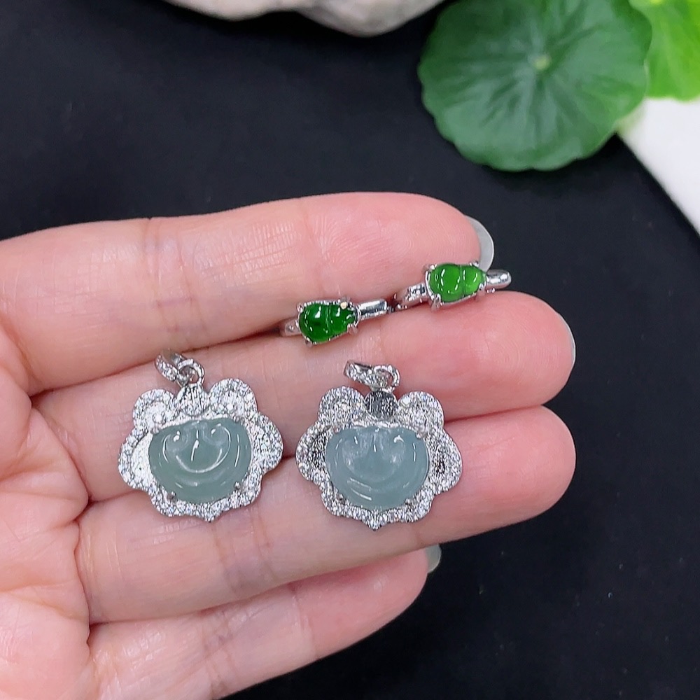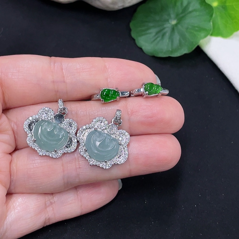 Jadeite Inlaid Earrings + Pendant Sell as a Lot (Non-Gold Inlaid) (Adjustable)