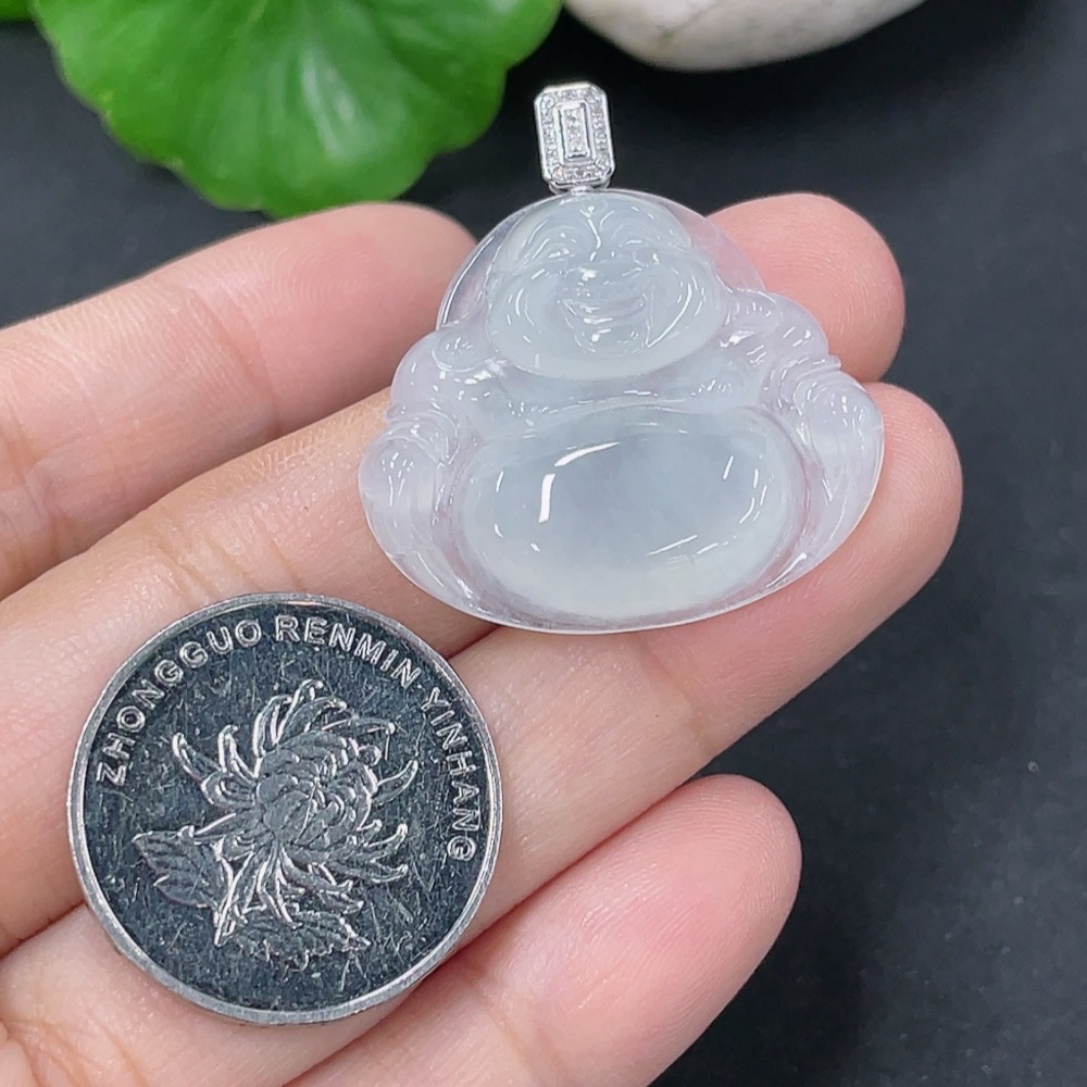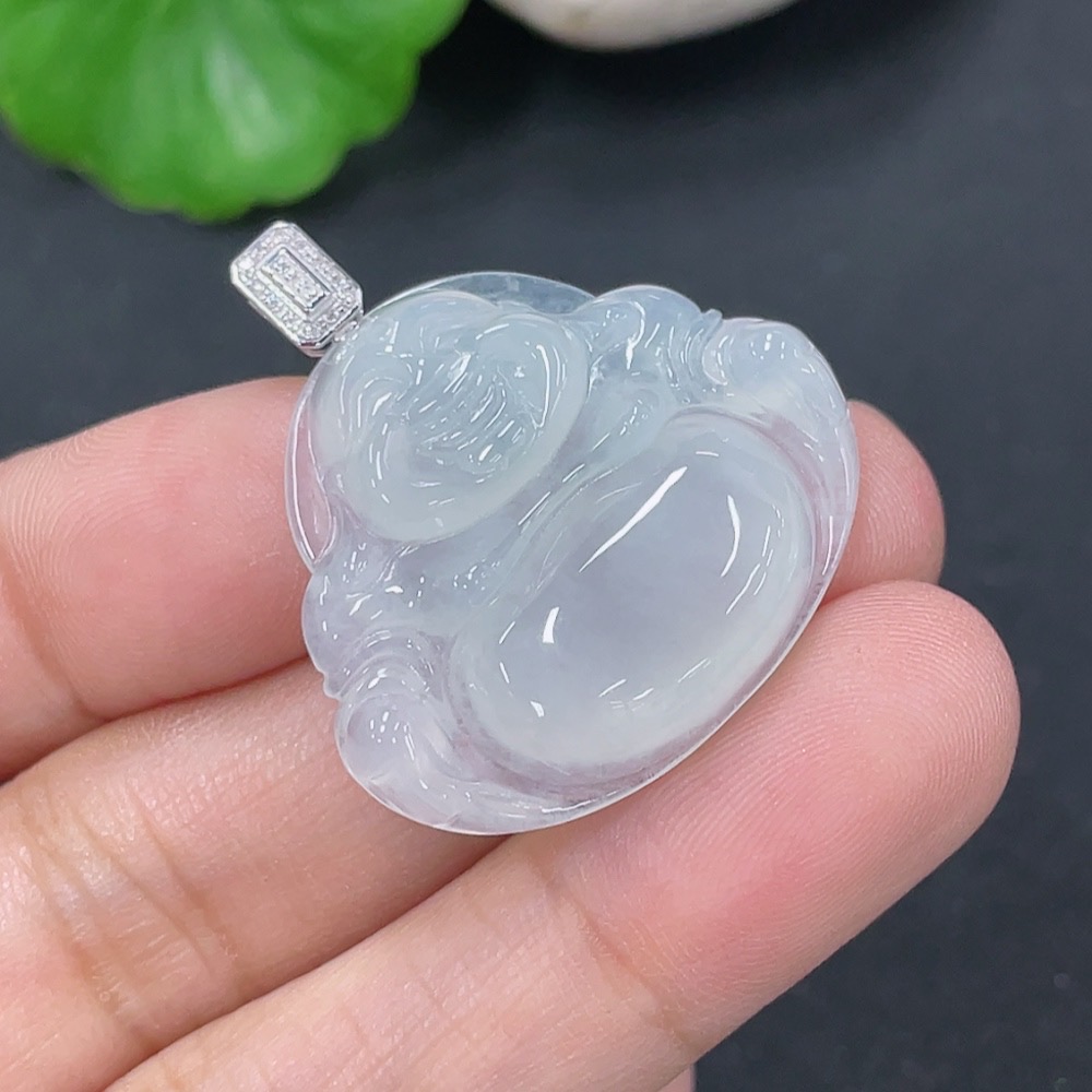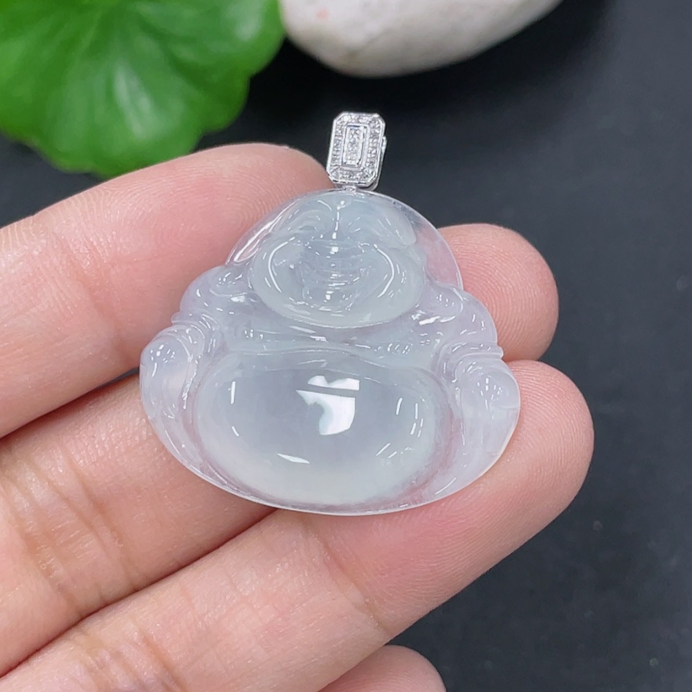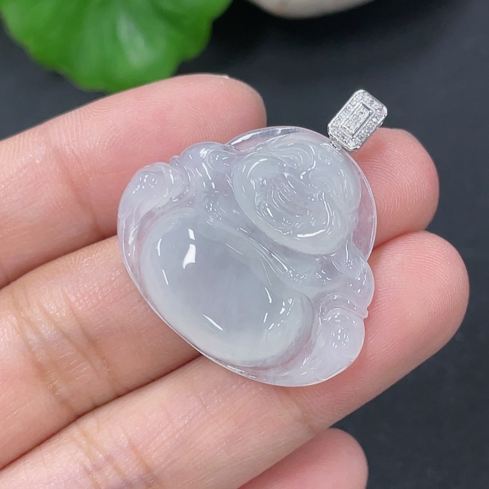 Jadeite Pendant Buddha with 18k Gold and Diamond Accents, Total Weight Approx. 5.55g