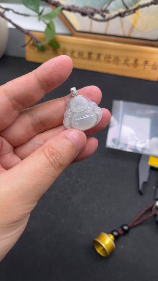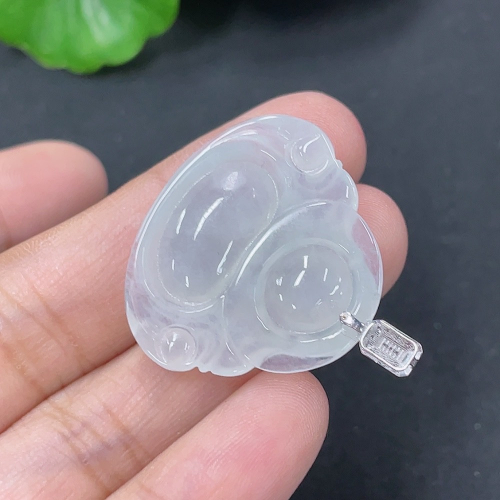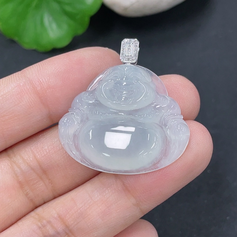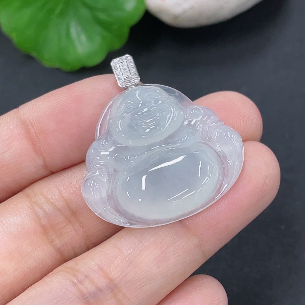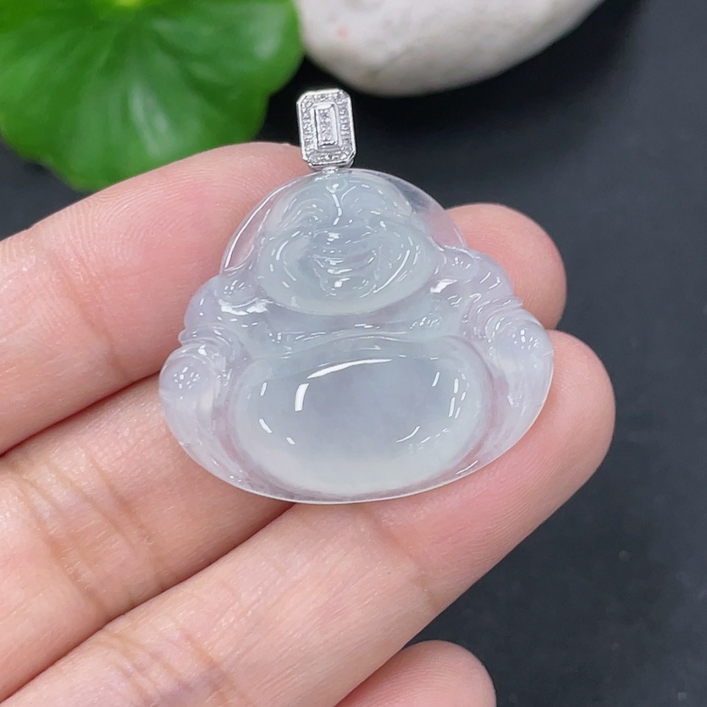 Jadeite Pendant Buddha with 18k Gold and Diamond Accents, Total Weight Approx. 5.55g