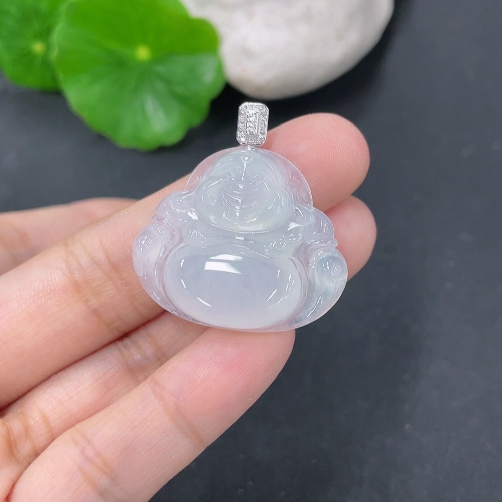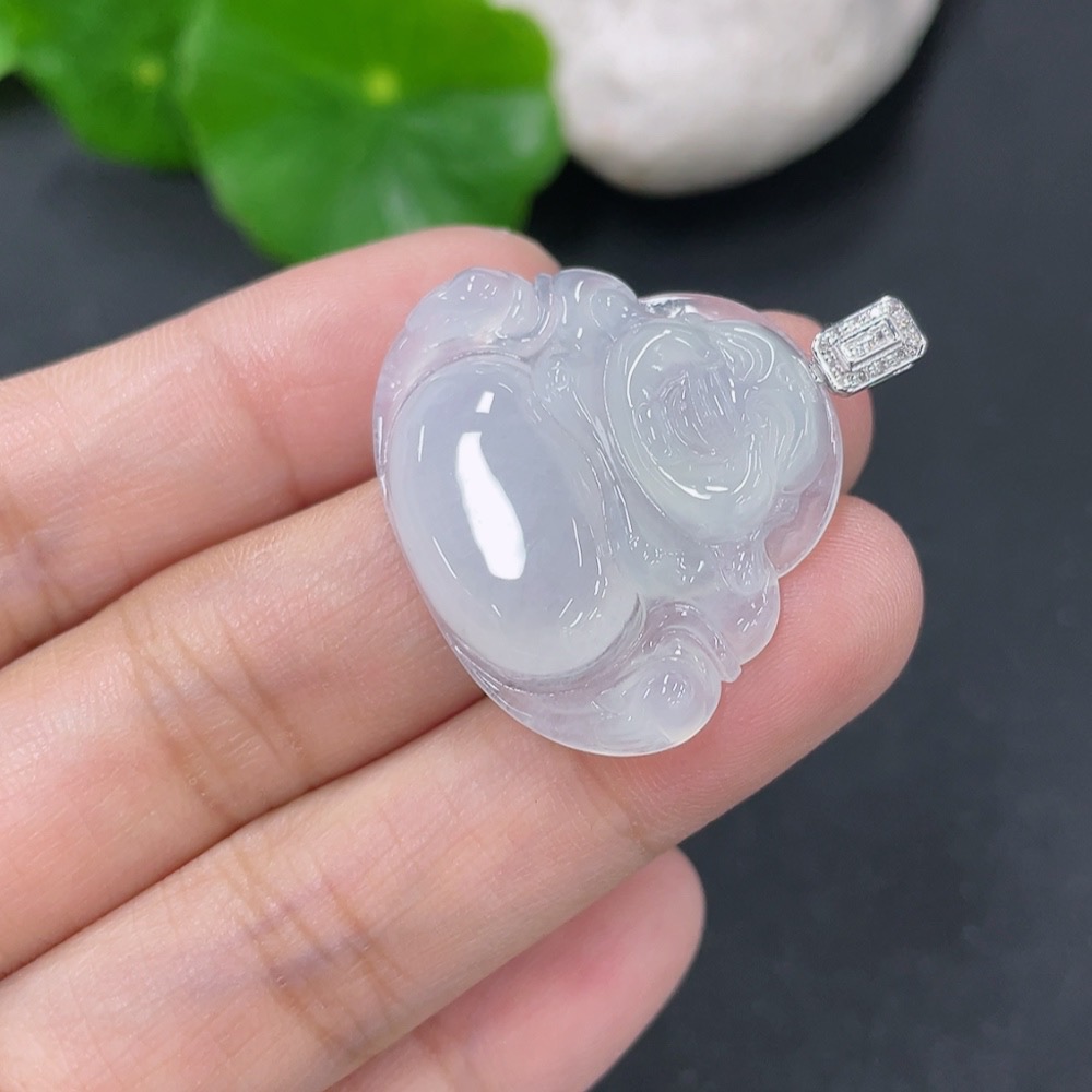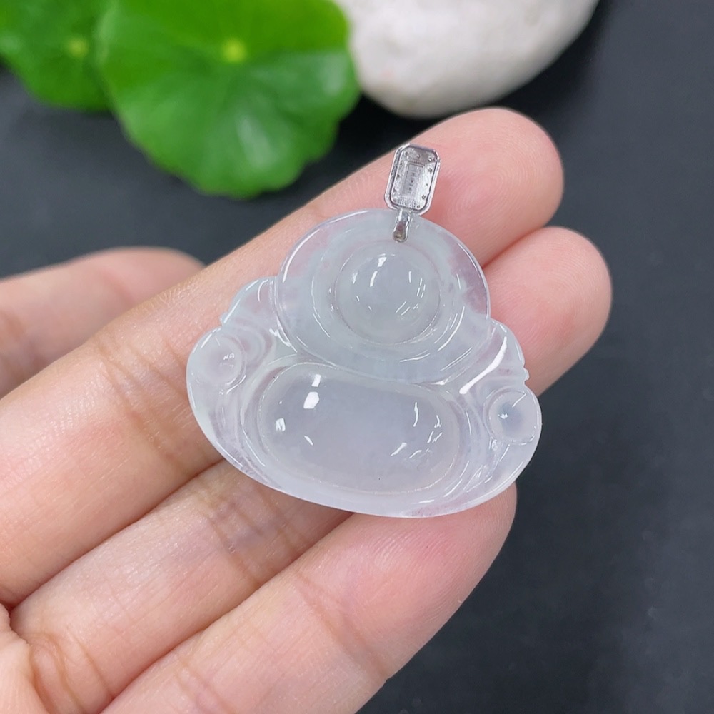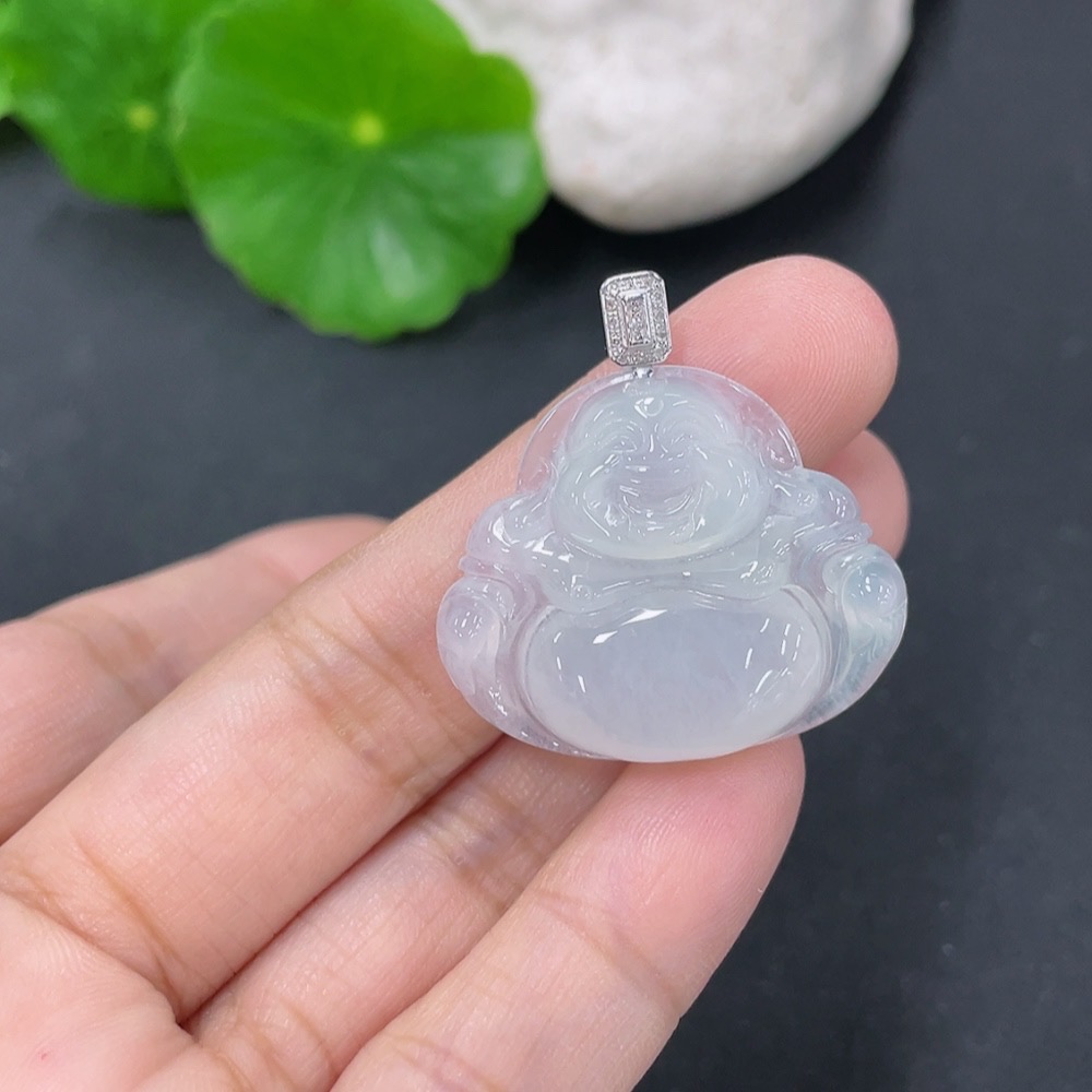 Jadeite Pendant Buddha with 18k Gold and Diamond Accents, Total Weight Approximately 5.9g