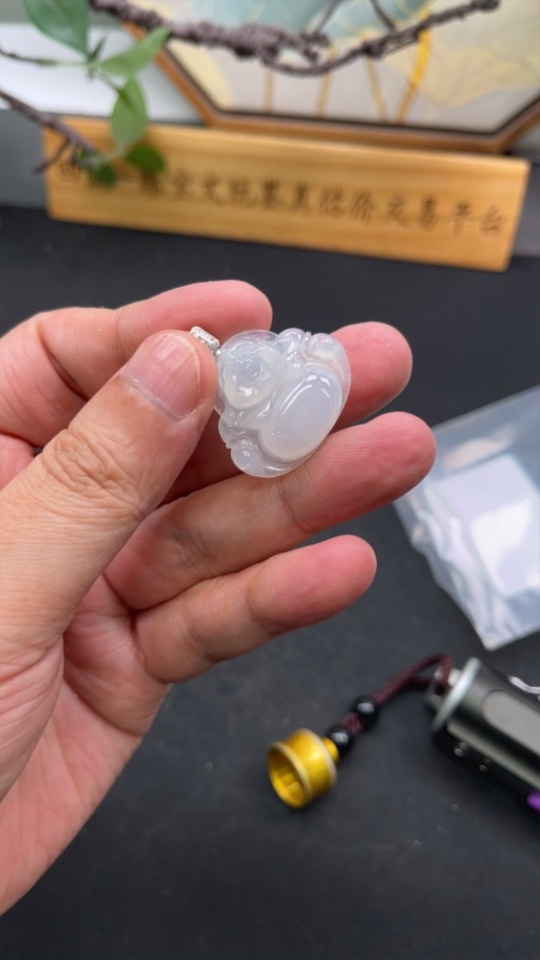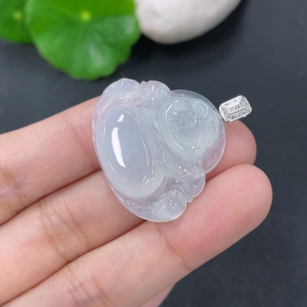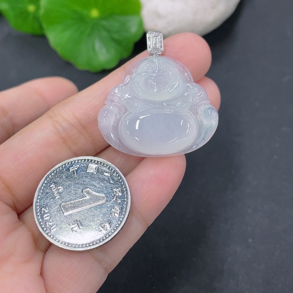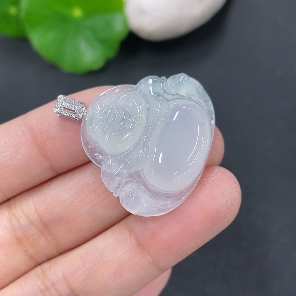 Jadeite Pendant Buddha with 18k Gold and Diamond Accents, Total Weight Approximately 5.9g