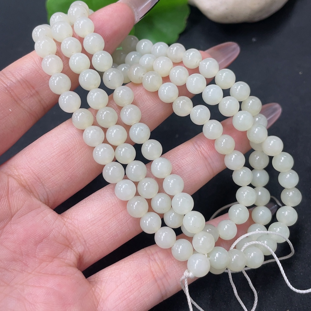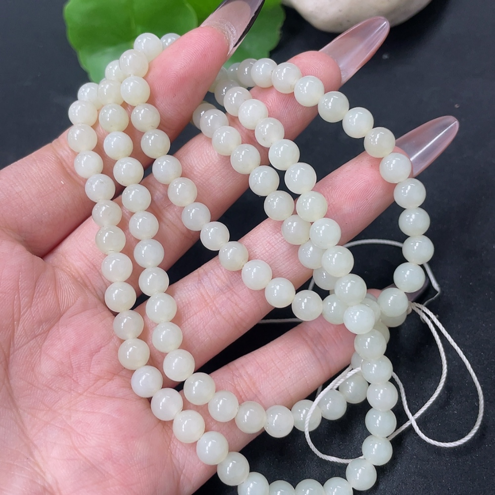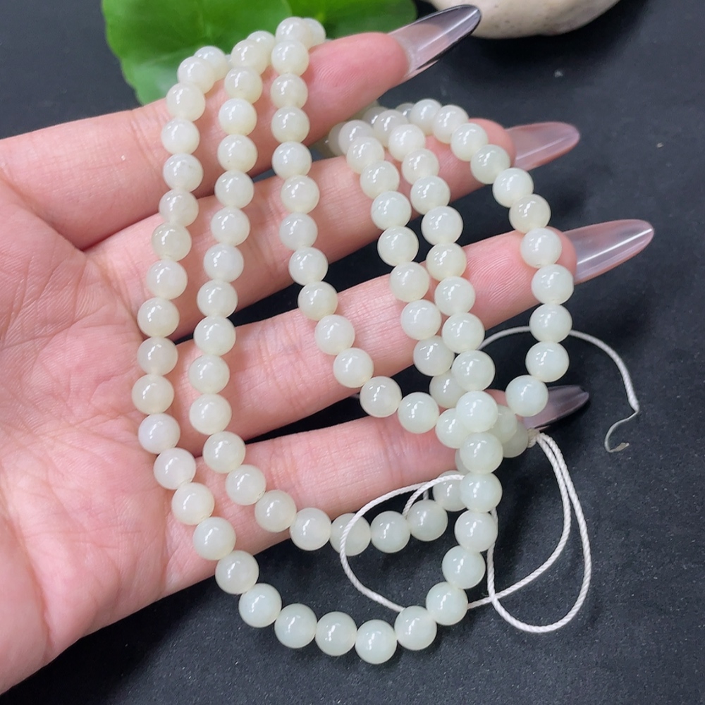 Hetian Jade Bead Necklace Approx. 5.8mm Total Weight Approx. 35.9g
