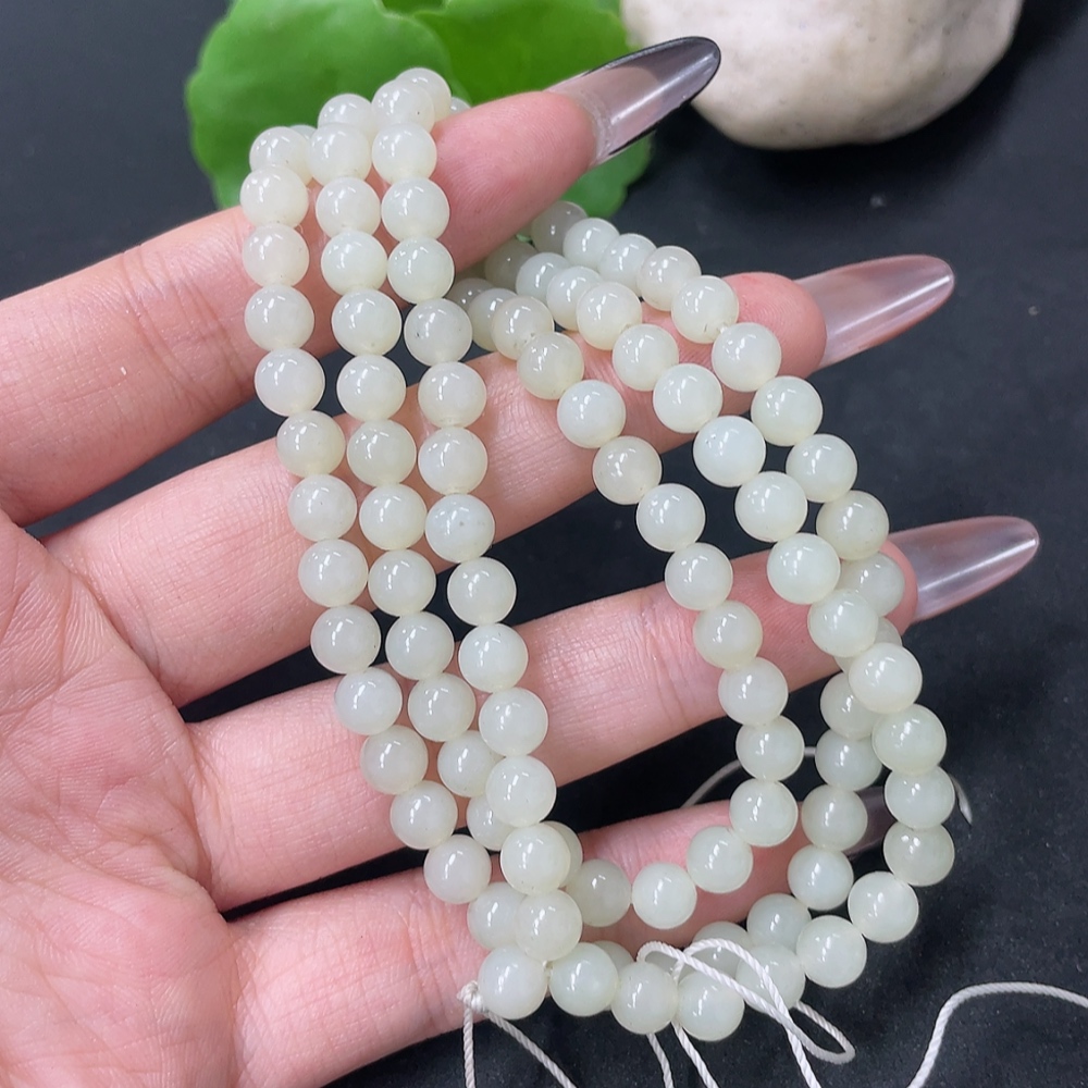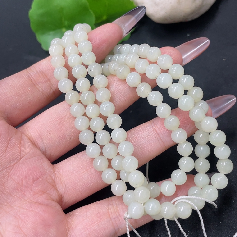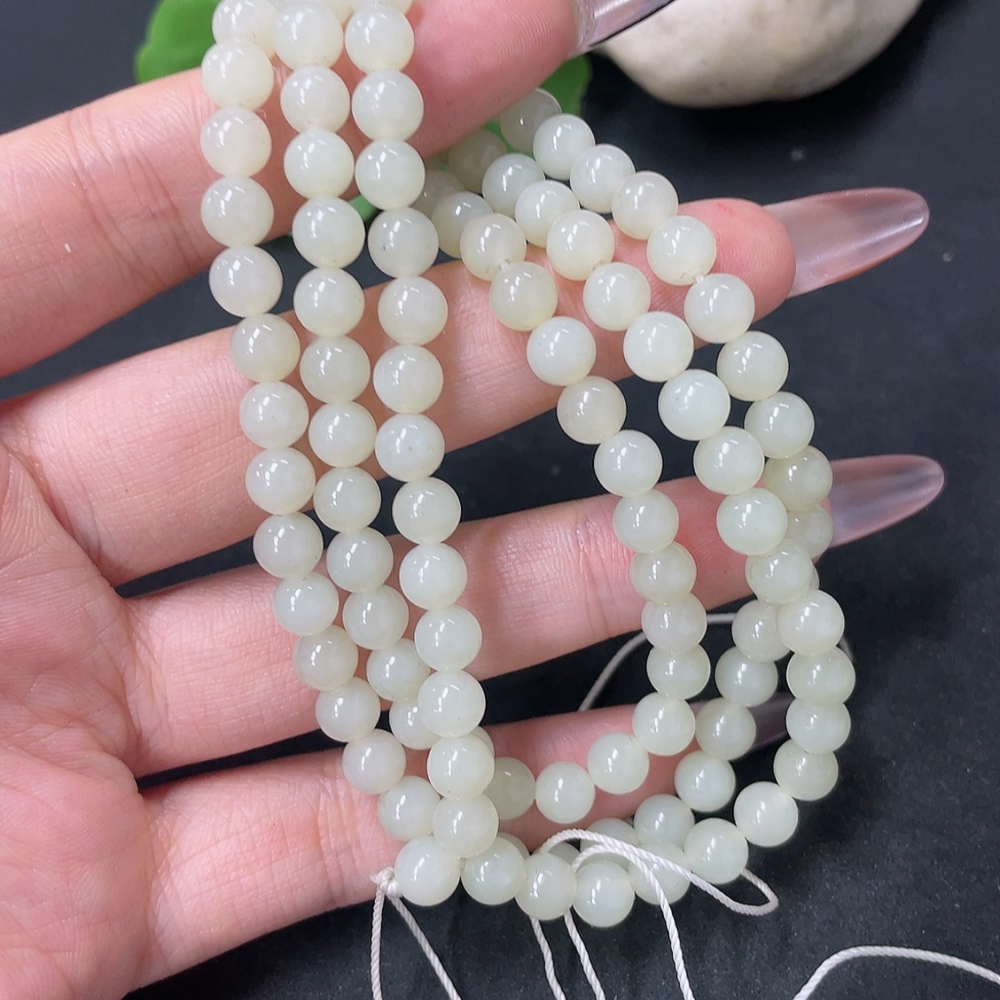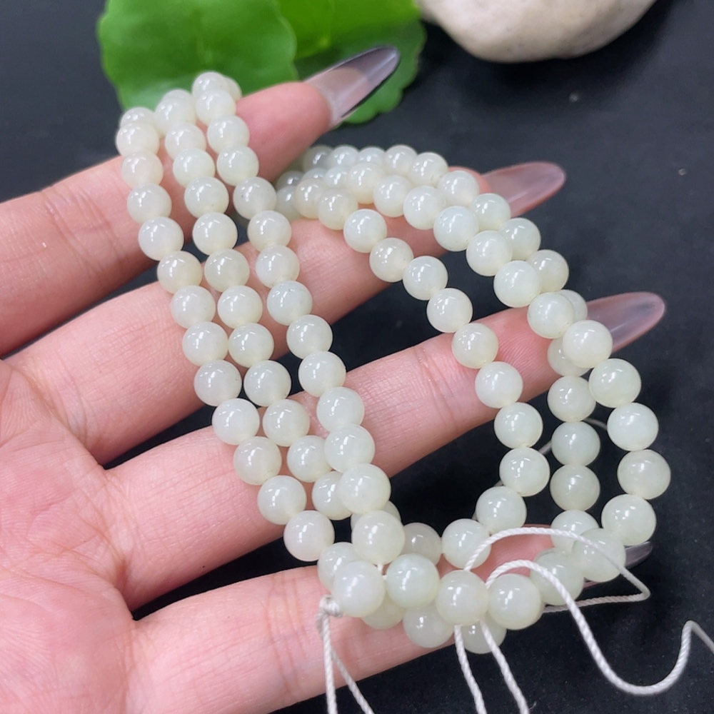 Hetian Jade Bead Necklace Approx. 5.8mm Total Weight Approx. 35.9g