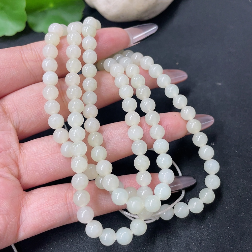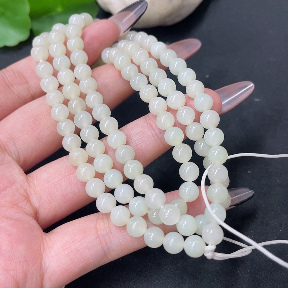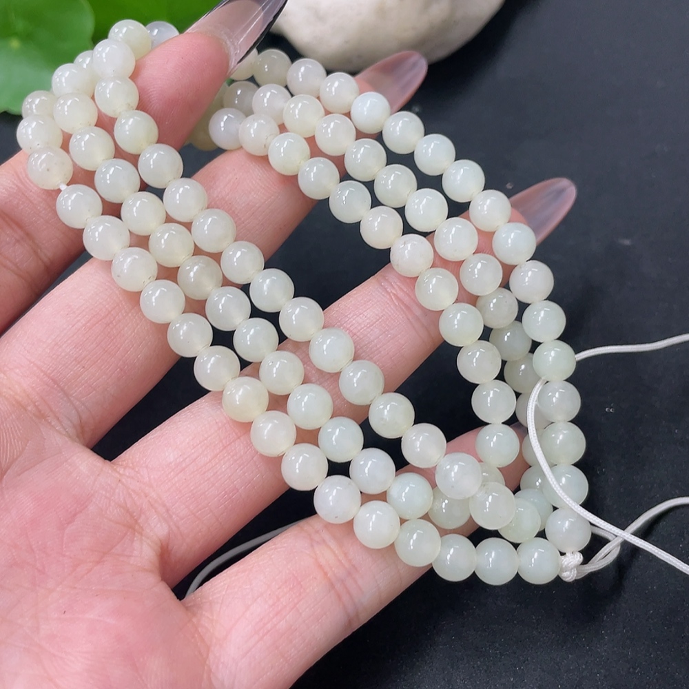 Hetian Jade Bead Necklace, Approx. 5.7mm, Total Weight Approx. 34.4g