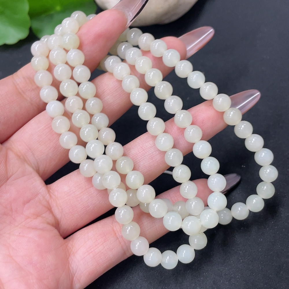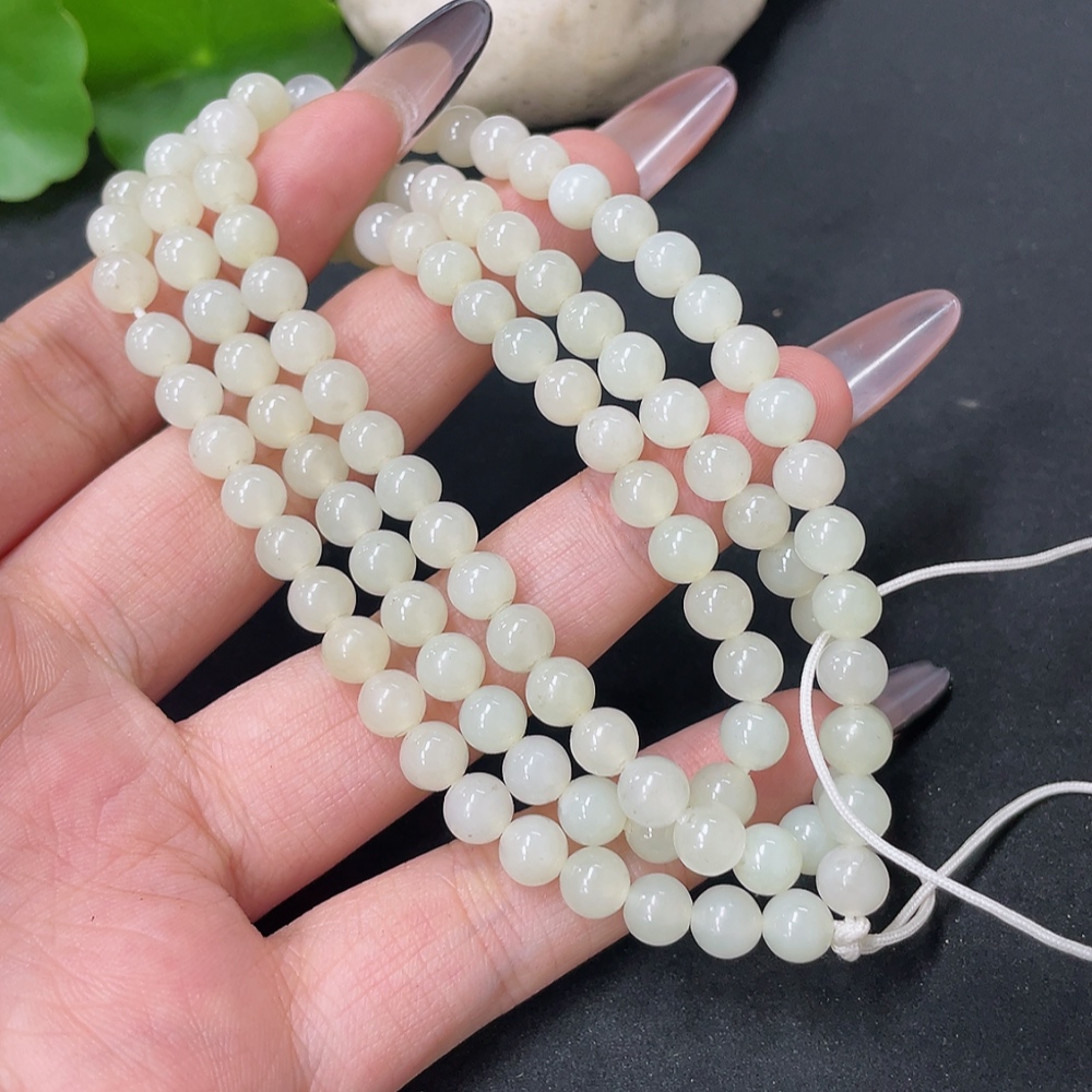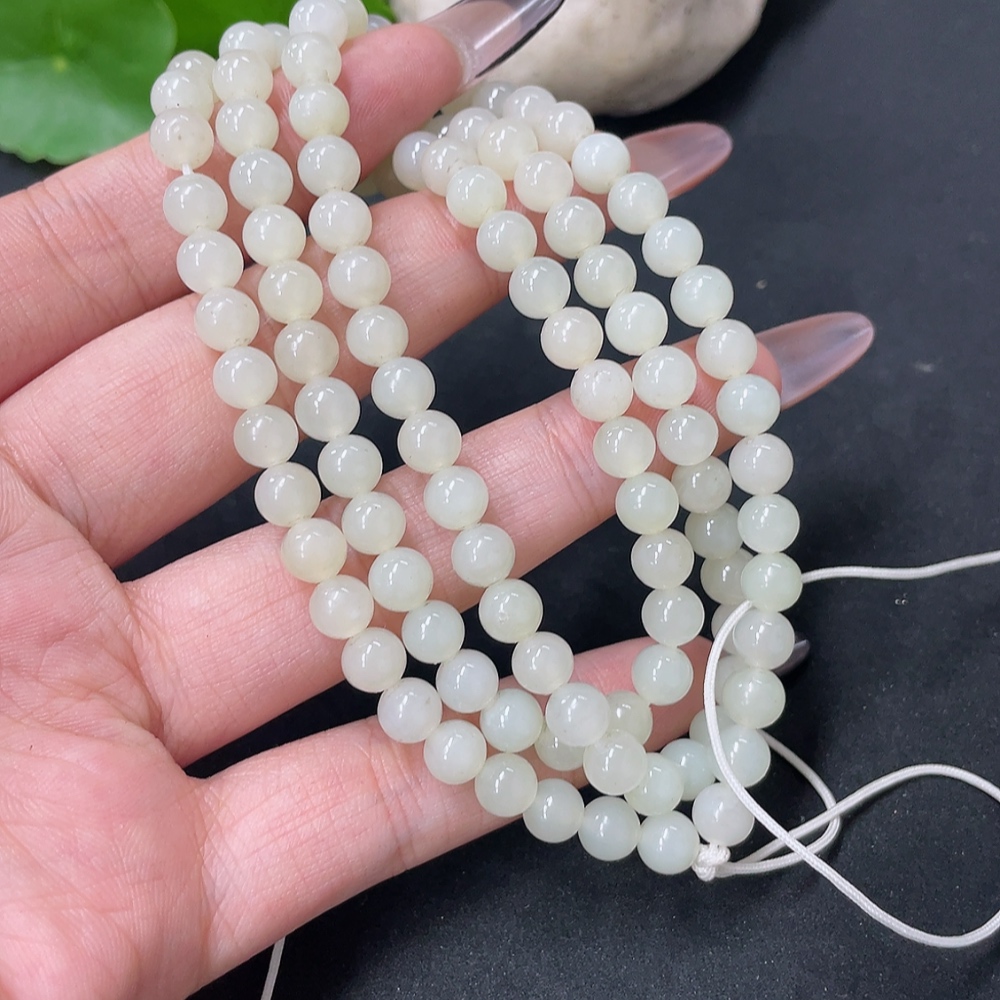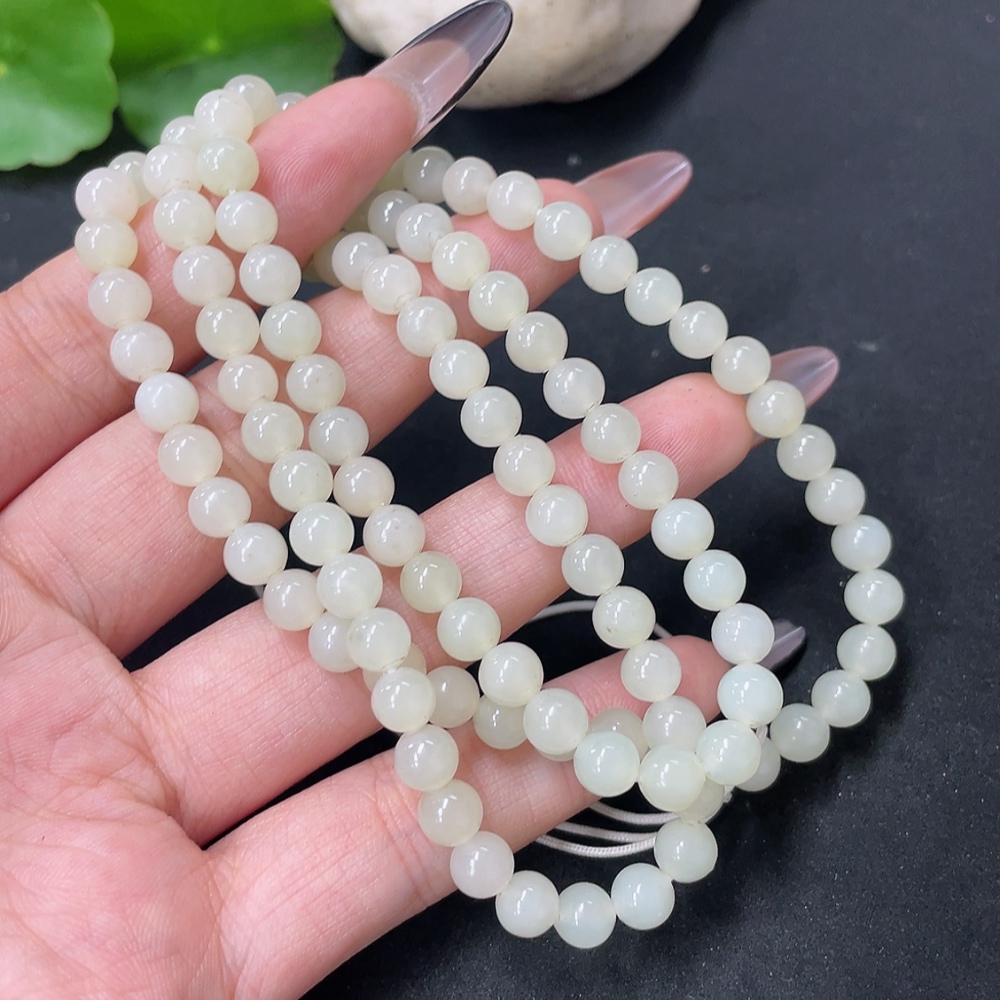 Hetian Jade Bead Necklace, Approx. 5.7mm, Total Weight Approx. 34.4g