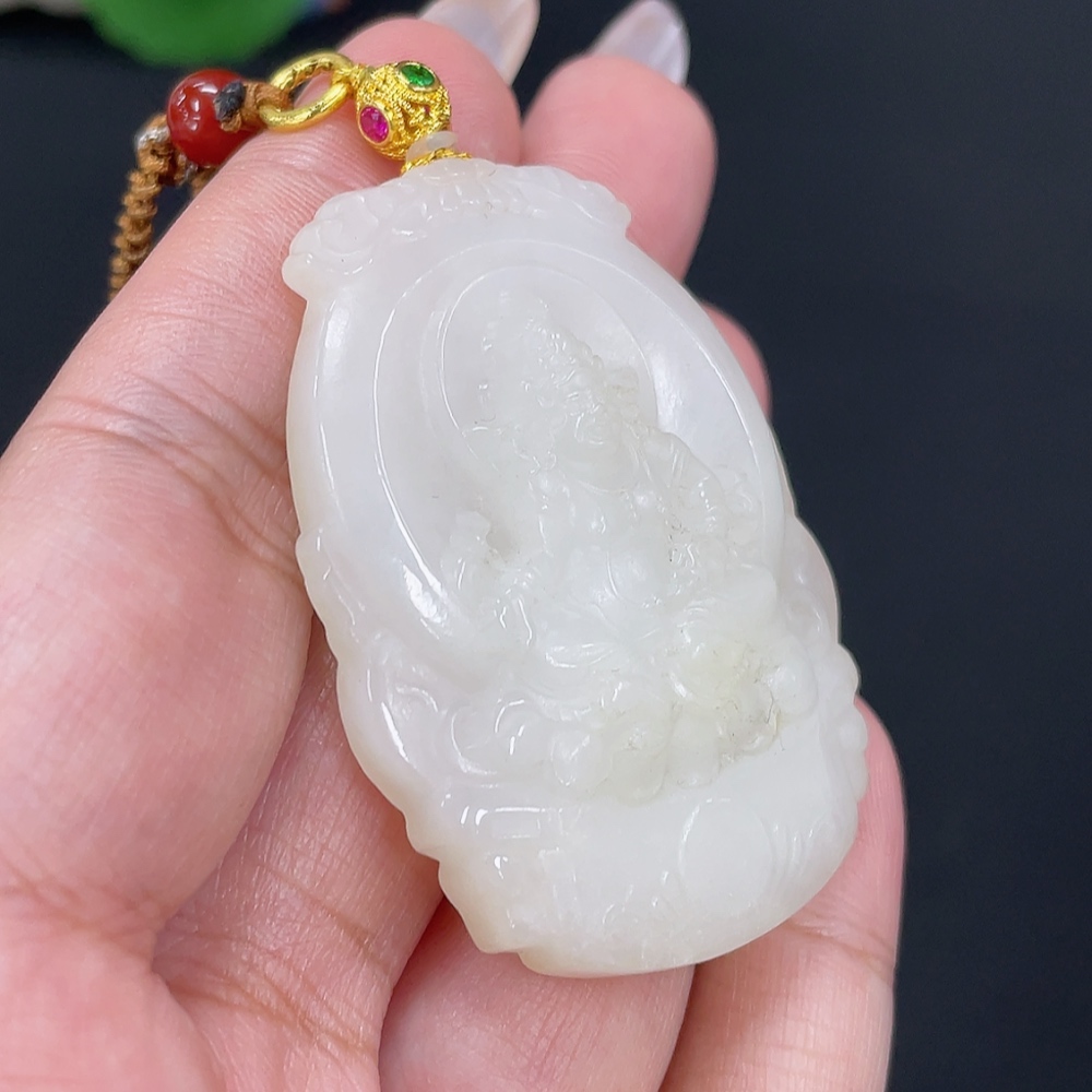 Hetian Jade Pendant Yellow Jambhala Total Weight Approx. [Including Rope] 39.2g Pendant Suspected Gold-Plated Rest Non-Gold