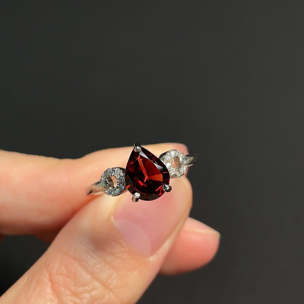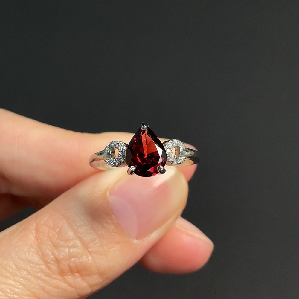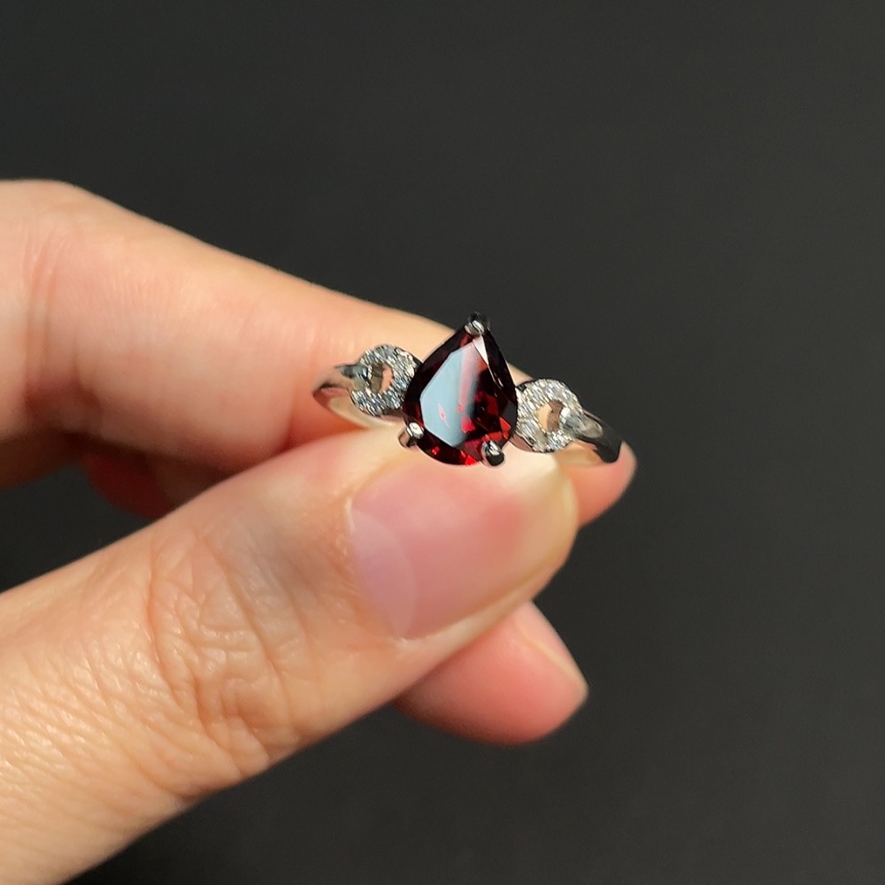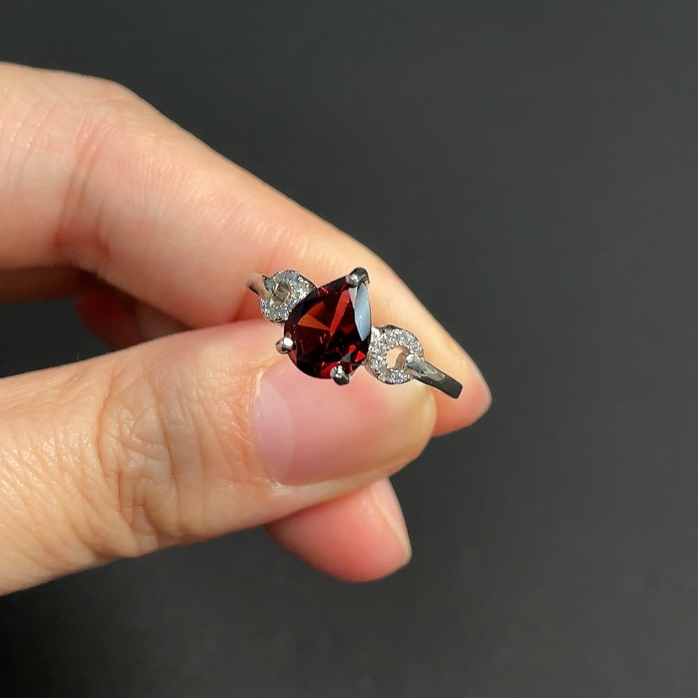 Garnet Inlaid Ring Non-Gold Inlaid Adjustable Total Weight Approx. 1.92g