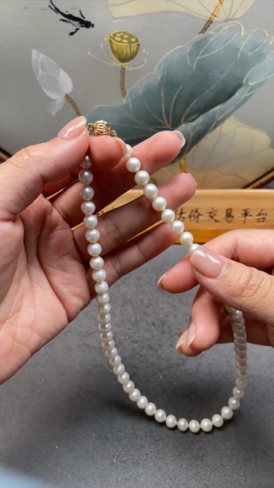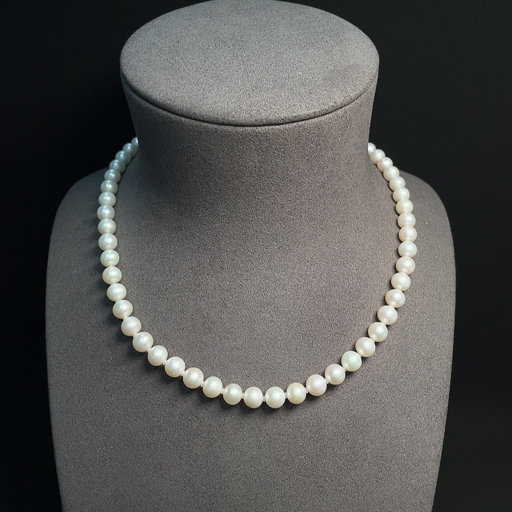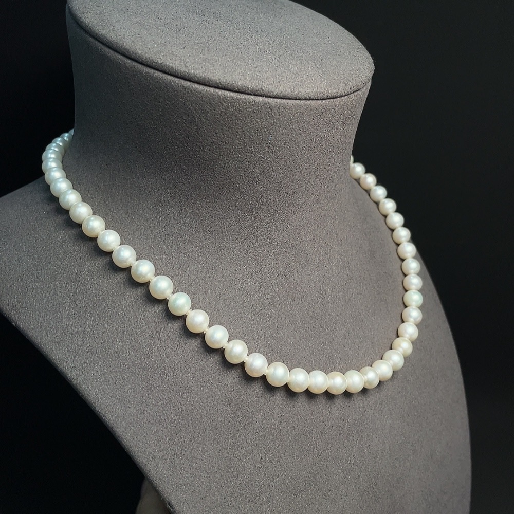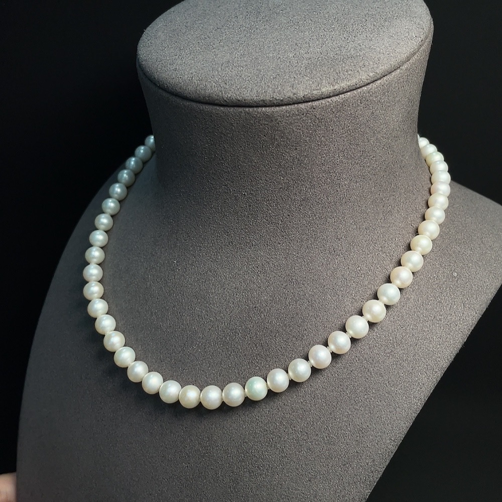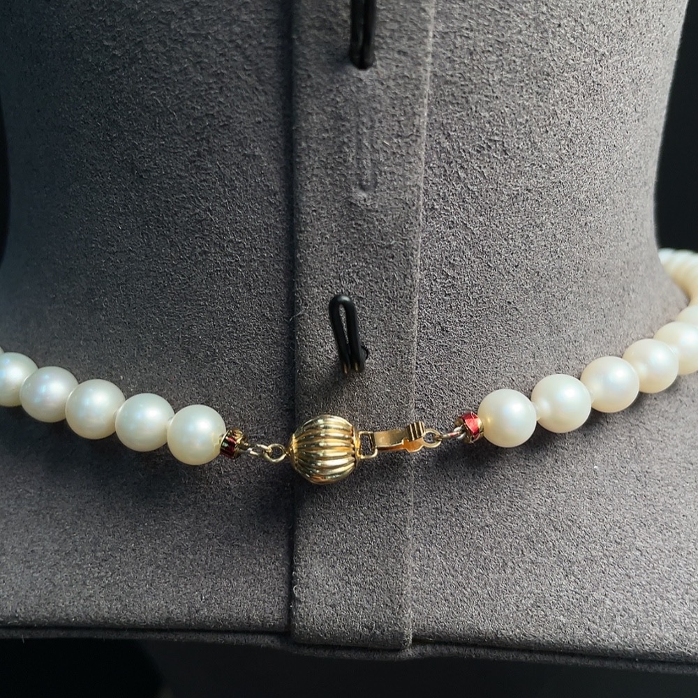 Pearl Bead Strand Marked Red Not Gold Rest 14k Gold Undetectable String Card 7.2mm Approx Total Weight About 26.87g