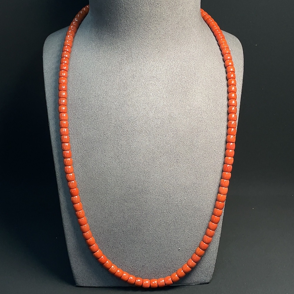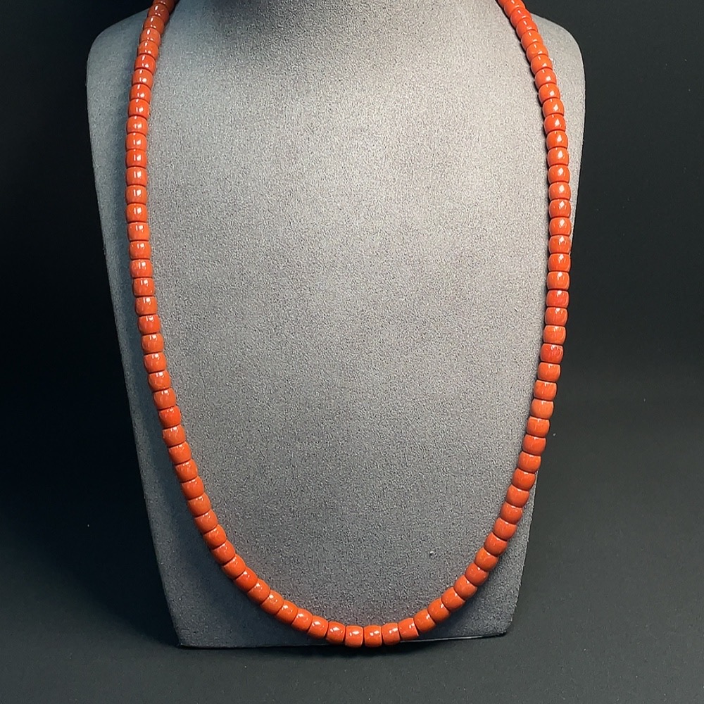 Red Agate Necklace with Visible Organic Matter, Total Weight Approx. 59.83g, Bead Size ~7.1mm