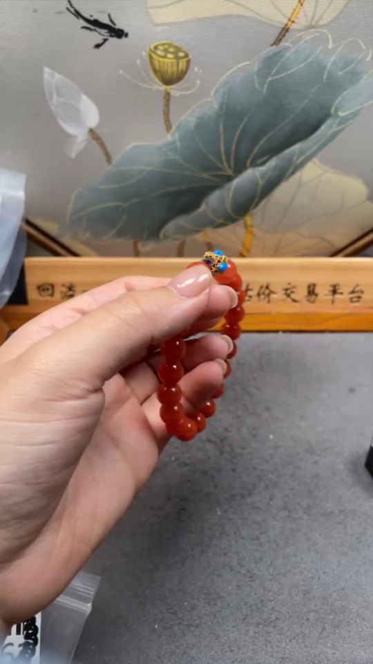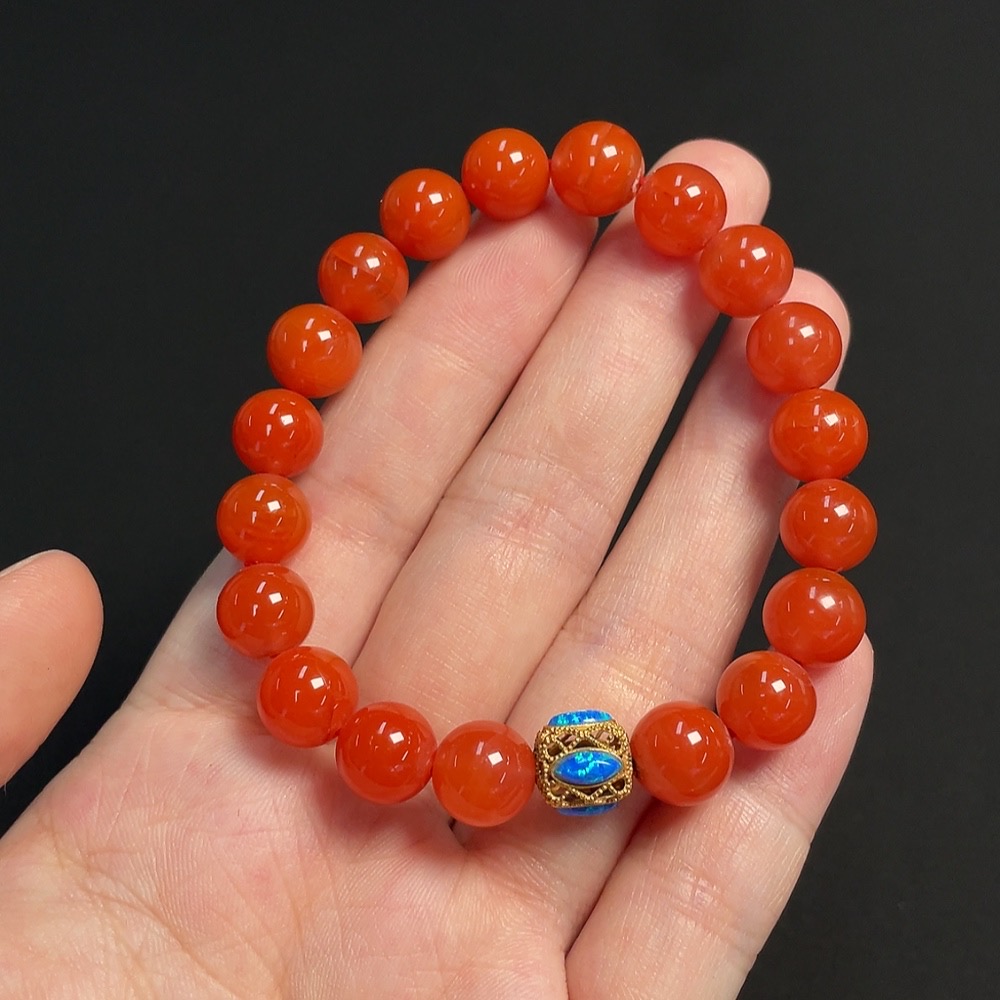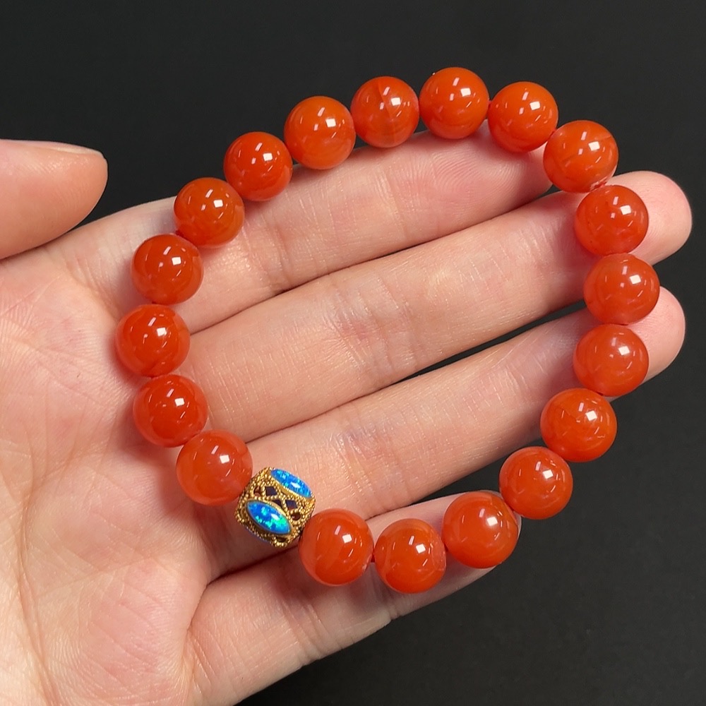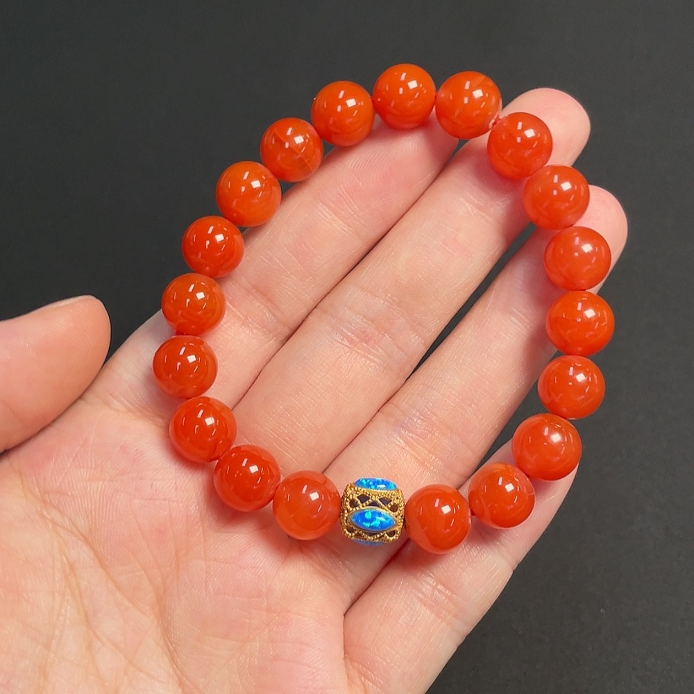 Red Agate Bracelet No-engraved 18K Size approx. 9.2mm Total weight approx. 21.28g Visible organic matter Non-natural matching stones considered