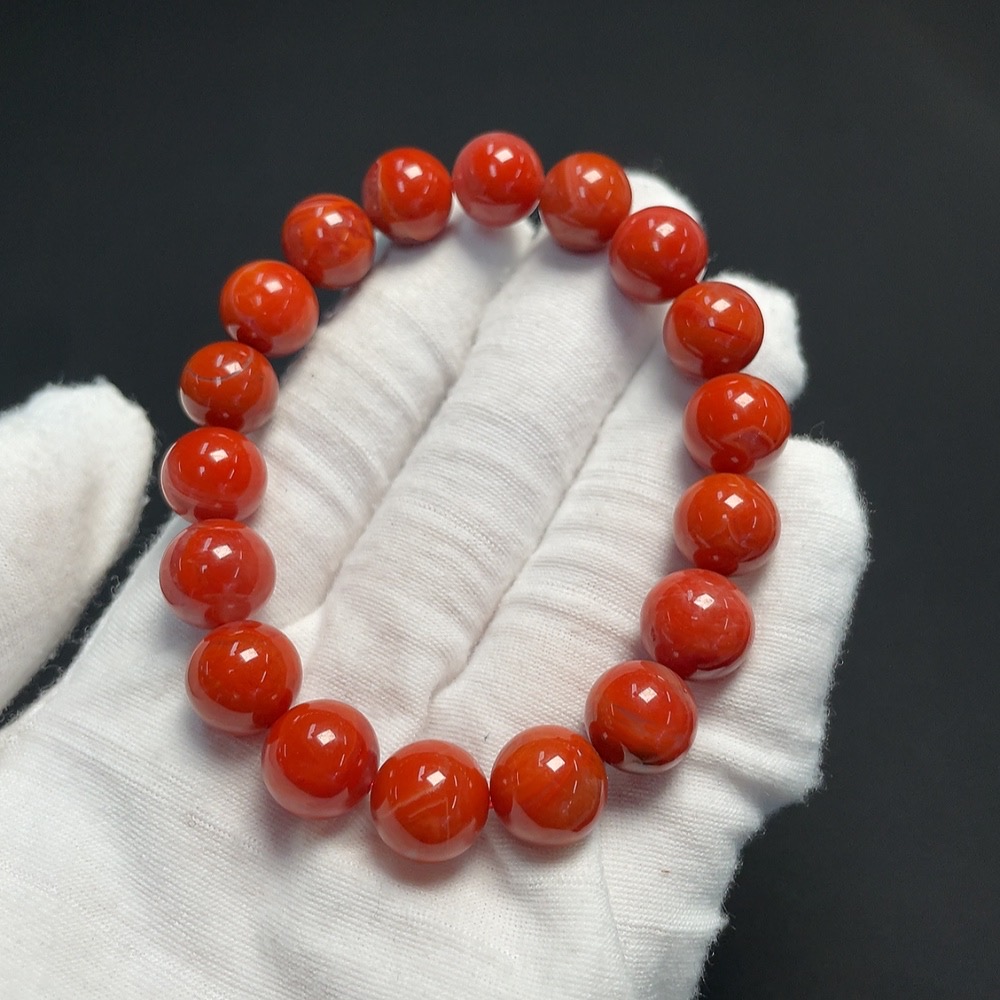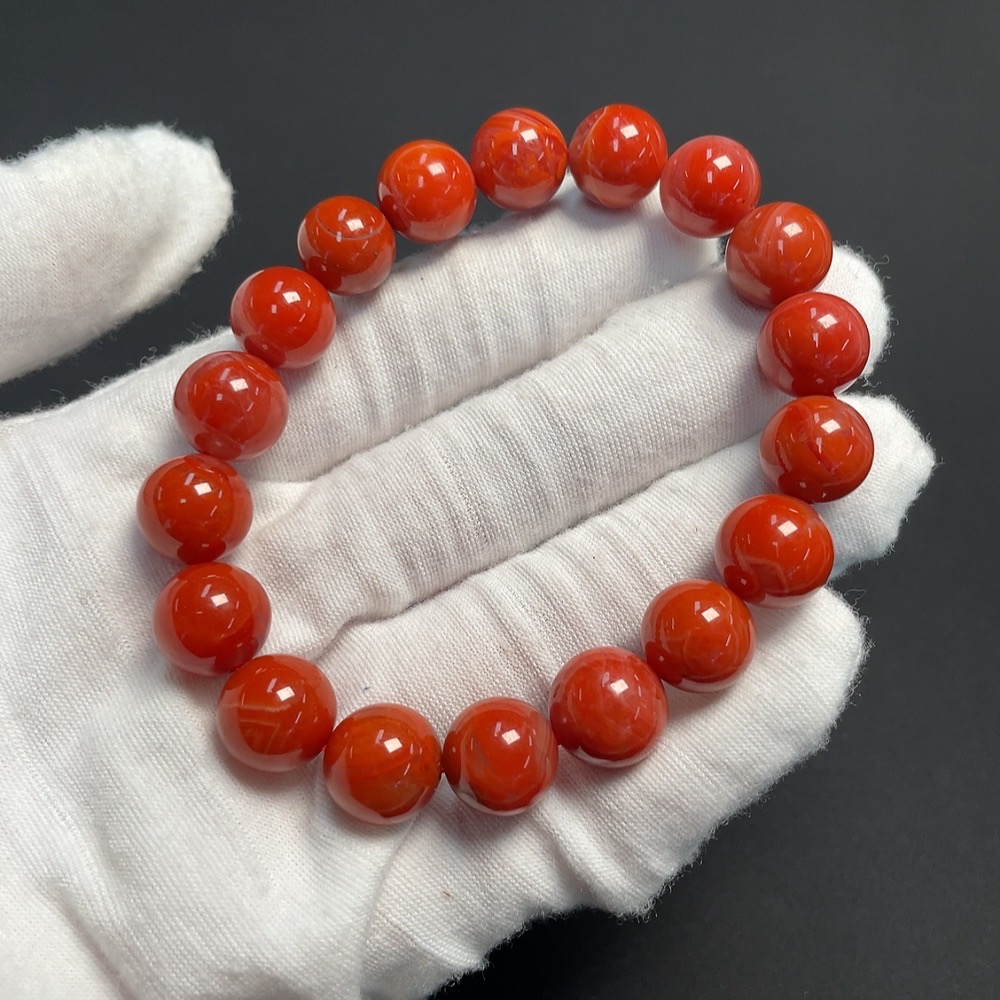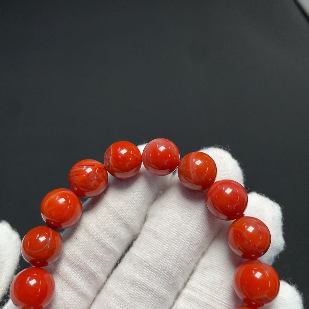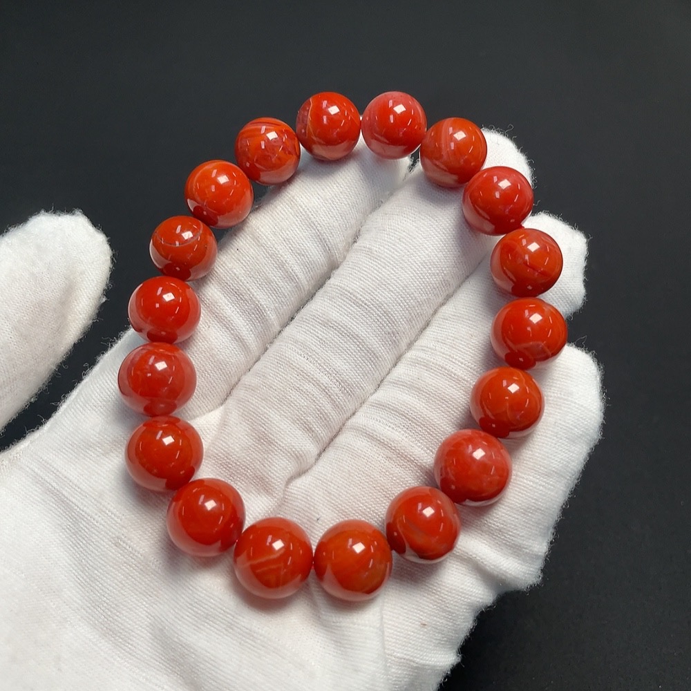 Red Agate Bracelet with Visible Organic Matter, Total Weight Approx. 37.16g, Size About 11.2mm